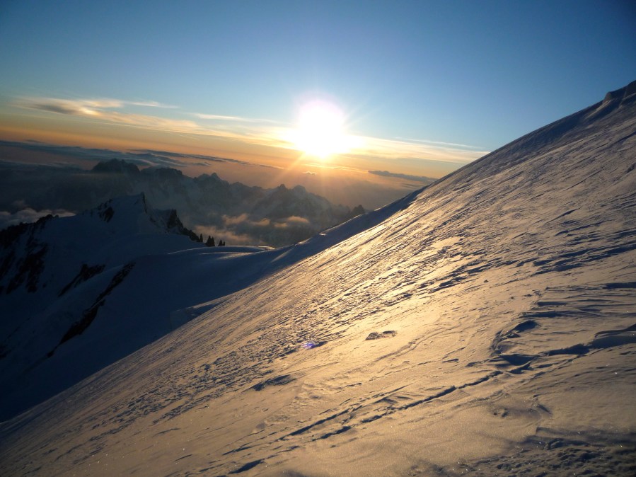 Je dois dire une chose : nous avons eu une chance de malade. Comme je l’ai expliqué, je n’étais dans les Alpes que pendant 10 jours, nous avions fait les Ecrins 3 jours, il nous fallait 2 jours de repos, donc la fenêtre météo pour l’ascension du Mont Blanc était assez serrée. Certains viennent à Chamonix pendant plus d’une semaine et n’ont pas la possibilité de le faire à cause de la météo, donc là cela s’est trop bien goupillé.