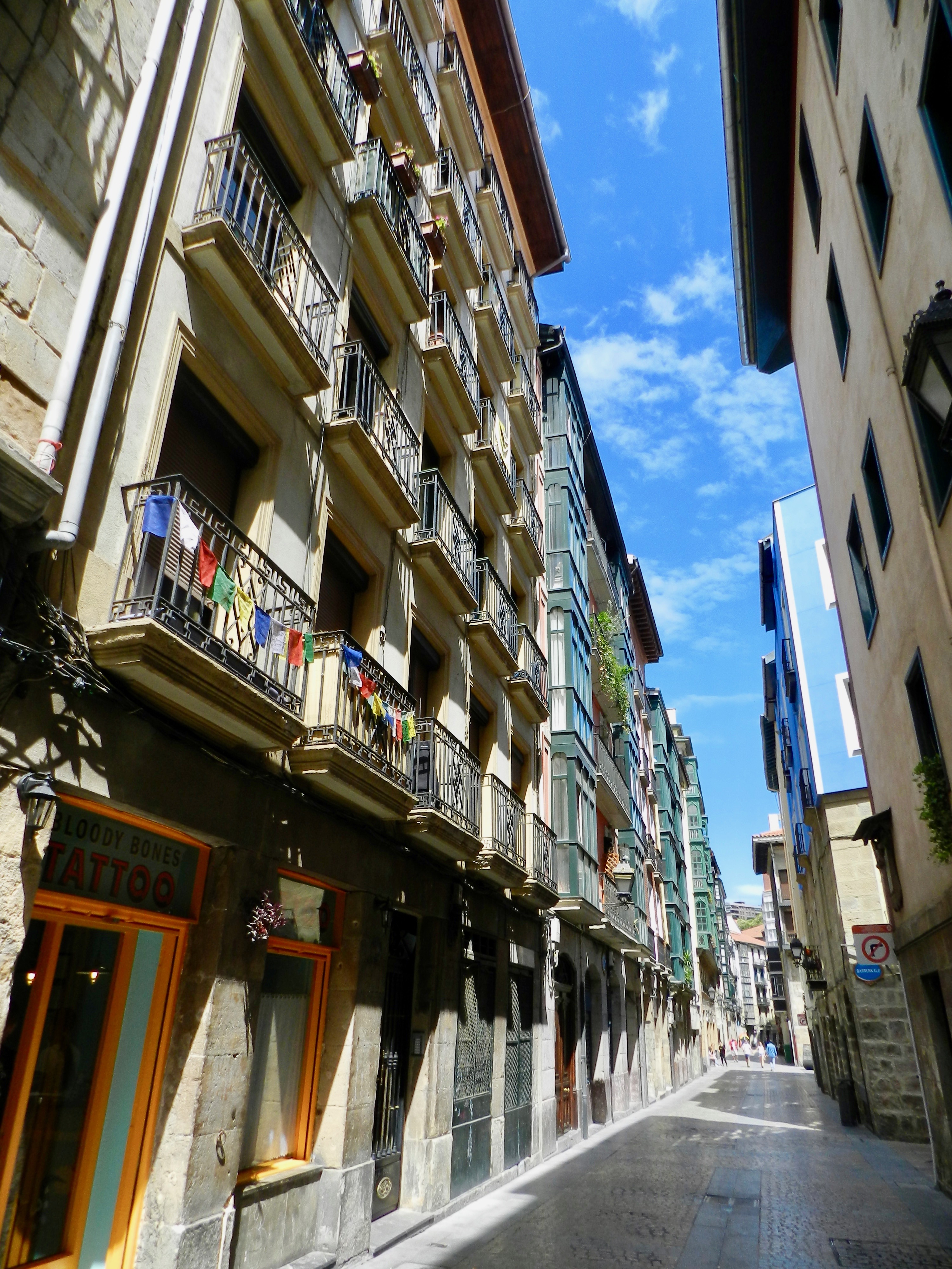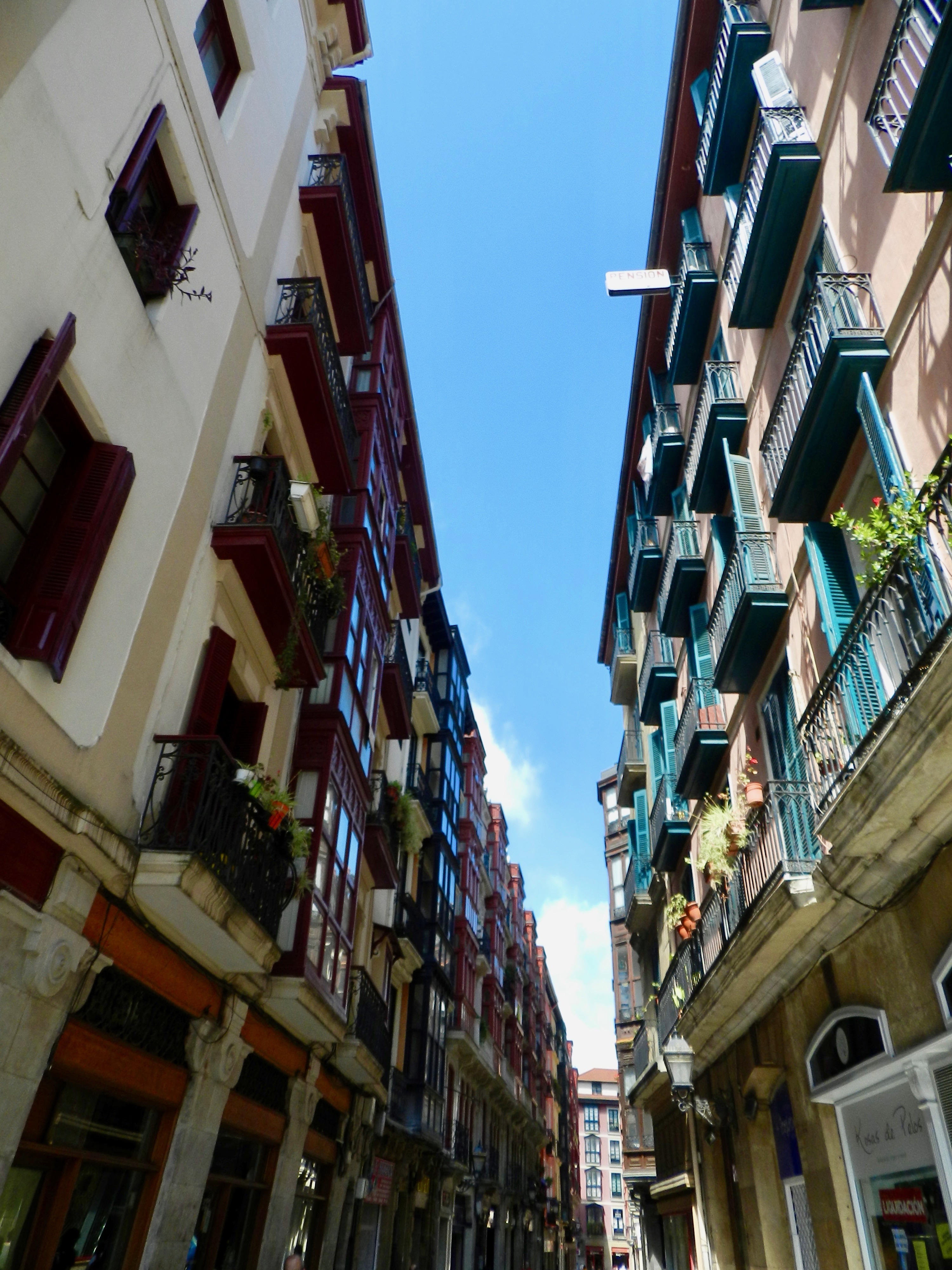 Pour être honnête, je partais un peu avec un apriori négatif. Je n’avais pas spécialement entendu du bien de cette ville, « c’est pas très beau et industriel ». Que ne fût pas notre surprise de nous réveiller sous un grand soleil, en plein dans le vieux centre de la ville, entourés de vielles maisons colorées. Pour info, notre hôtel : Basque boutique, c’est presque comme un hôtel mais il n’y a pas de réception mais des codes d’accès (un peu comme ce que j’ai eu en Islande). Chambre super, design et propre, avec petite table pour prendre le petit déj.