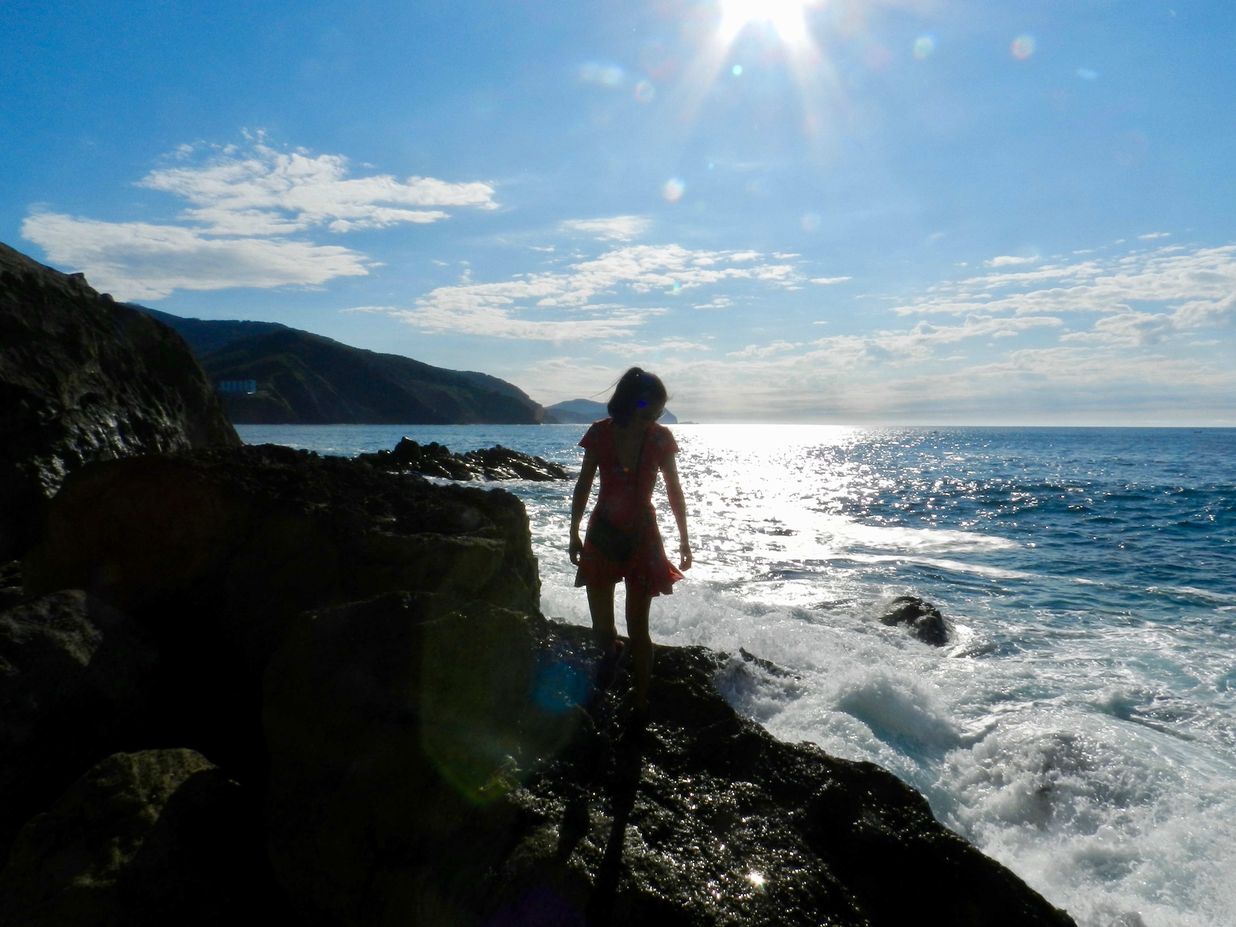 Nous avons trouvé un spot pour nous baigner car comme la mer montait, avec les rochers, le courant et les vagues c’était un peu chaud pour se baigner. Une espèce de piscine naturelle, seuls au monde.