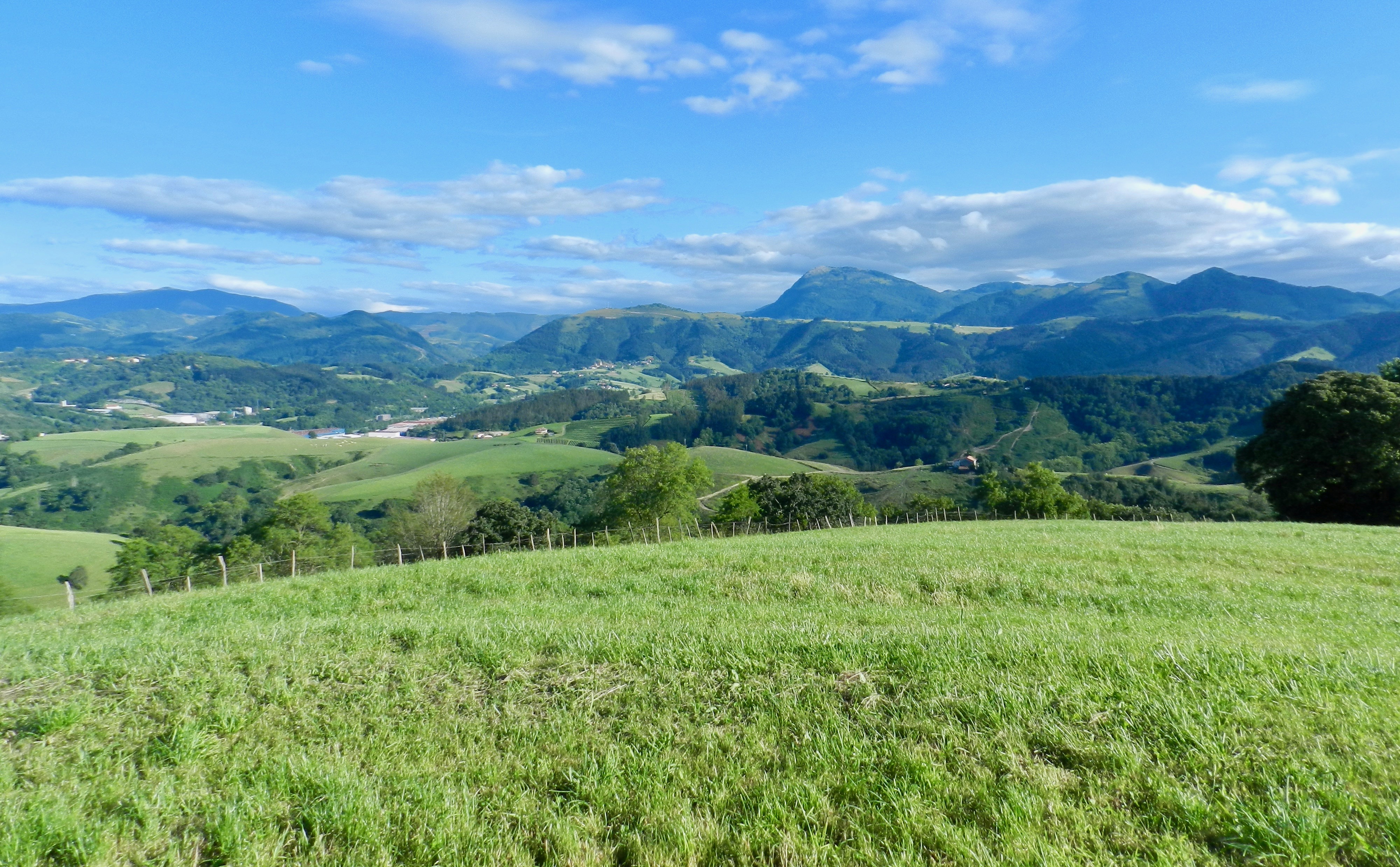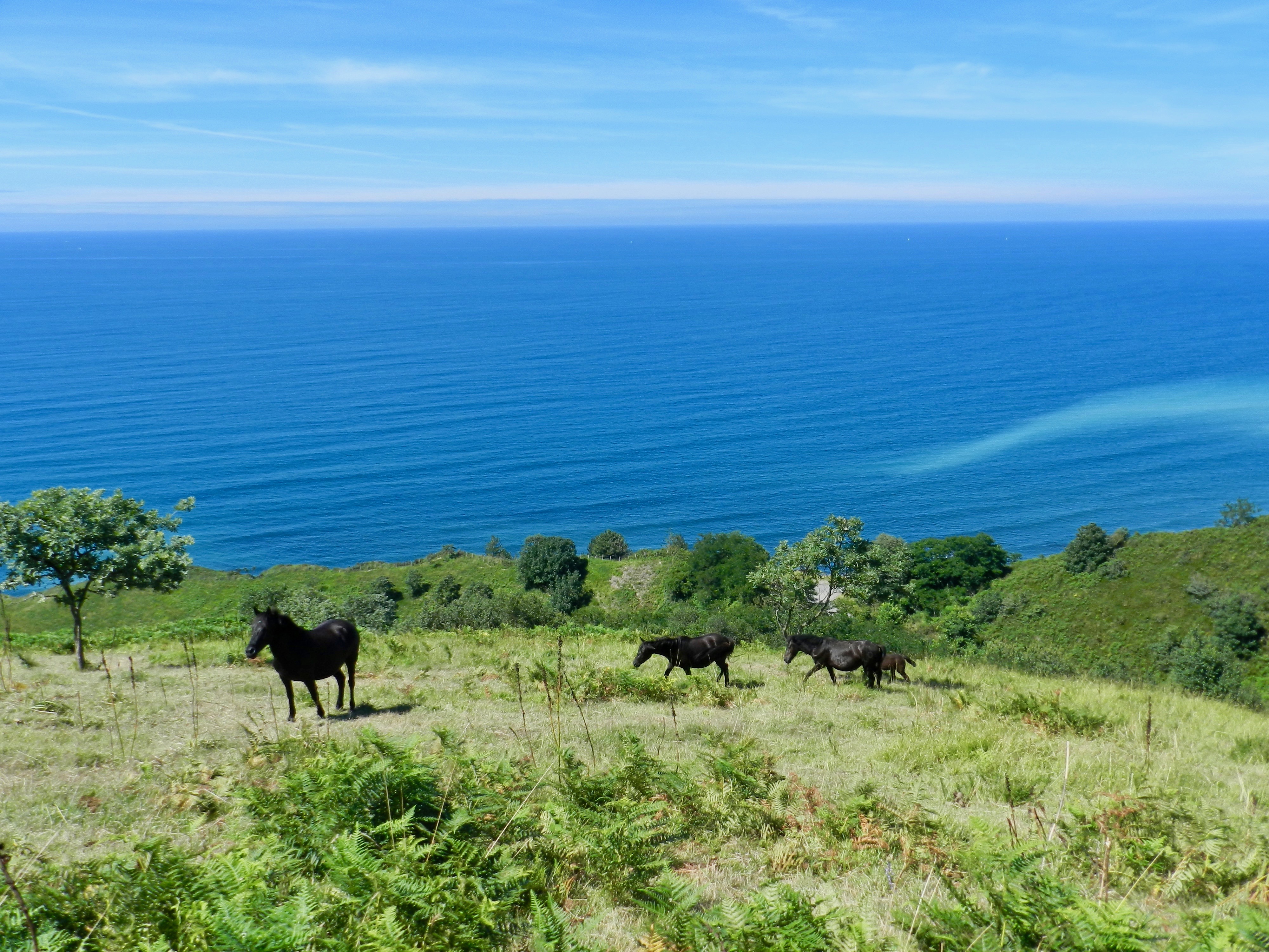 Nous avons fait le retour un peu plus dans les terres par le camino de Santiago, avec vue sur la mer au loin. Nous marchions dans l’arrière-pays verdoyant.