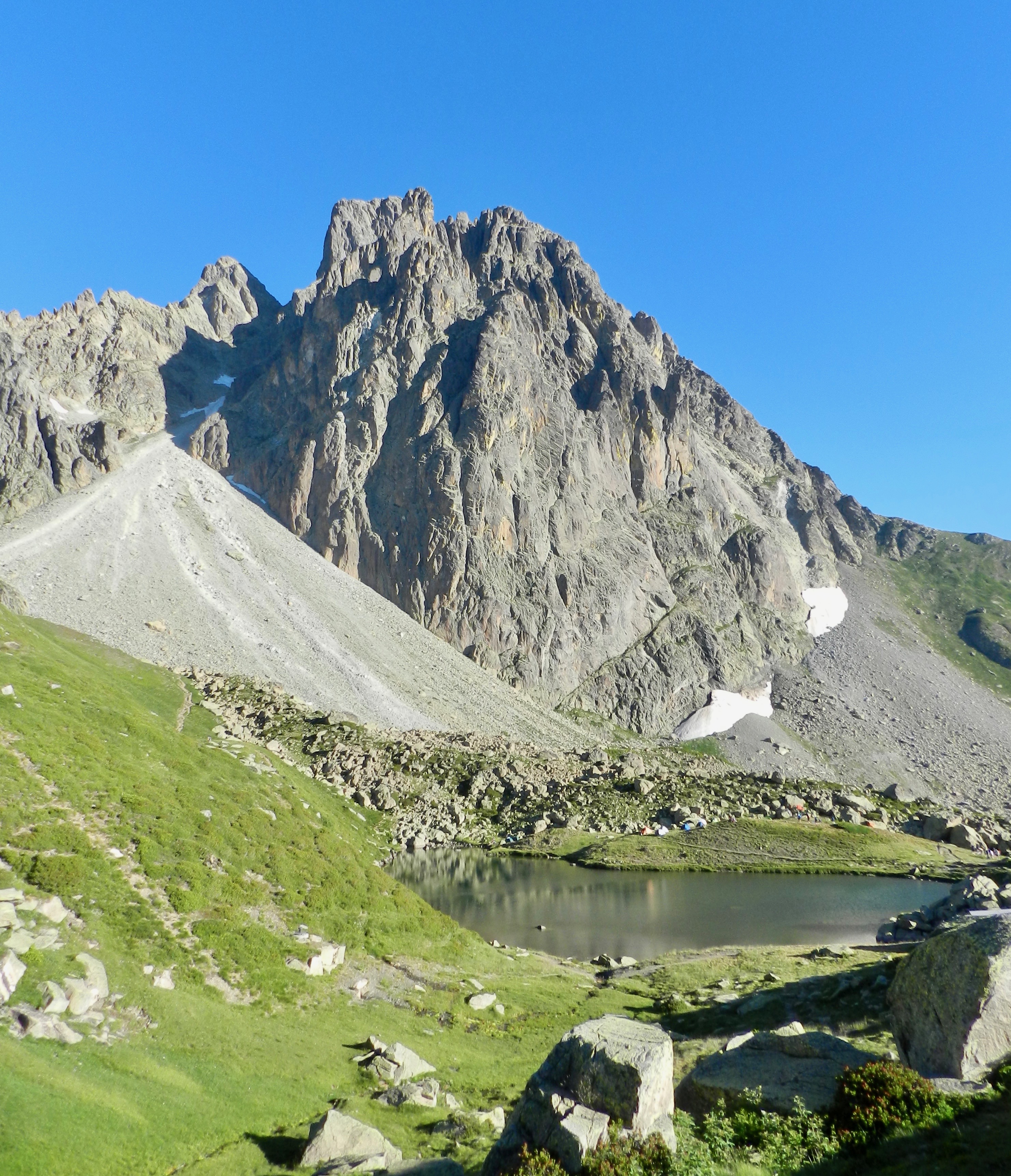Après avoir passé le refuge de Pombie (2000m) (situé au niveau d’un petit lac, surplombé par l’Ossau et vue d’en bas, il paraissait vraiment haut !!), passage d’un pierrier, pas très difficile et plutôt court.