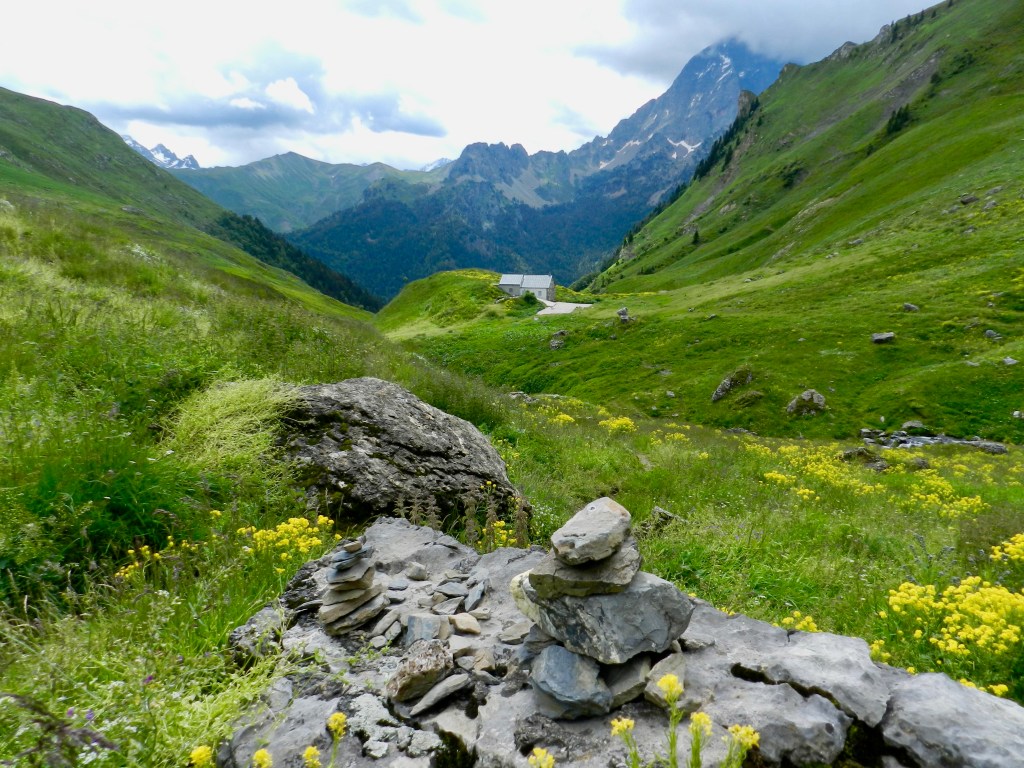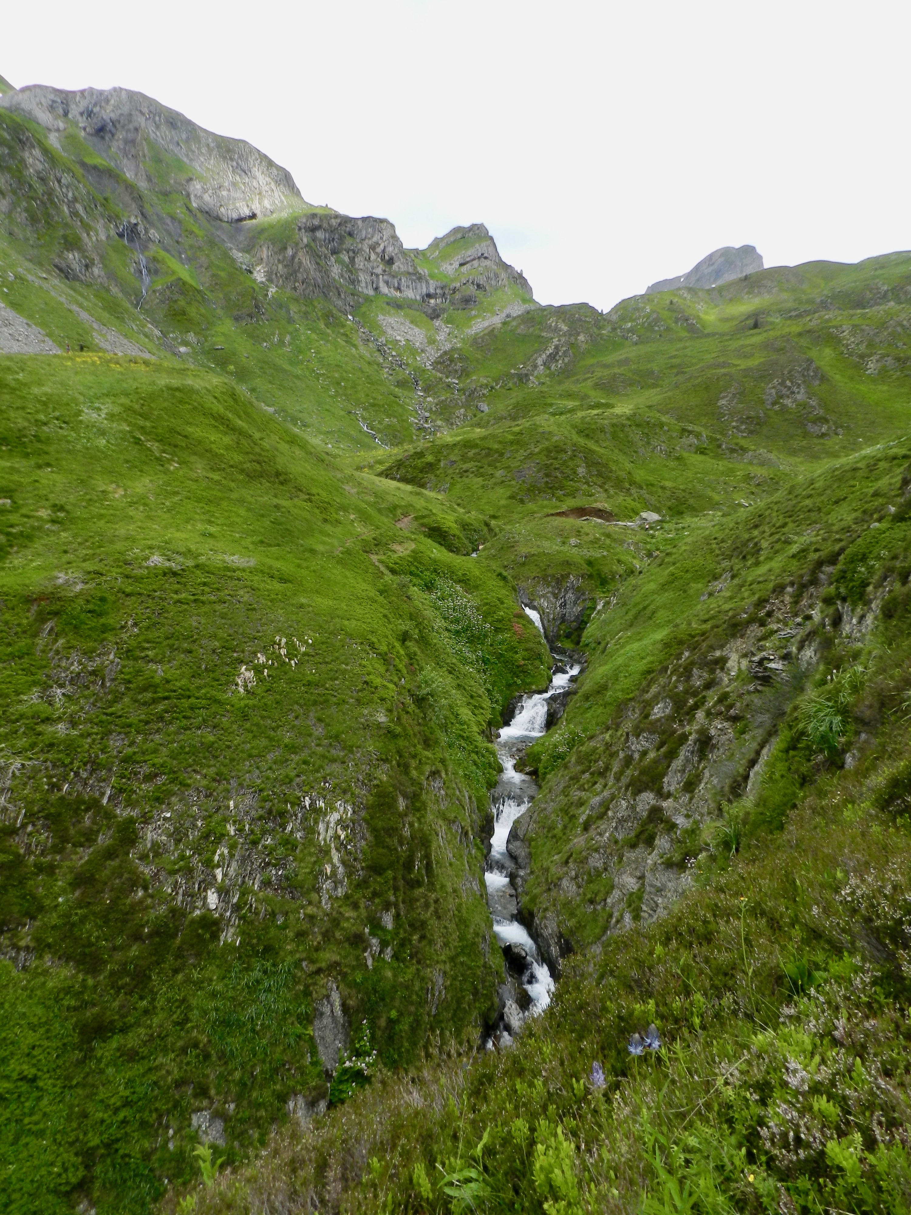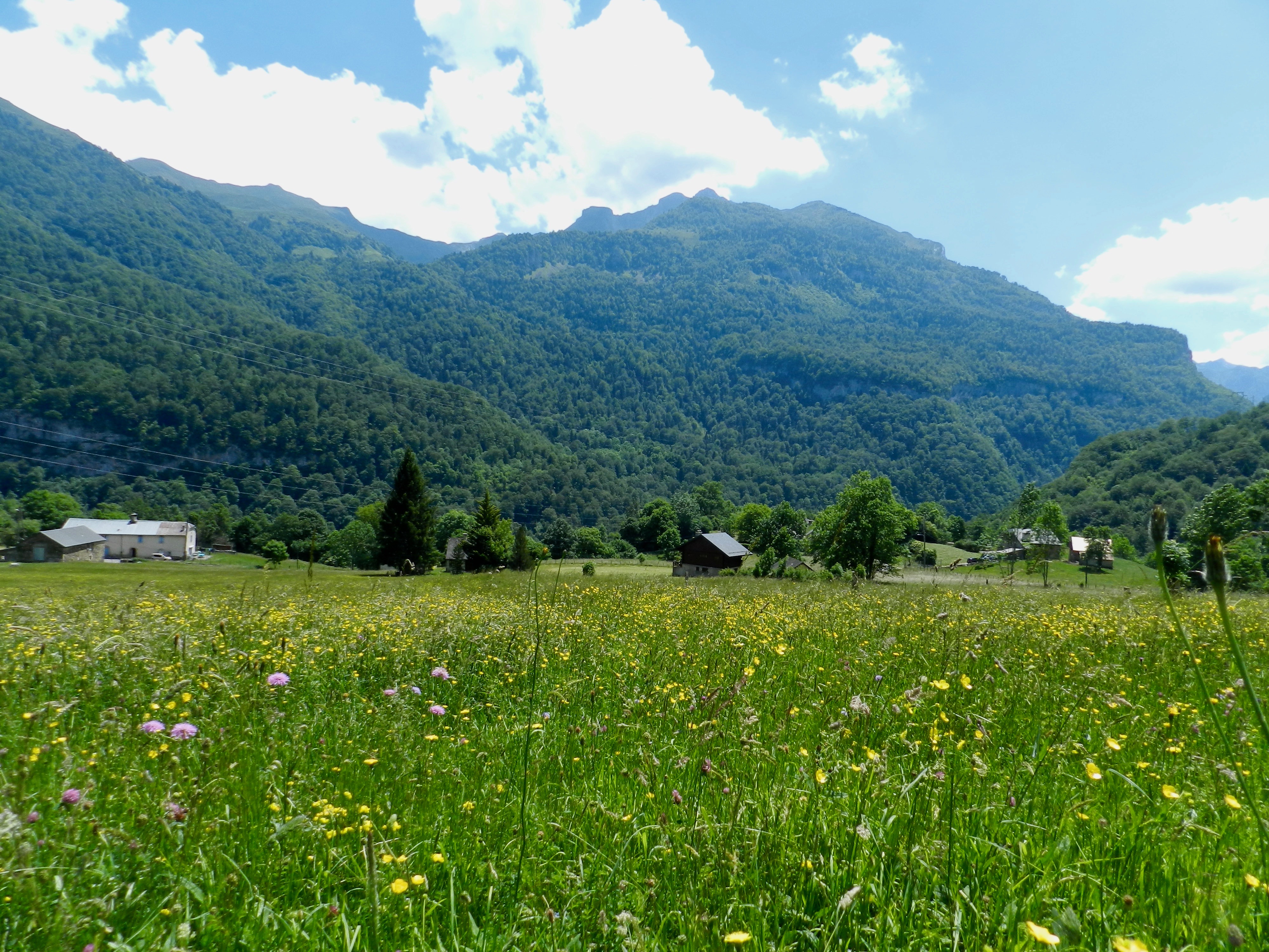 Départ de Bious Artigues (1300m). Au début, je voulais faire le tour des Lacs d’Ayous. Nous étions en juin, nous avions remarqué qu’il y avait pas mal de monde en montagne, alors nous avons décidé de ne pas faire cette randonnée, trop populaire, mais d’en faire une moins connue (pour avoir fait ensuite le tour des Lacs d’Ayous, je ne vais pas trop parler du lac d’Aule, haha gardons le pour les amoureux des endroits plus sauvages !!).