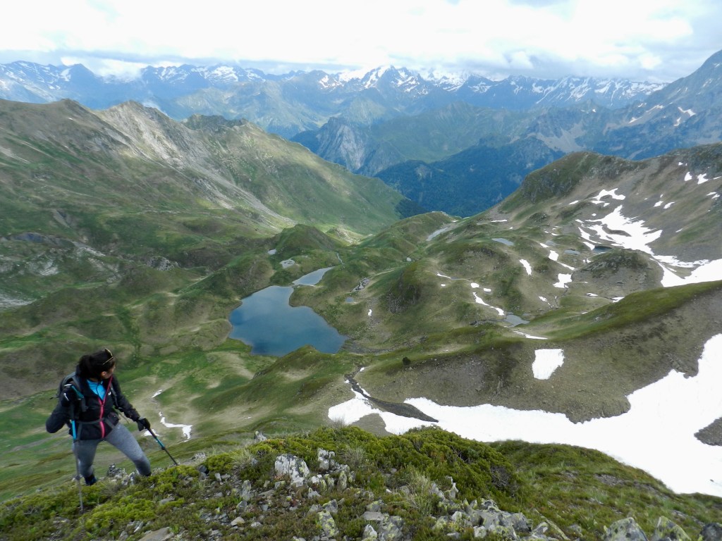 Seule au monde, en faisant coucou à tous les touristes s’agglutinant en contre bas autour des lacs ! Je n’ai pas compris, il n’y avait personne alors que c’était juste le plus beau de la journée (vue incroyable sur l’Ossau), il y avait une quiétude incroyable.