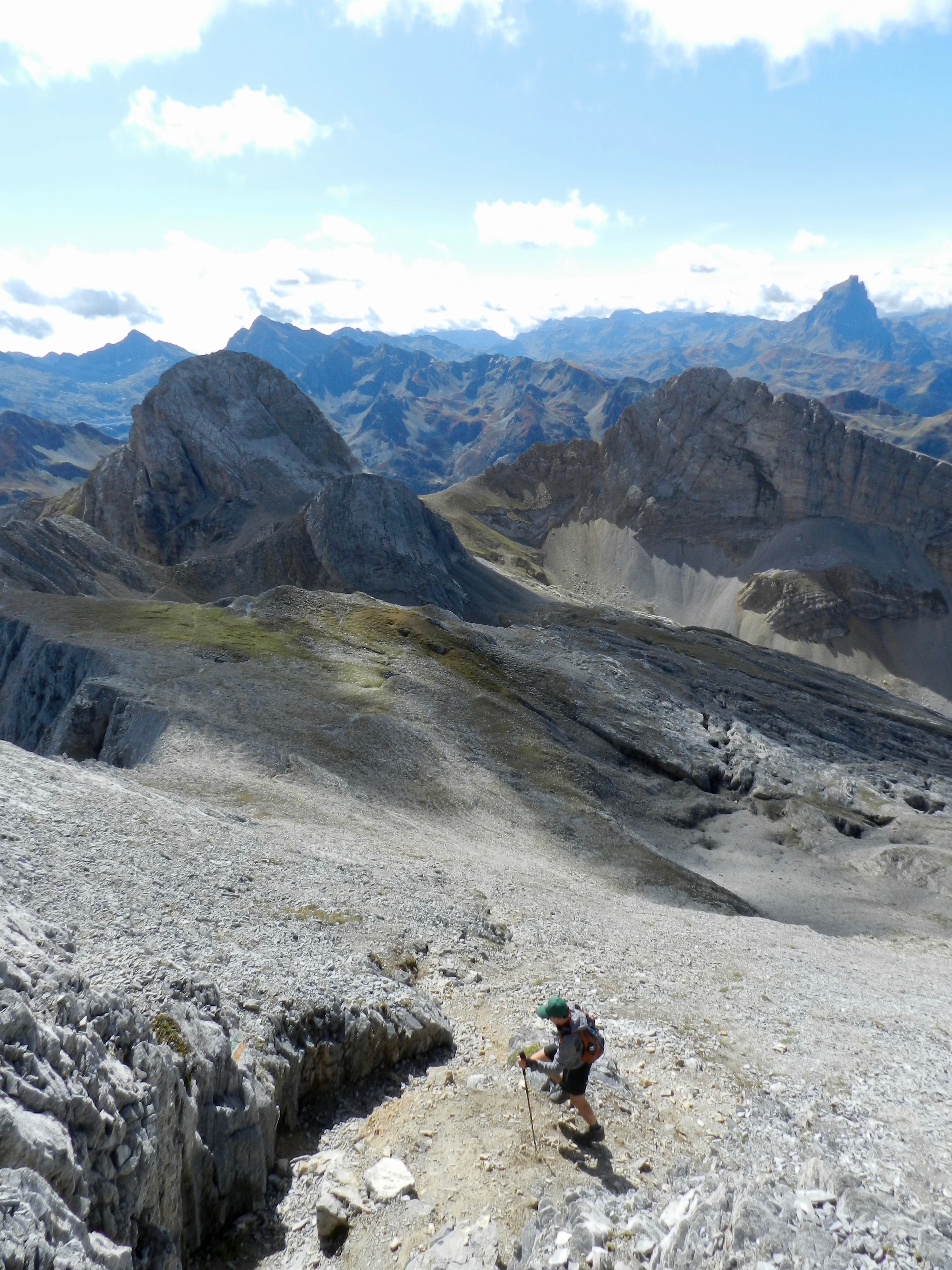 Nous sommes arrivés à un col, puis nous avons passé les crêtes. C’était splendide, vue de folie des deux côtés. Au col mon portable captait et mon père (venant du vercors) a eu la bonne idée de me laisser un message en me disant qu’il était en route pour Pau (ouais il traversait la France sans me prévenir au préalable du jour exact où il allait passer chez nous, du grande Gérard !!). Du coup il n’a pas fallu trainer.