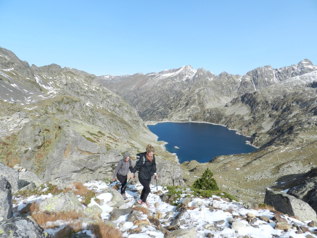Ce fût encore une bien belle randonnée automnale, ou nous n’avons croisé quasiment personne (mis à part les marmottes). Juste à la fin, une fille qui faisait la traversée seule des Pyrénées par le GR10 et qui était partie dans une mauvaise direction, nous l’avons donc un peu aidée !! Je ne sais plus depuis combien de temps elle marchait, mais vraiment longtemps, elle avait même des trous dans ses chaussures, je dis chapeau, car le faire seule et d’une traite, c’est franchement incroyable…