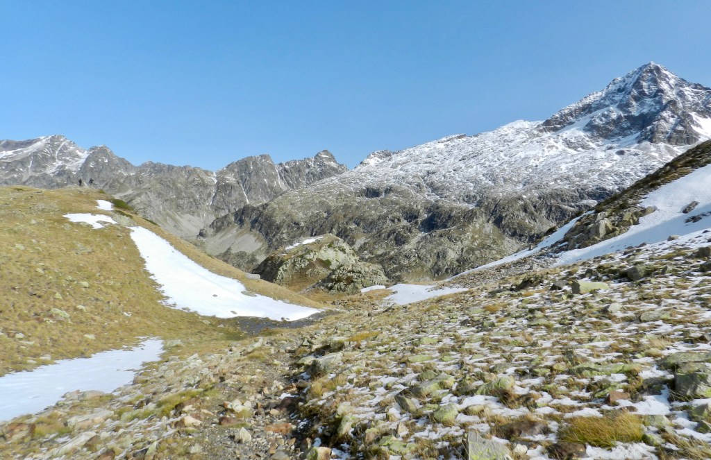 Il y avait aussi pas mal de neige. Pour atteindre directement le lac Arremoulit, il y a un passage avec corde, bien pentu et nous avons croisé des personnes qui en revenaient. Ils nous ont dit que sans crampons ce n’était pas praticable, d’autant plus que ce versant est à l’ombre, du coup il restait encore plus de neige. Nous n’avons pas voulu prendre le risque, surtout que les filles avaient seulement des baskets légères.