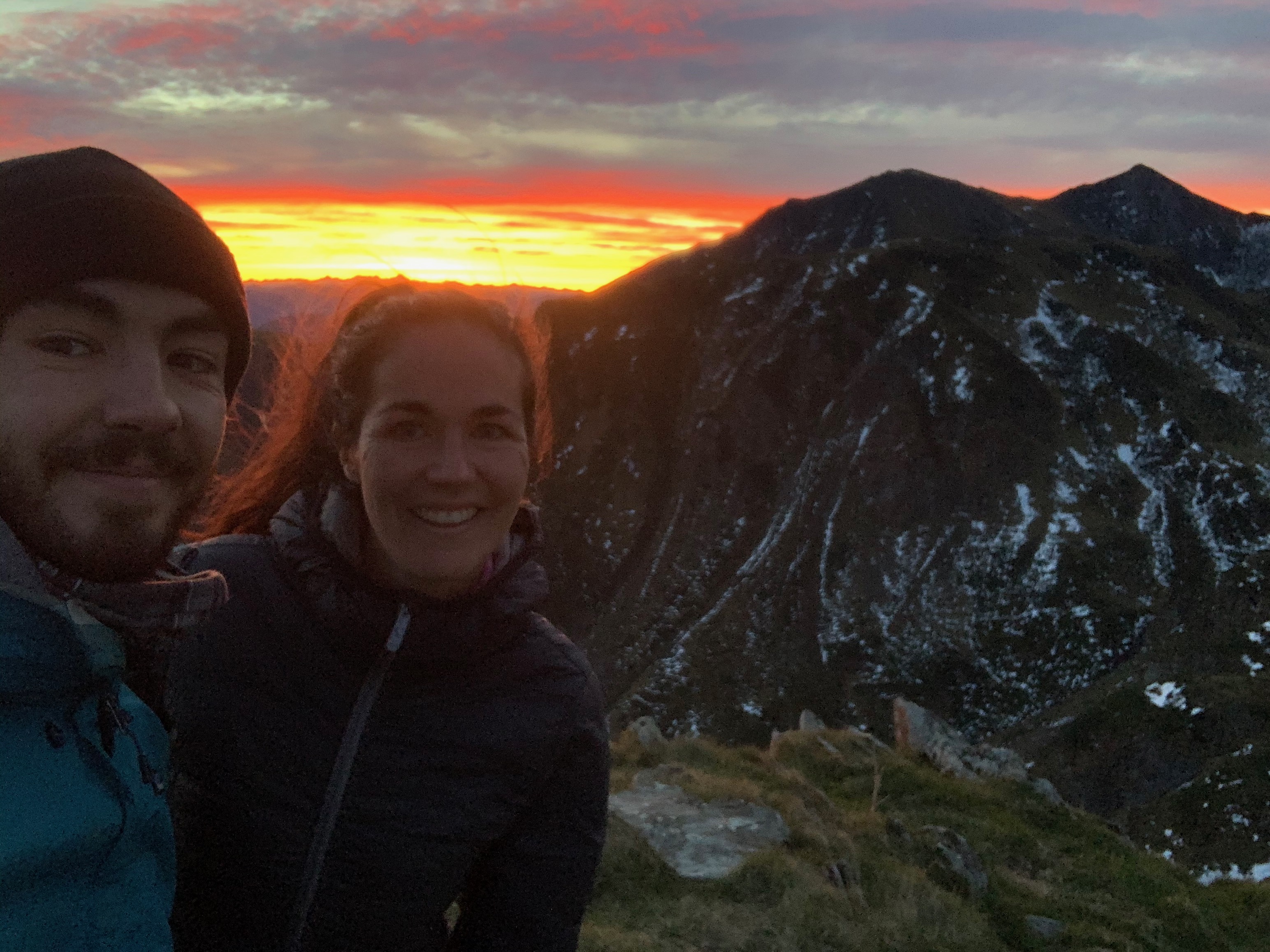 Au final, nous avons décidé de ne pas aller au Pic, car on risquait de rater toutes les strates du lever de soleil (surtout que ça commençait déjà), alors on s’est posé juste un peu plus bas. Ce fût ouf !! On s’est rappelé nos levers de soleil aux aurores à la Réunion, on a profité de chaque instant. Juste incroyable. Pas de mots.