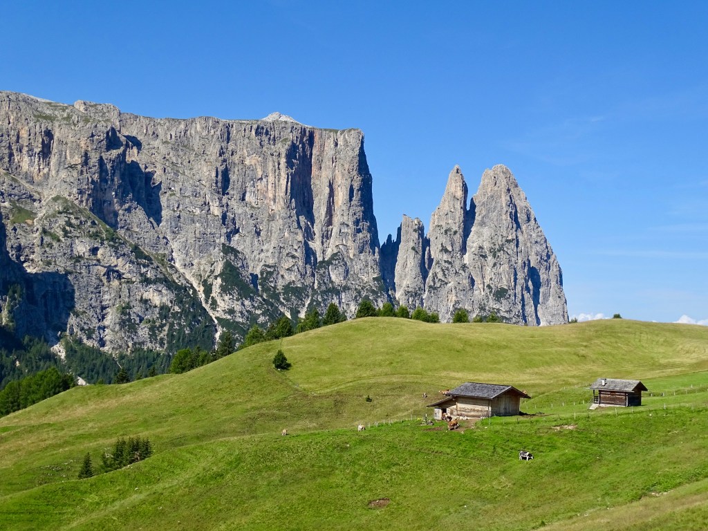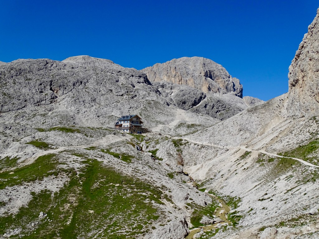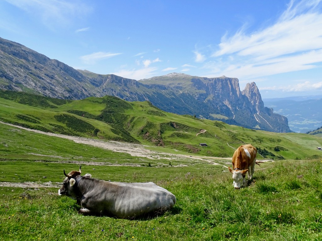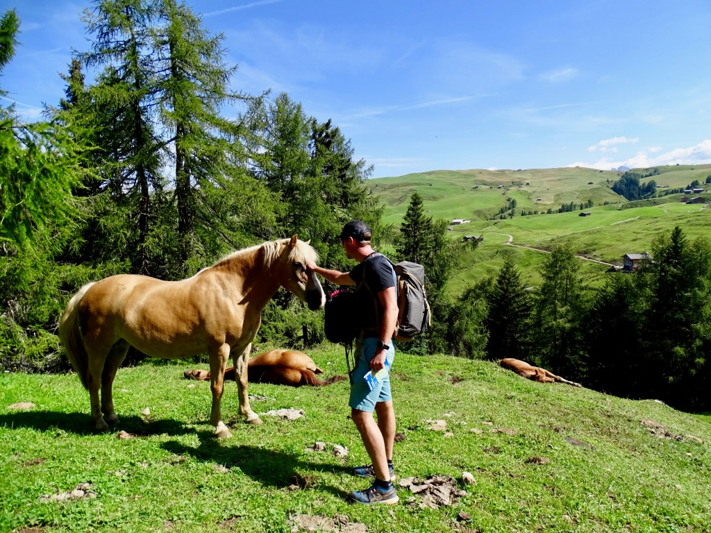 Trop drôle car nous sommes arrivés au refuge Alpe Di Tires en 1h30 du Pas de Doña, alors qu’un panneau indiquait 2h30 ! Parfois il ne faut vraiment pas s’y fier.