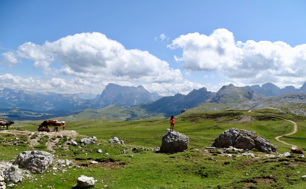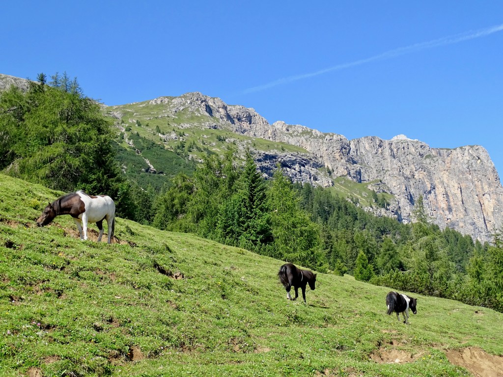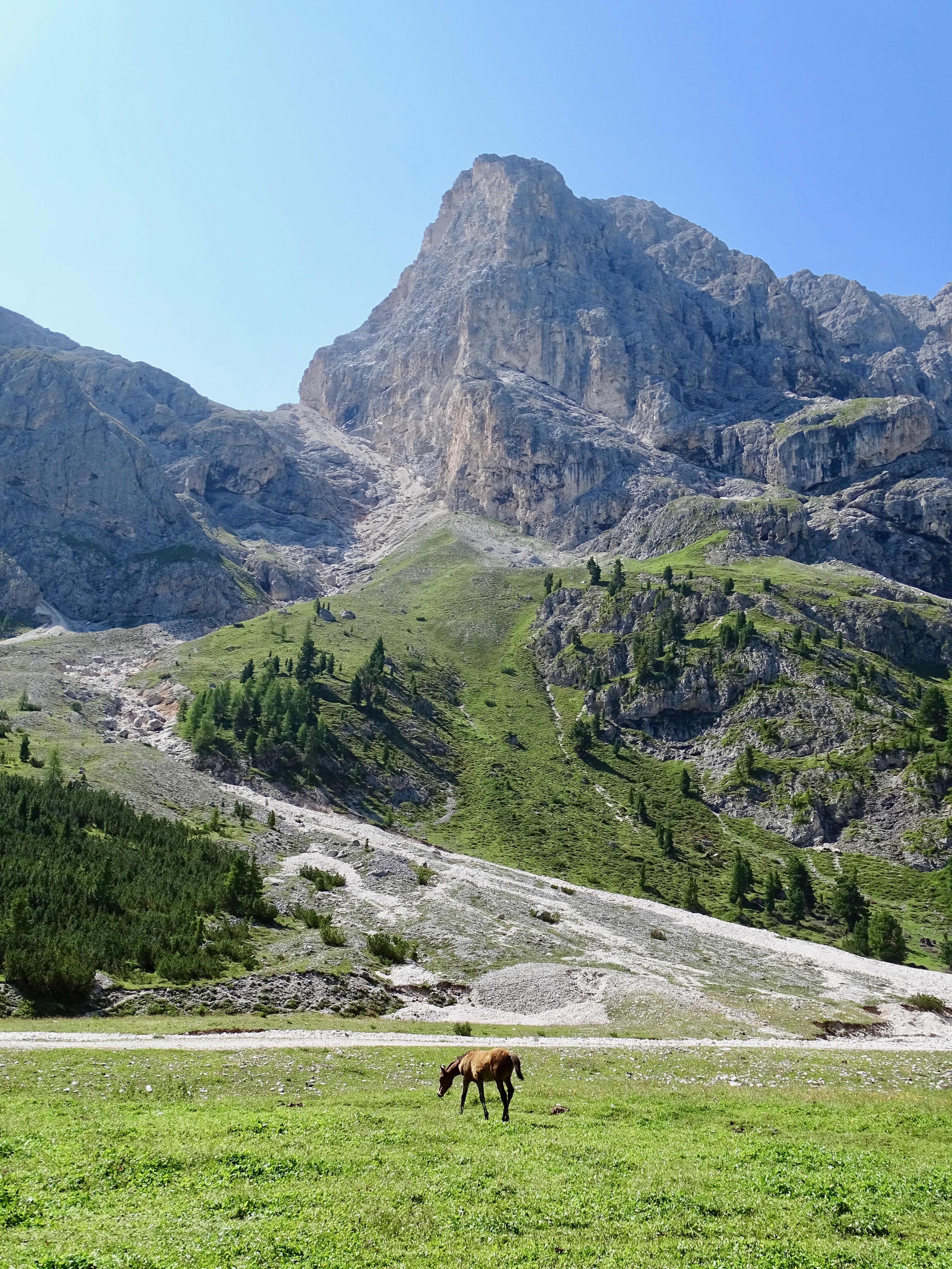 Passage par des plaines verdoyantes, hum il doit pas mal pleuvoir !! Heureusement pour nous, nous n’avons pas eu une seule goutte de pluie de tout notre séjour dans les Dolomites.