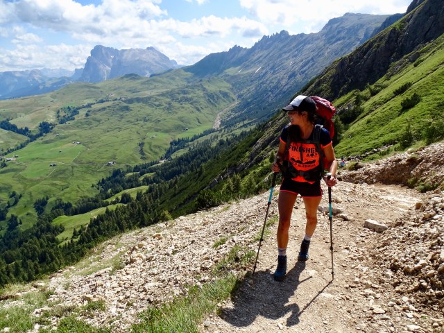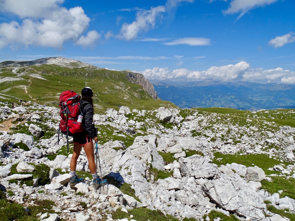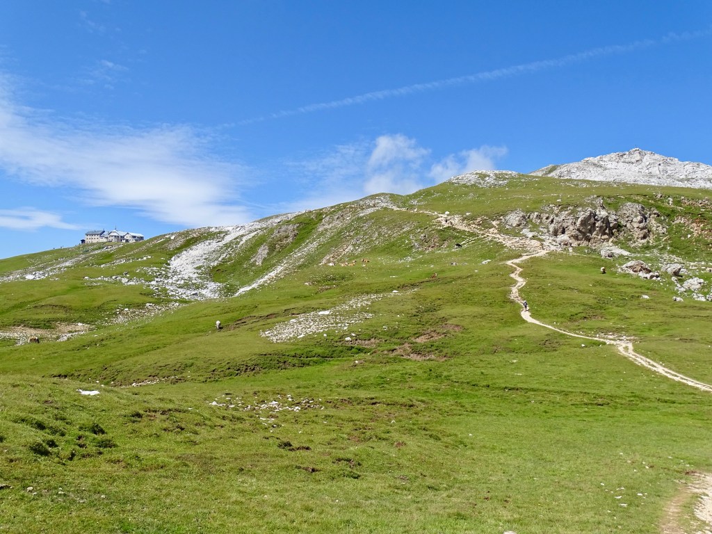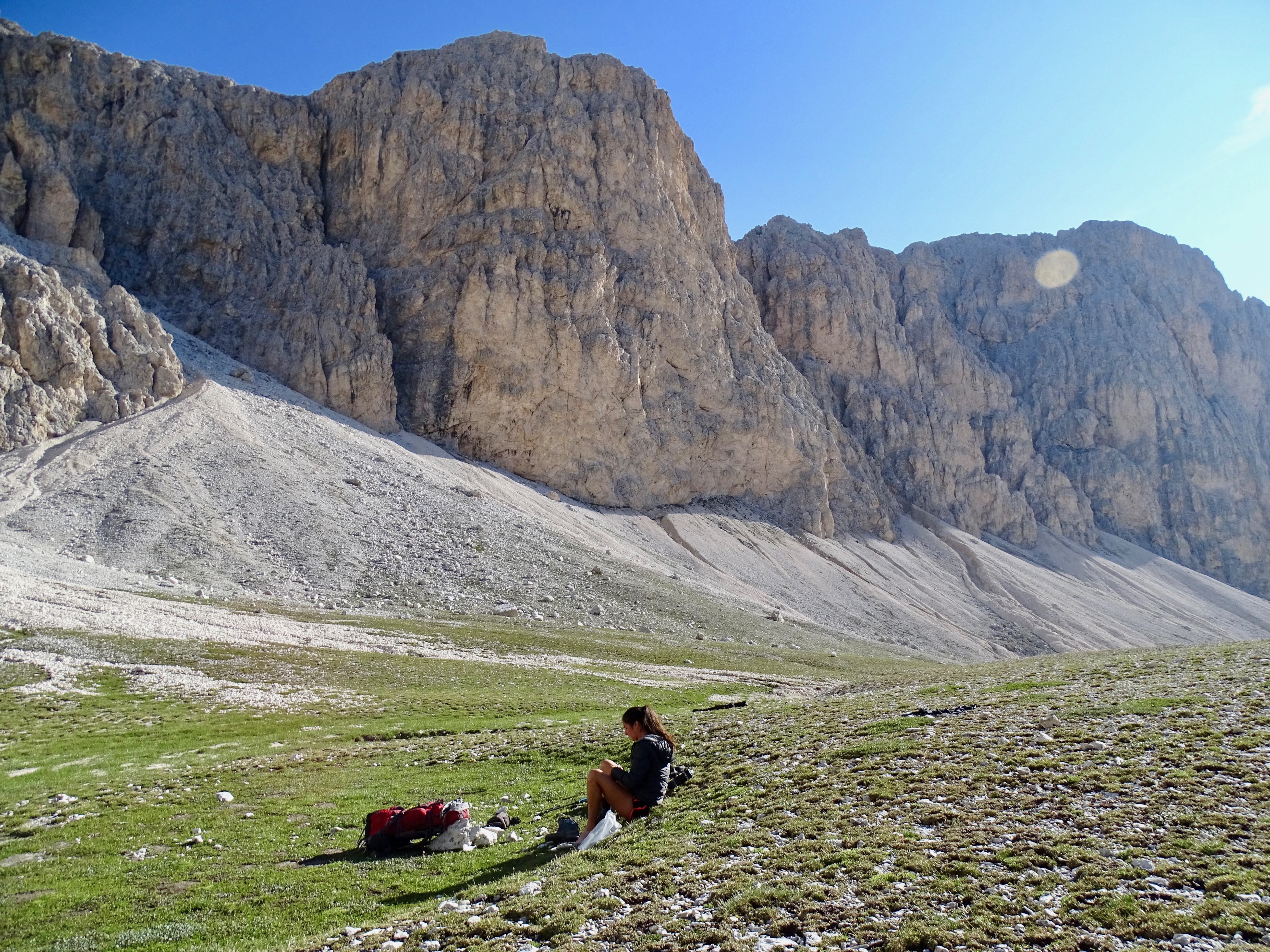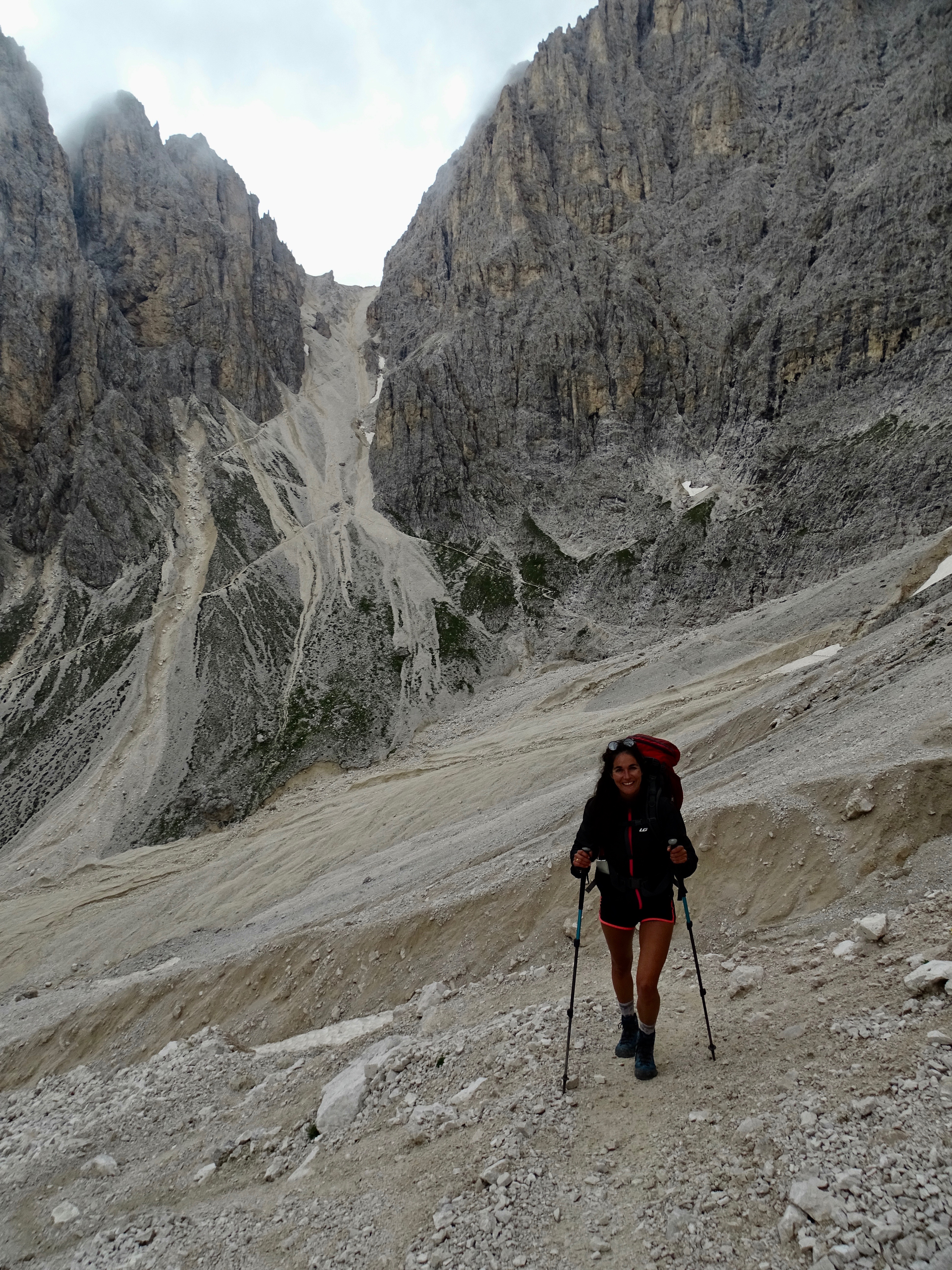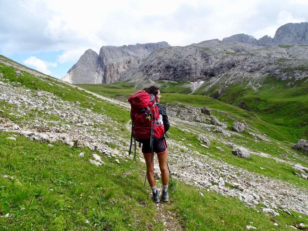 Début de la montée, d’abord un peu en forêt, puis en plein soleil. Je dois dire que c’était très très beau mais c’était l’autoroute ! Ça faisait très longtemps que je n’avais pas vu autant de monde, trop l’habitude d’être seule en montagne ! À vrai dire c’est un endroit encore facile d’accès car il y a juste une plaine et une montée afin d’aller au refuge de Bolzano.
