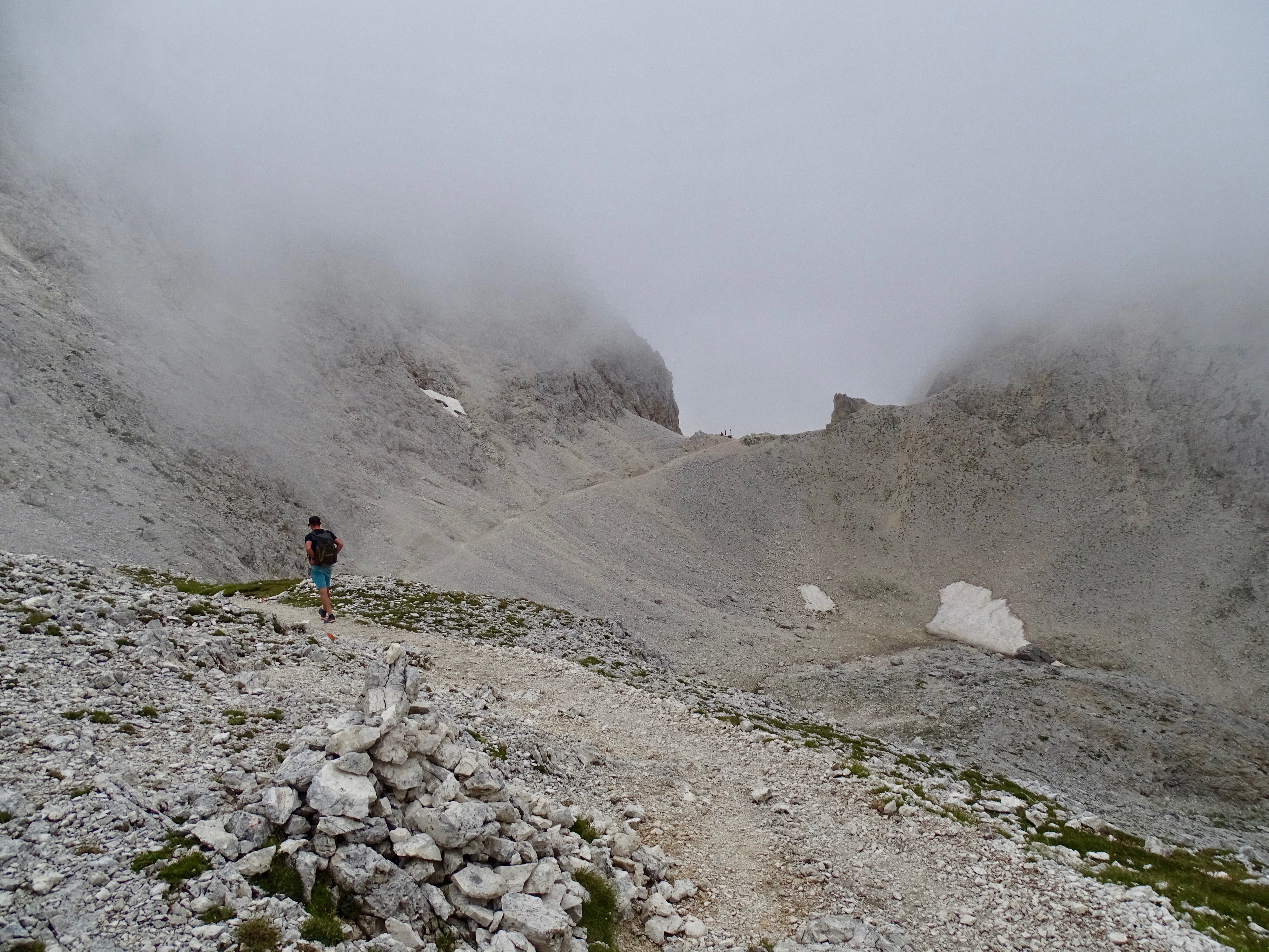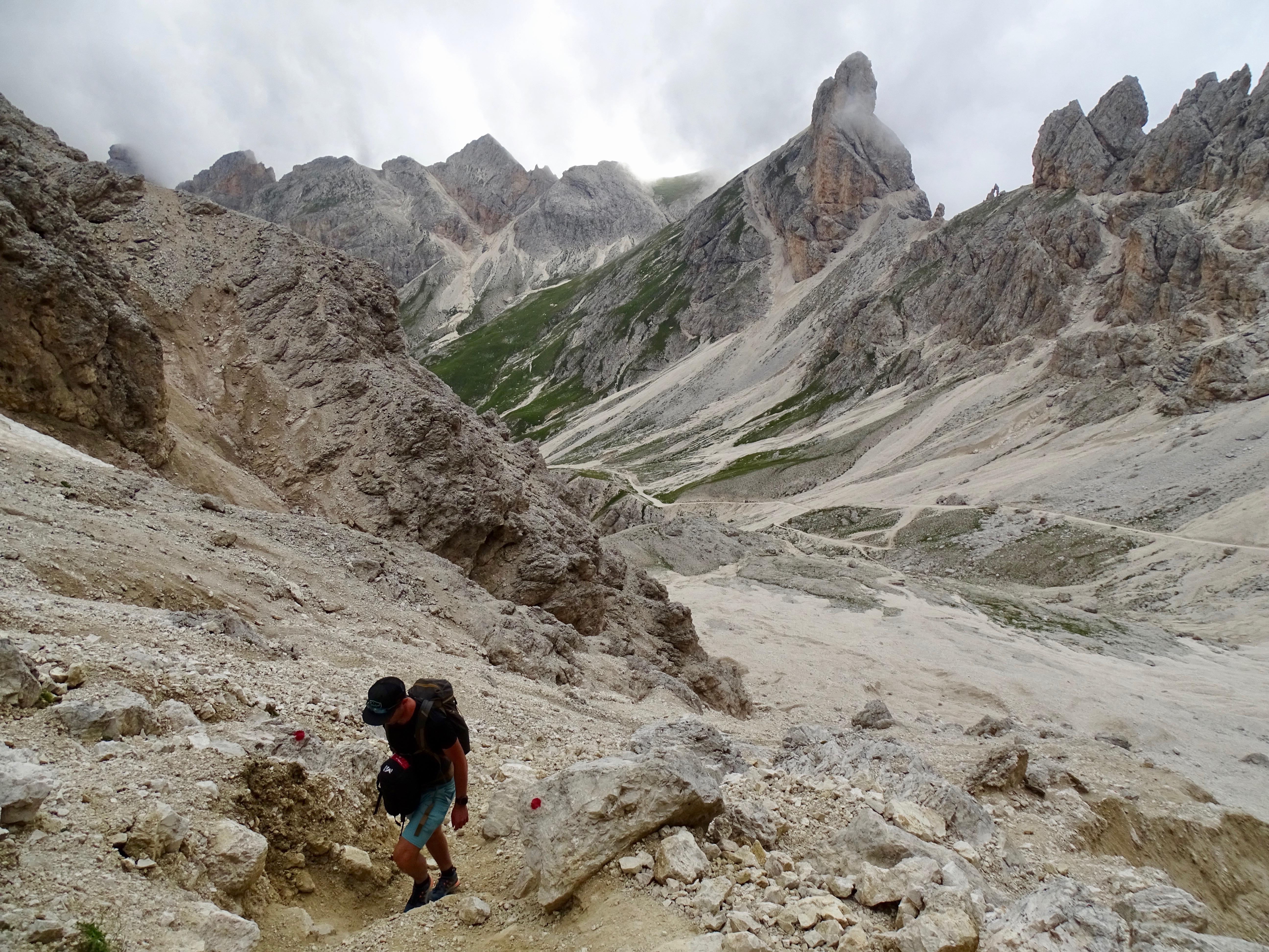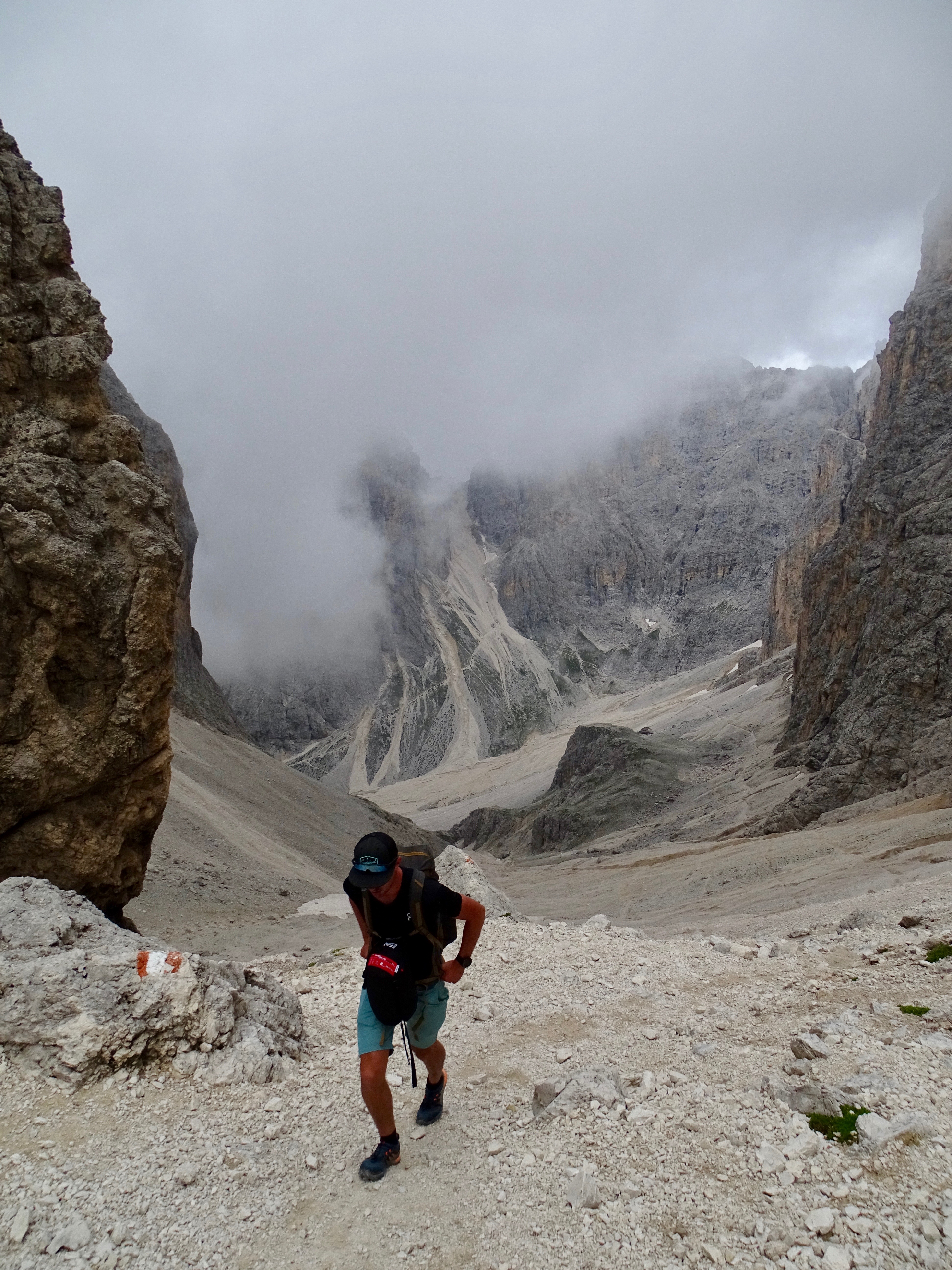 Arrivés au niveau du Pas de Dona l’autoroute a repris ! C’est fou car nous n’avions croisé quasiment personne depuis la veille au niveau du refuge Alpe di tires et la bim un max de monde ! Mais d’où venaient ces gens ? D’une vallée assez accessible !