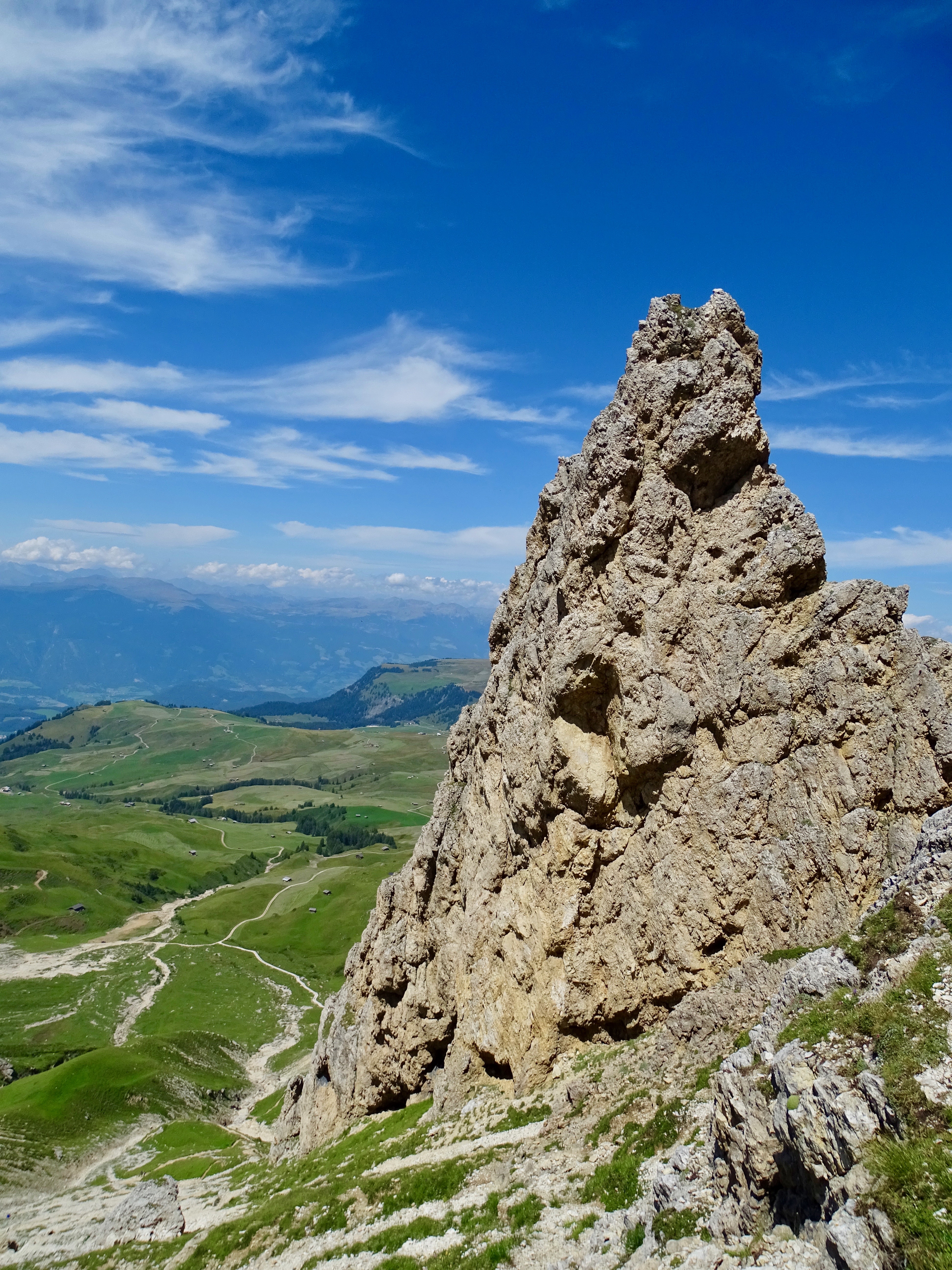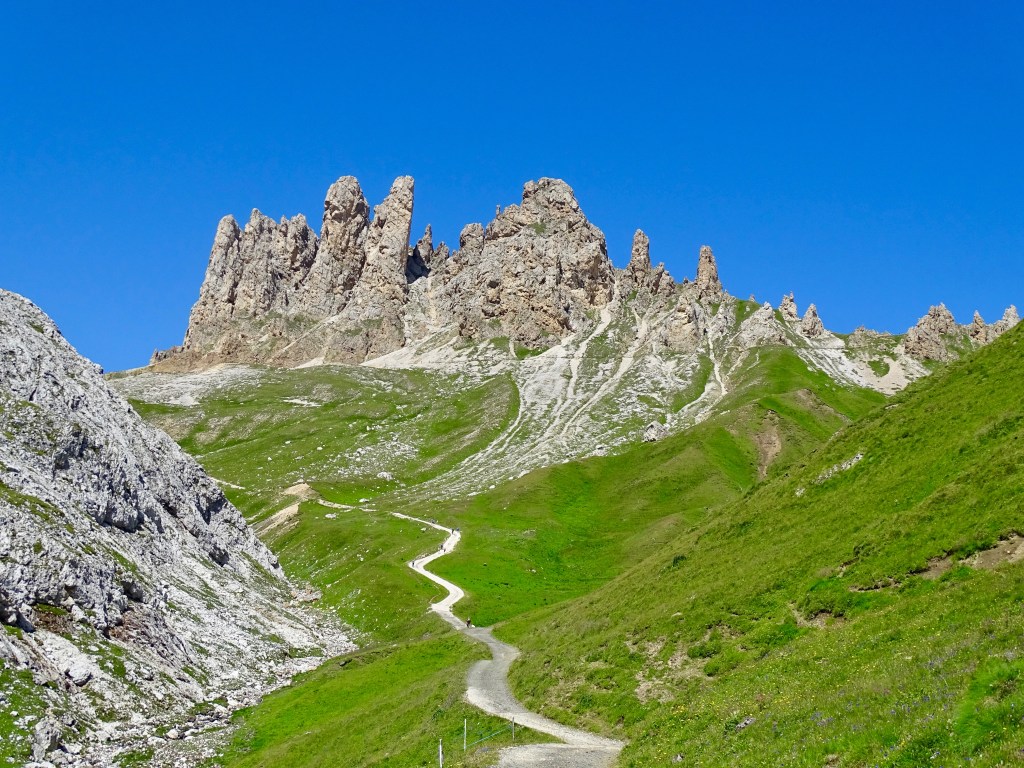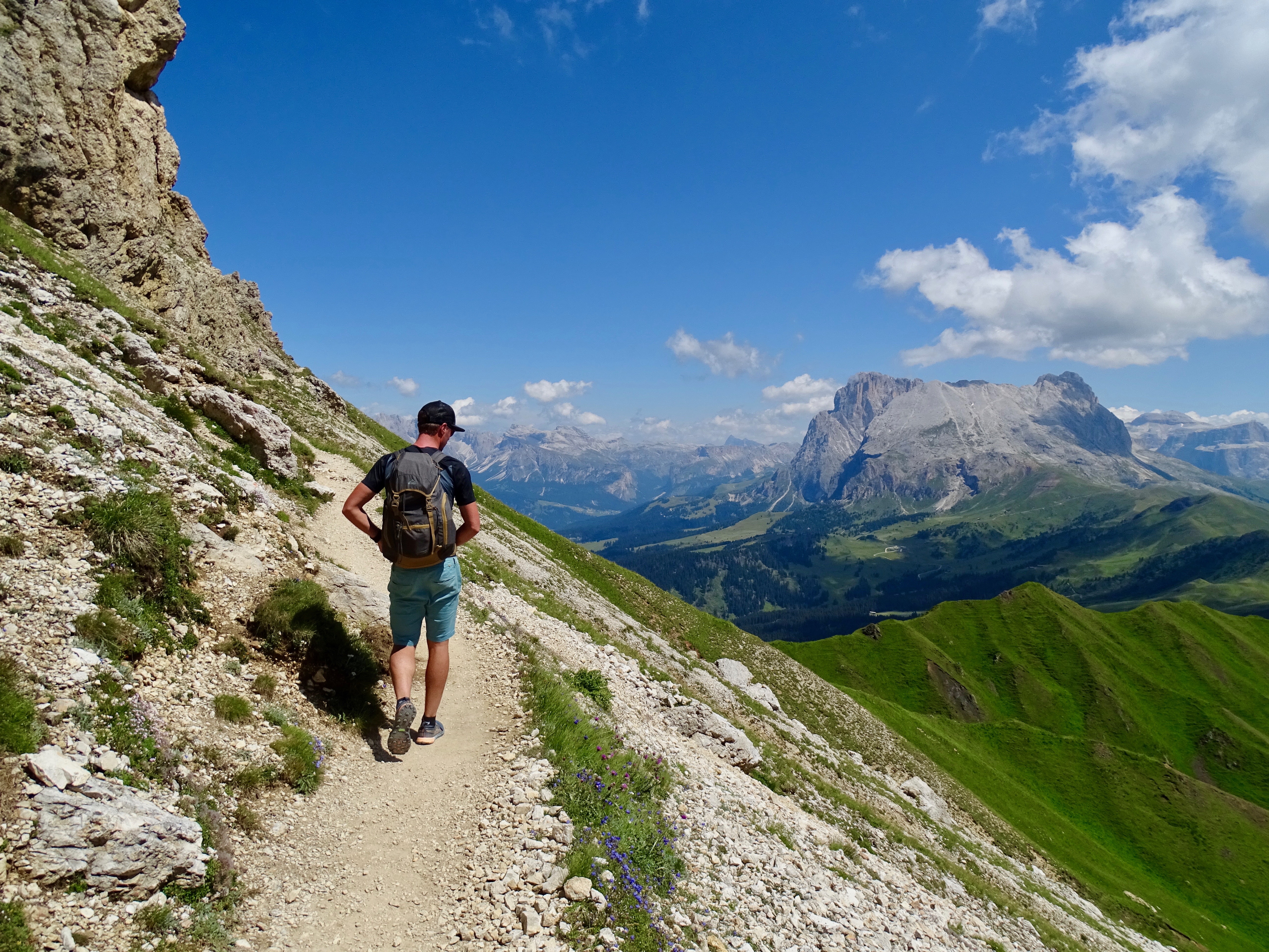 Arrivés au niveau du Pas de Dona l’autoroute a repris ! C’est fou car nous n’avions croisé quasiment personne depuis la veille au niveau du refuge Alpe di tires et la bim un max de monde ! Mais d’où venaient ces gens ? D’une vallée assez accessible !