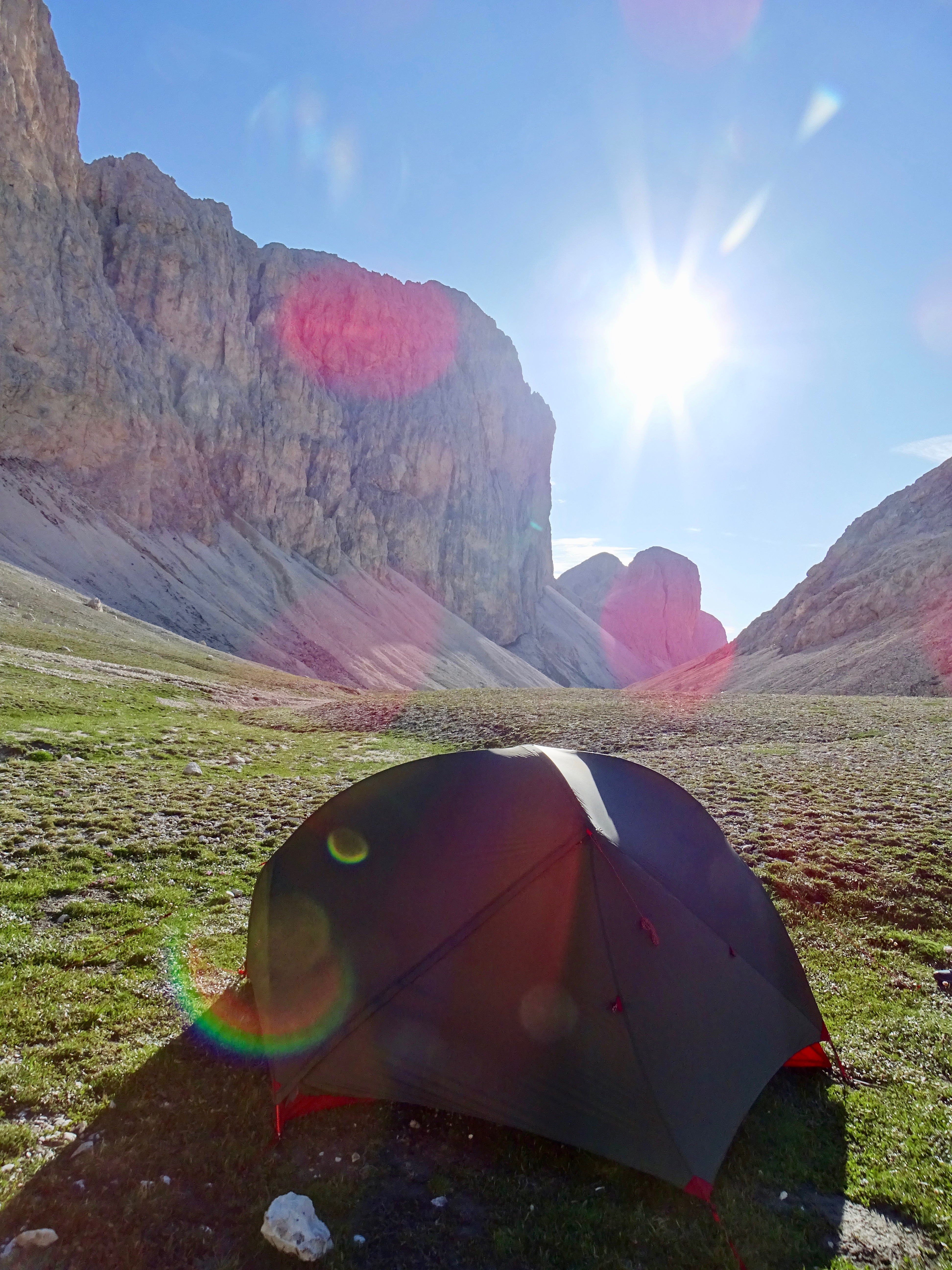 Vers 18h nous sommes arrivés au refuge Passo Principe (2600m), celui où nous voulions dormir à la base !! Sauf que j’ai du me trimbaler la tente (et le gros sac !!)
