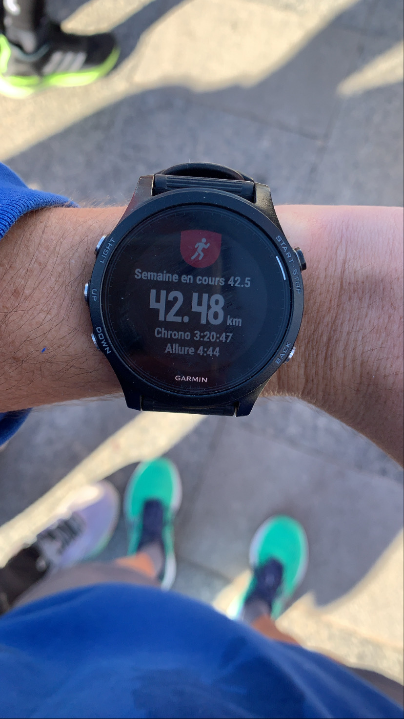 Passage du semi : en regardant ma montre, j’ai réalisé que j’avais déjà un peu plus qu’un semi, il faut que j’apprenne à prendre plus la corde.