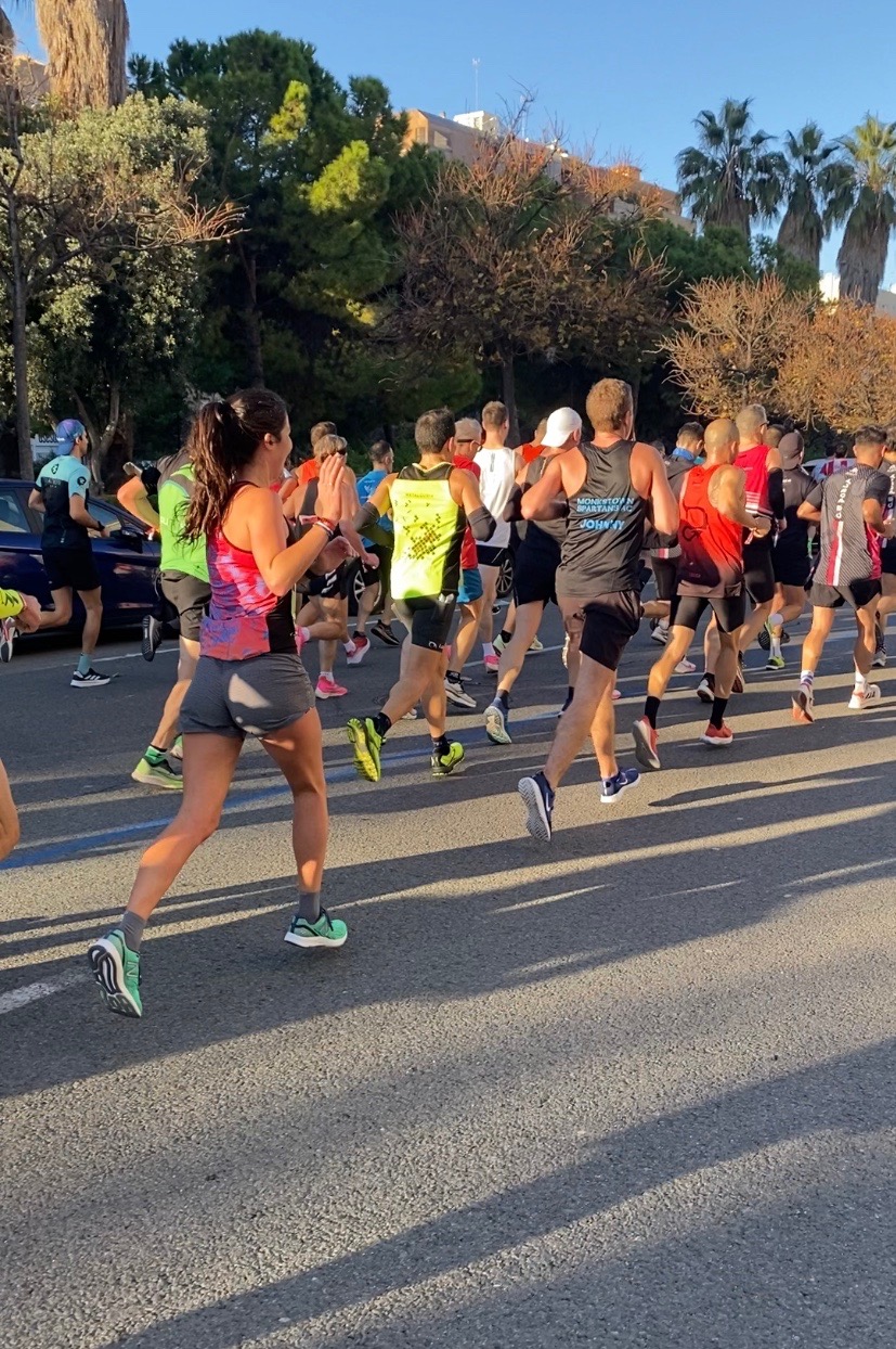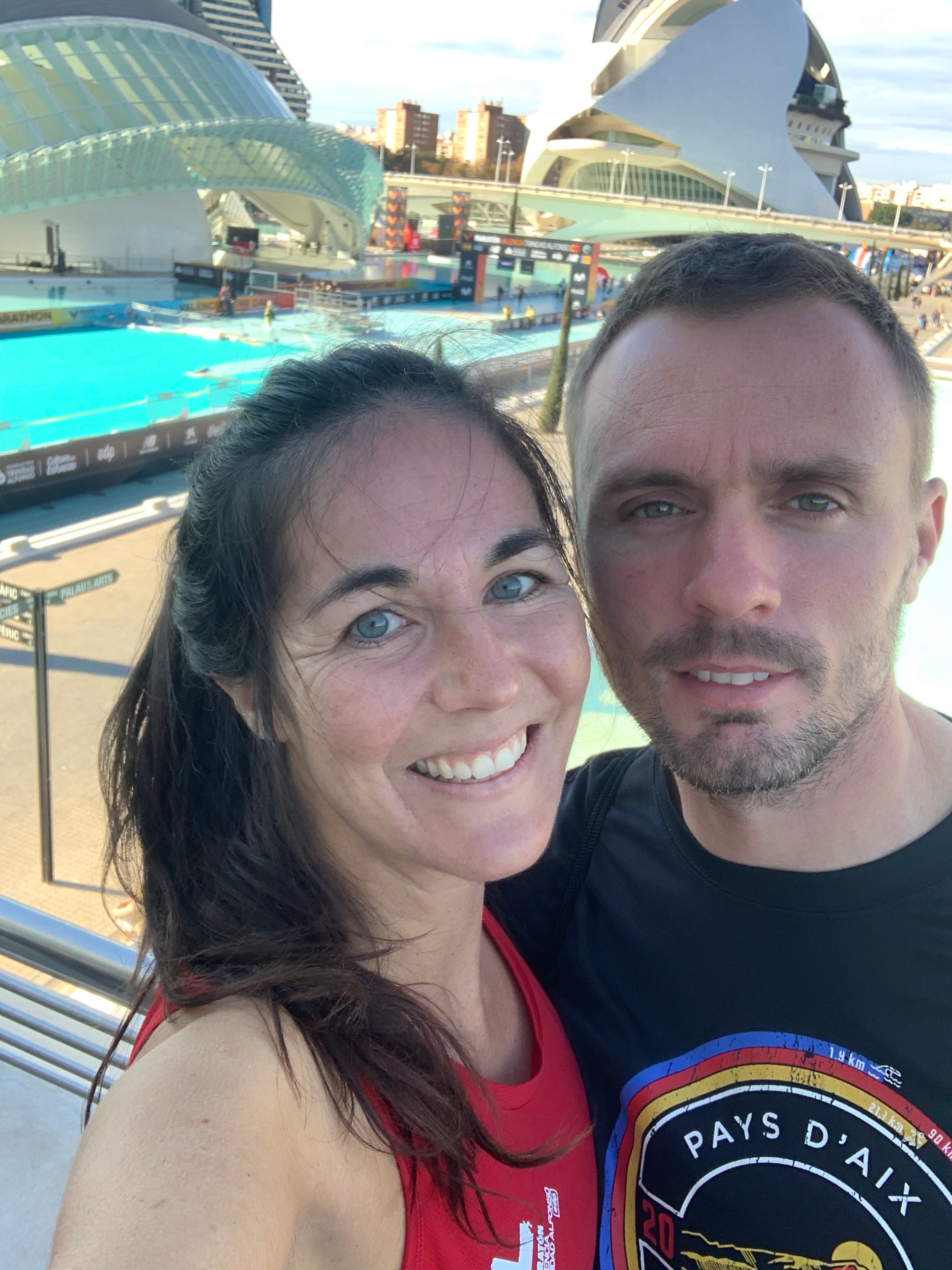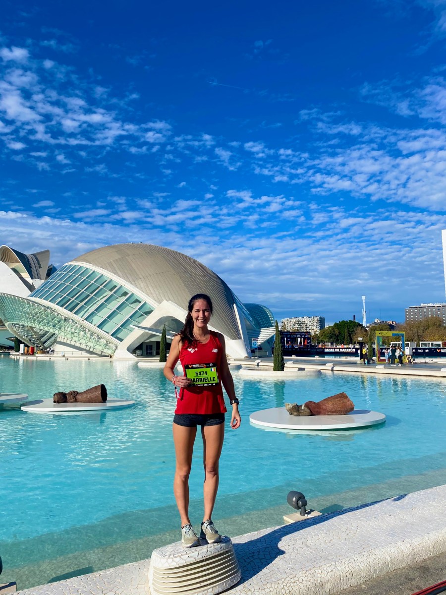 Mais au 40ème, Guitou était là, toujours avec son drapeau du valencia foot !! Il a commencé à courir avec moi, et c’était génial, cela m’a donné des ailes pour garder le même rythme !! Ambiance de folie, il était là et il y avait des milliers de personnes (bon ok à force d’être avec un marseillais j’exagère un peu). C’était génial, on criait Gabrielle, je souriais, je savais que c’était là fin, que j’allais finir ce marathon, en plus avec un superbe chrono.