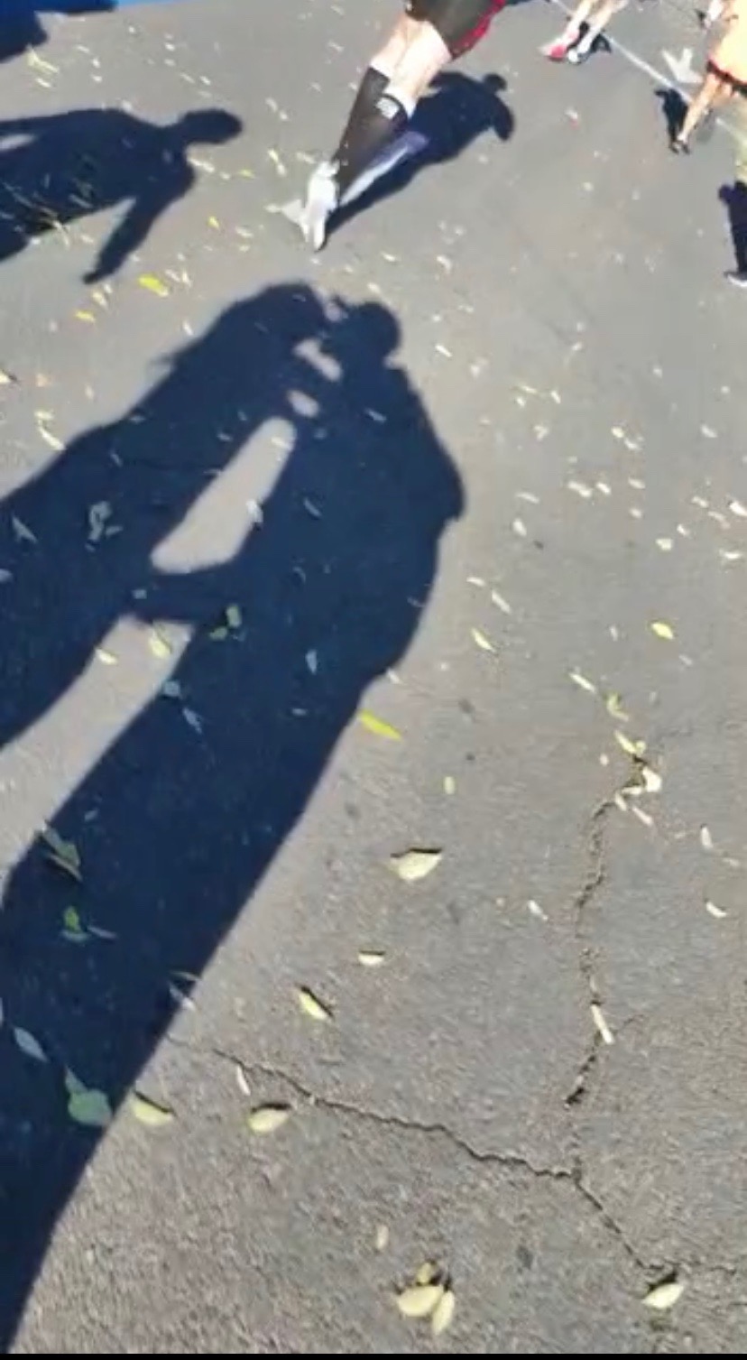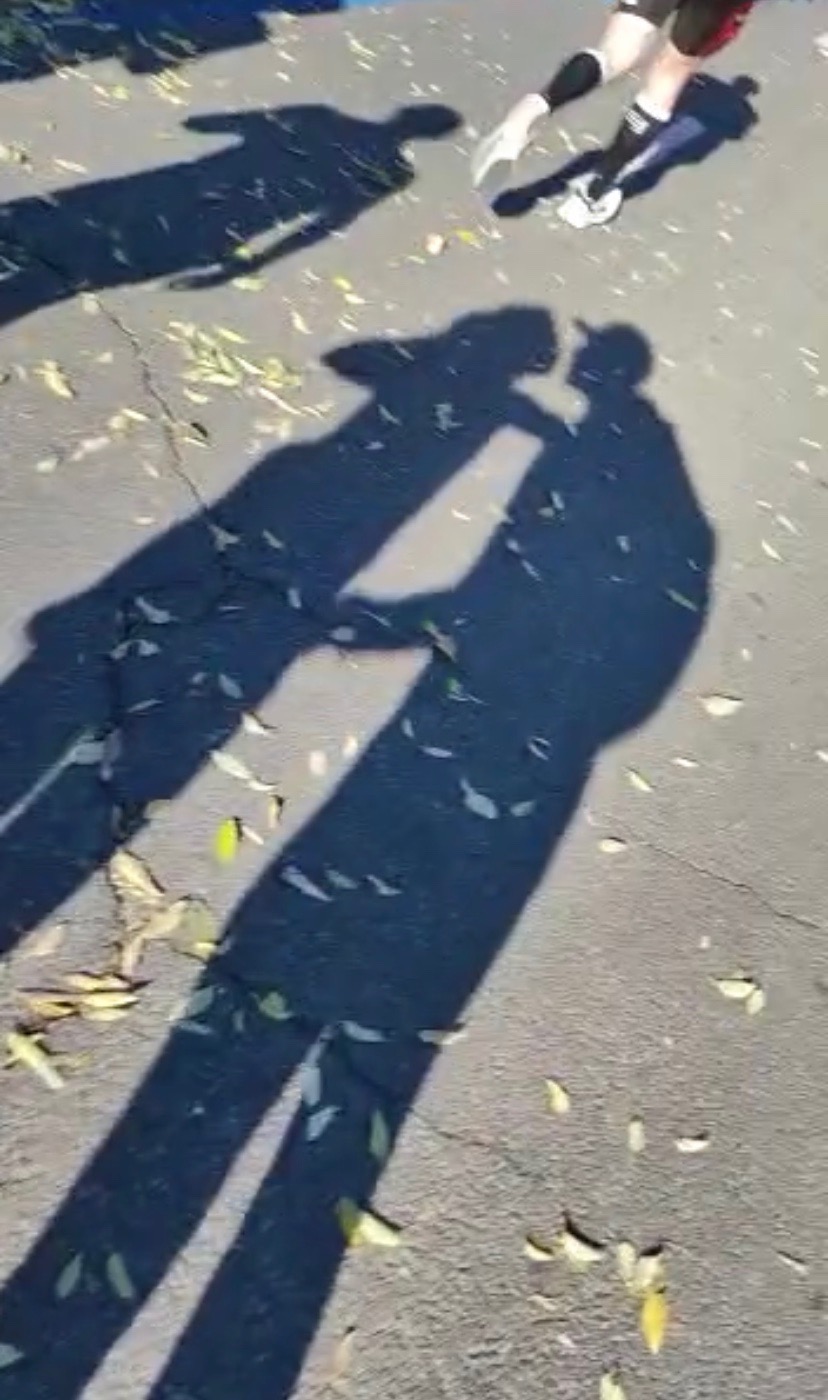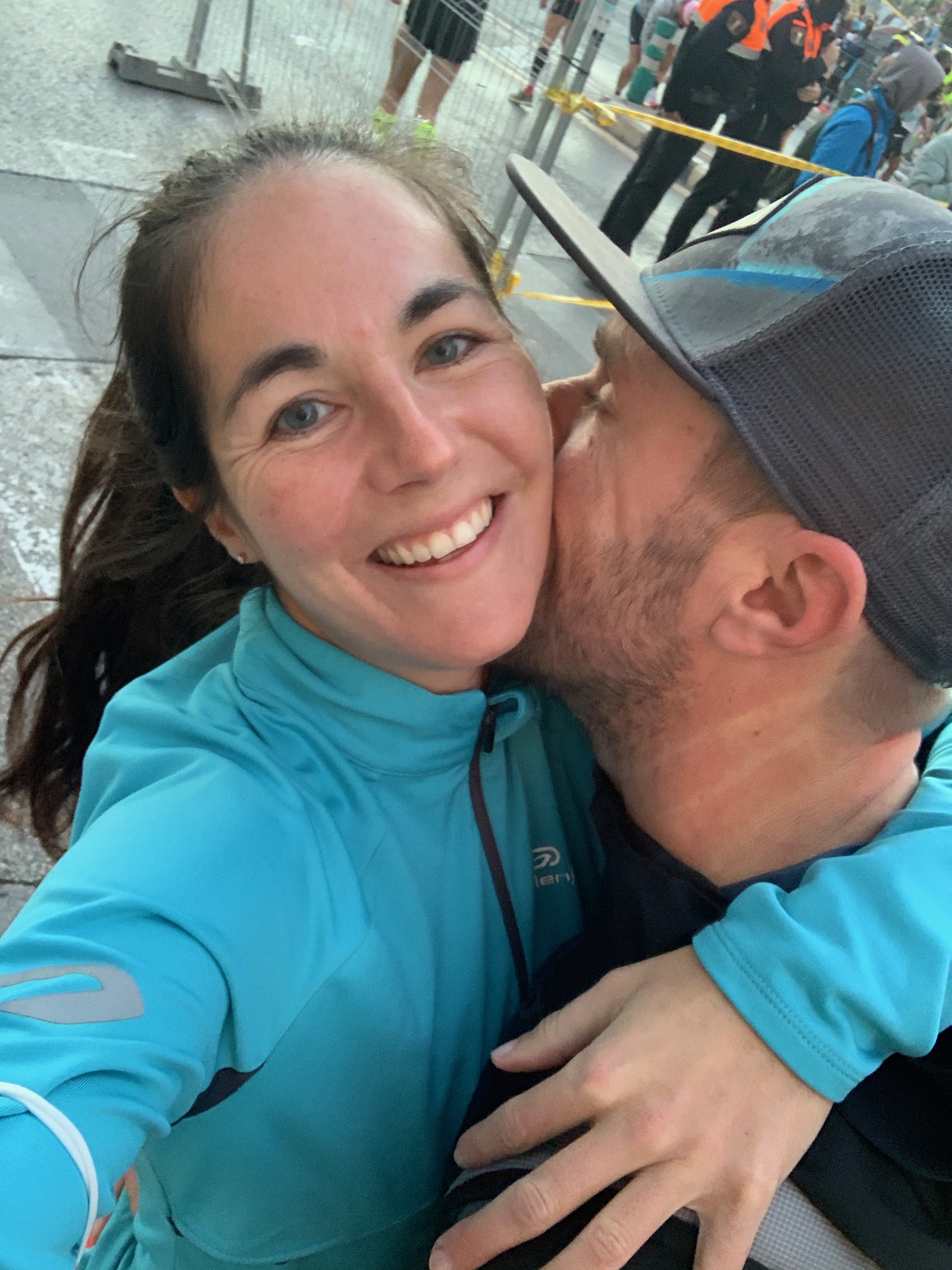 Un petit peu après le 10ème kilomètre, j’ai fait un bisou à mon amoureux. Tout allait bien ! Il avait l’air d’apprécier aussi d’être sur la course !