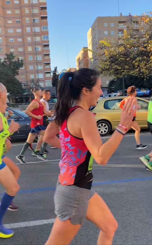 Les kilomètres ont continué à défiler rapidement, à un moment je suis même passée du 24 au 27 km sans m’en rendre compte ! Il y avait beaucoup d’encouragements, je faisais coucou aux gens qui m’acclamaient en leur souriant encore plus. Parfois même quand il y avait une musique cool je tapais dans mes mains en fredonnant l’air (ceux qui me connaissent rigoleront en lisant cette phrase et en m’imaginant chantant !)