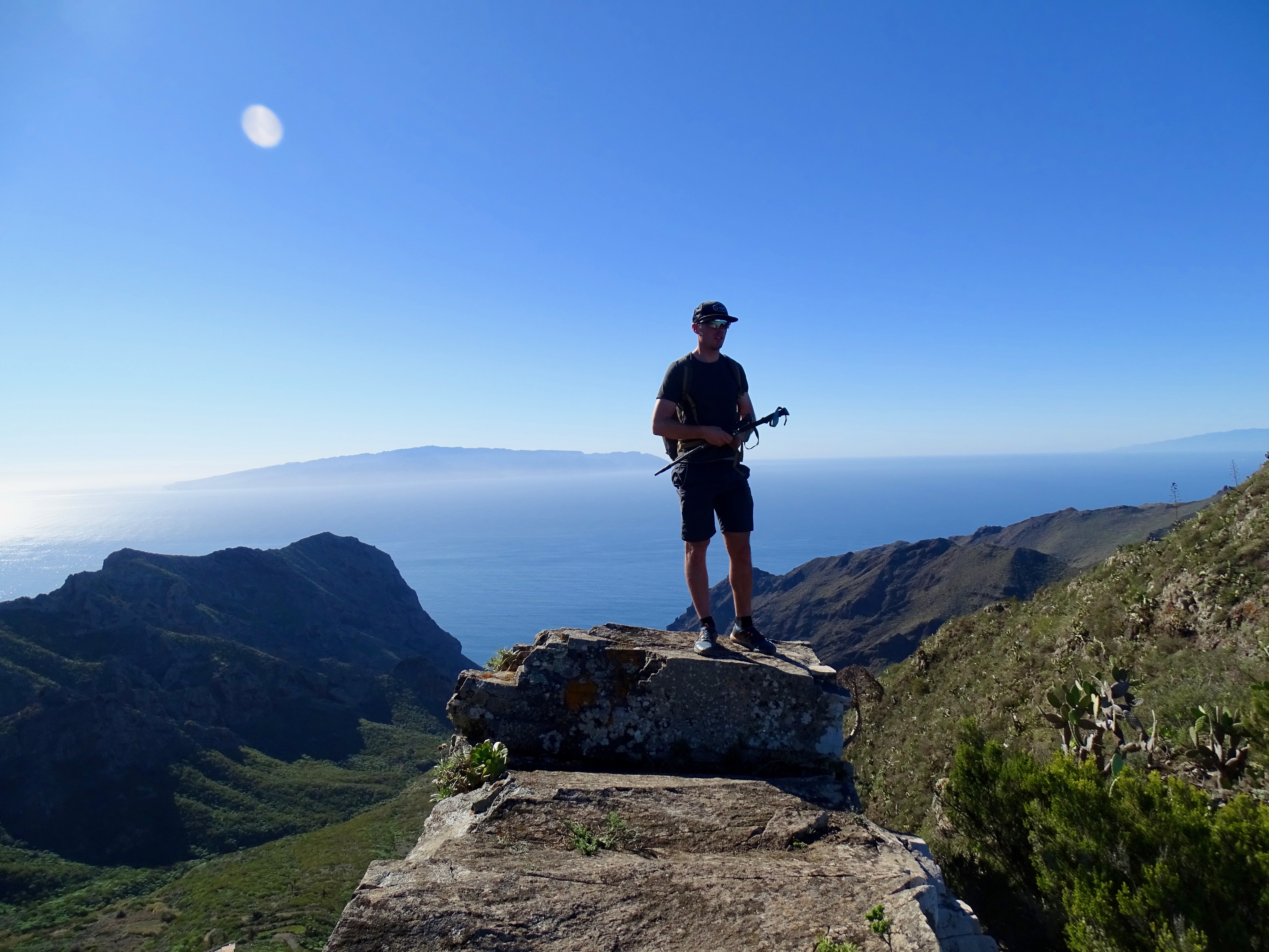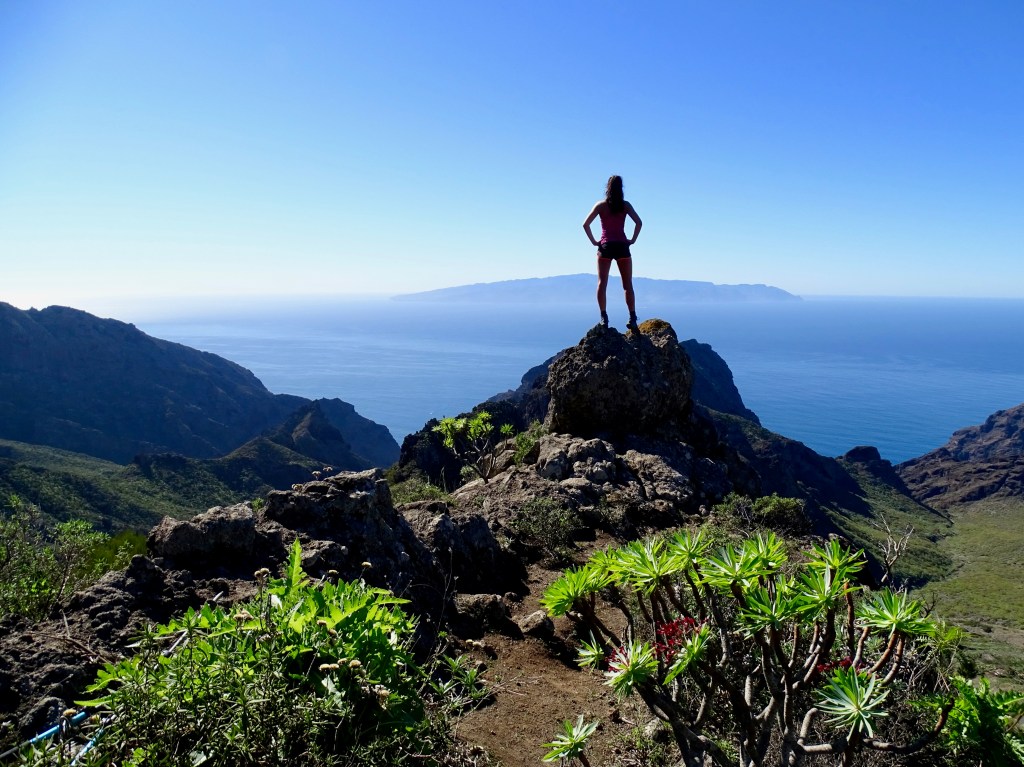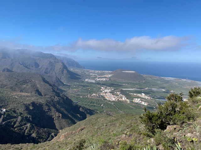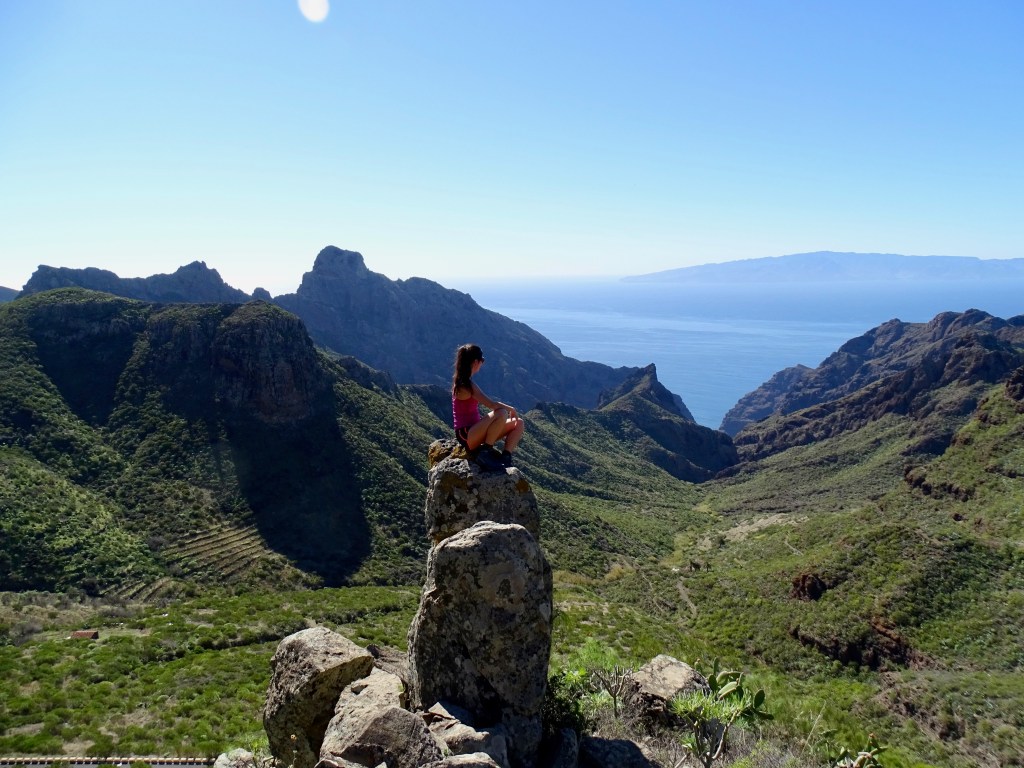 Arrivés au point culminant du parc de Teno à plus de 1000m d’altitude. La mer de partout avec d’un côté le parc verdoyant, et l’autre côté les petits villages.