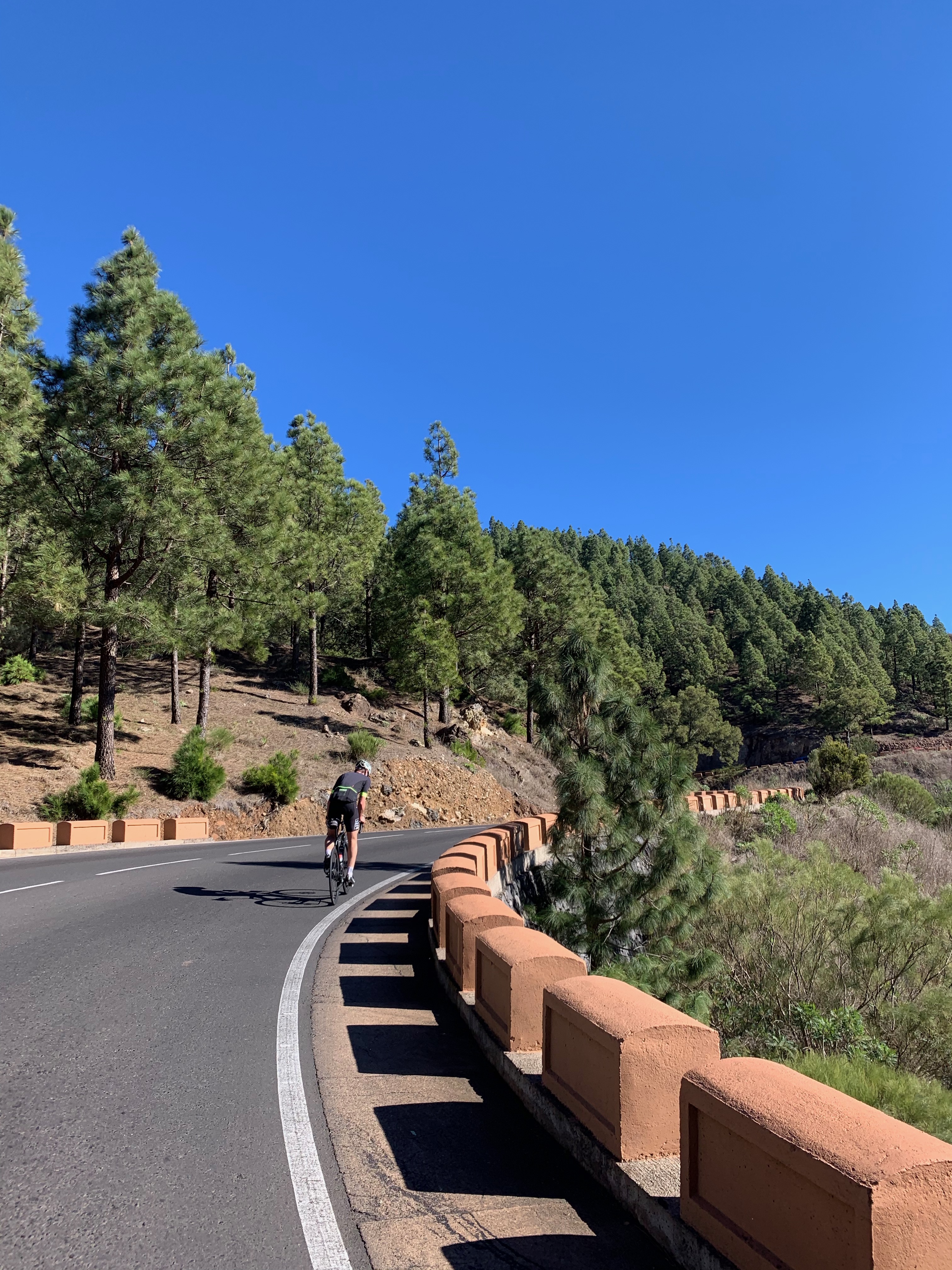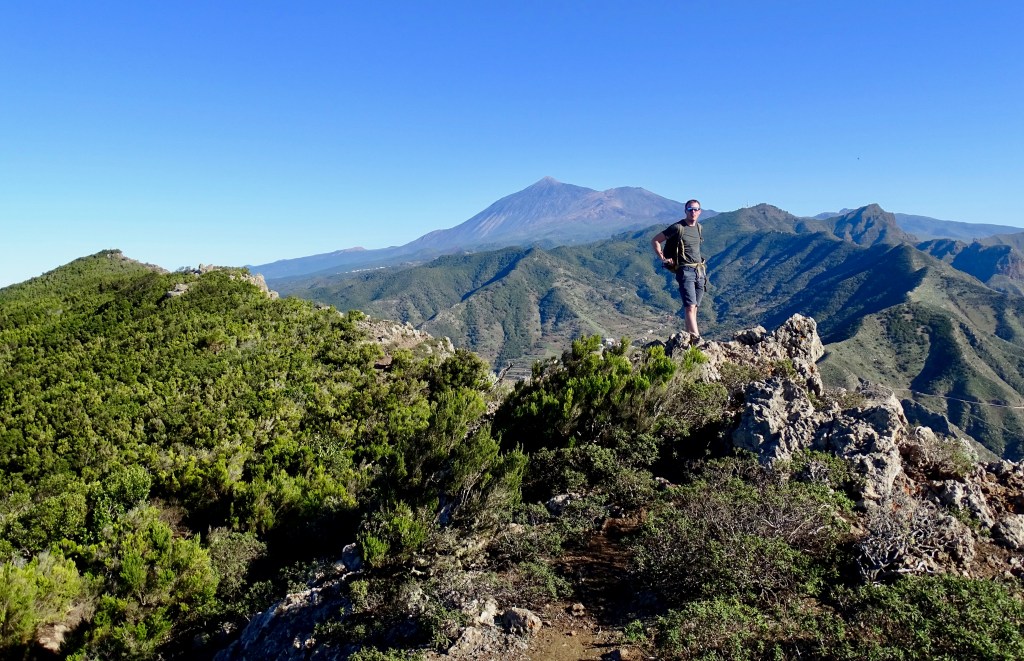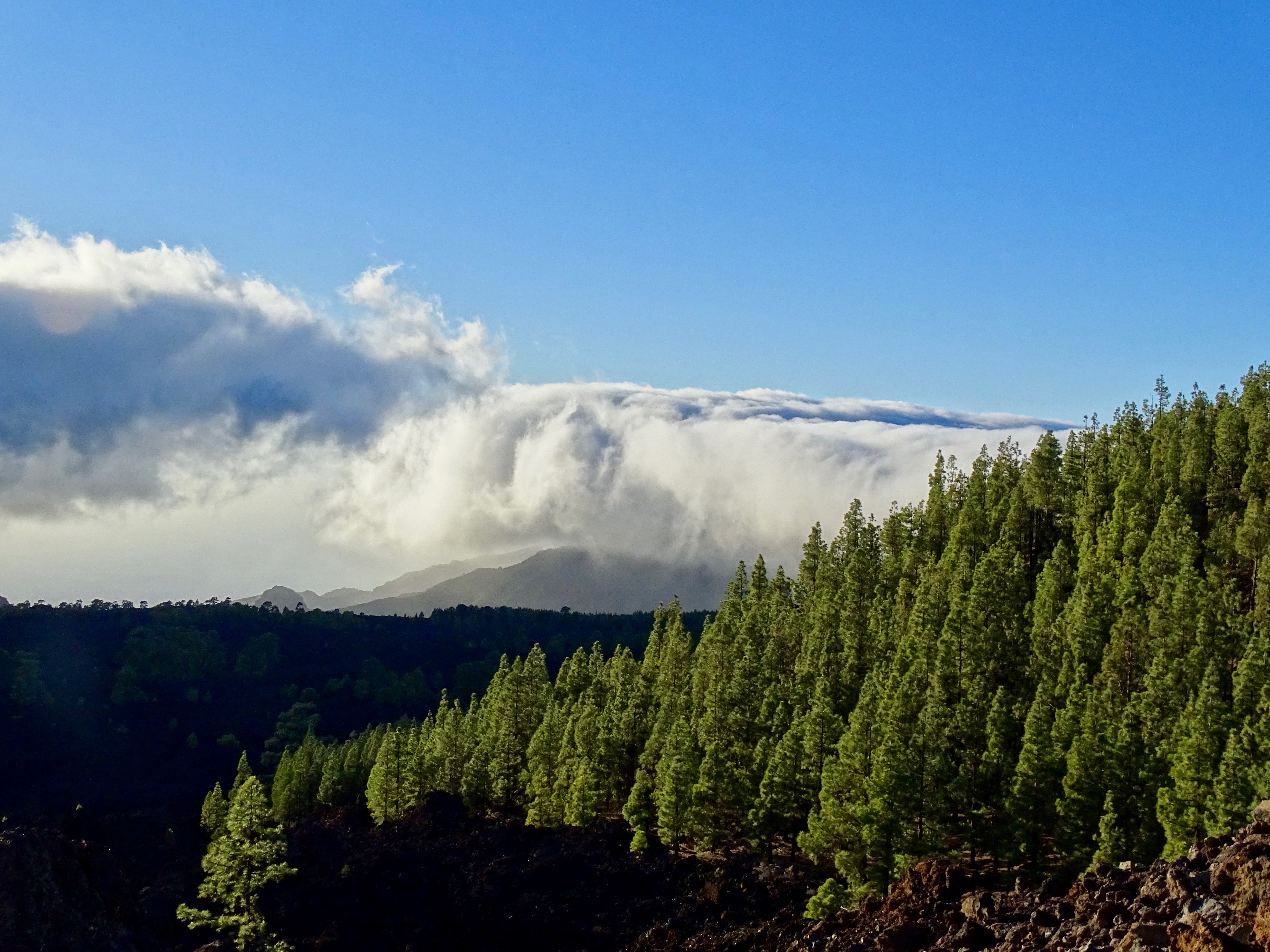Après le passage à Santiago del Teide, belle montée forestière avec la vue sur le Teide tellement beau.