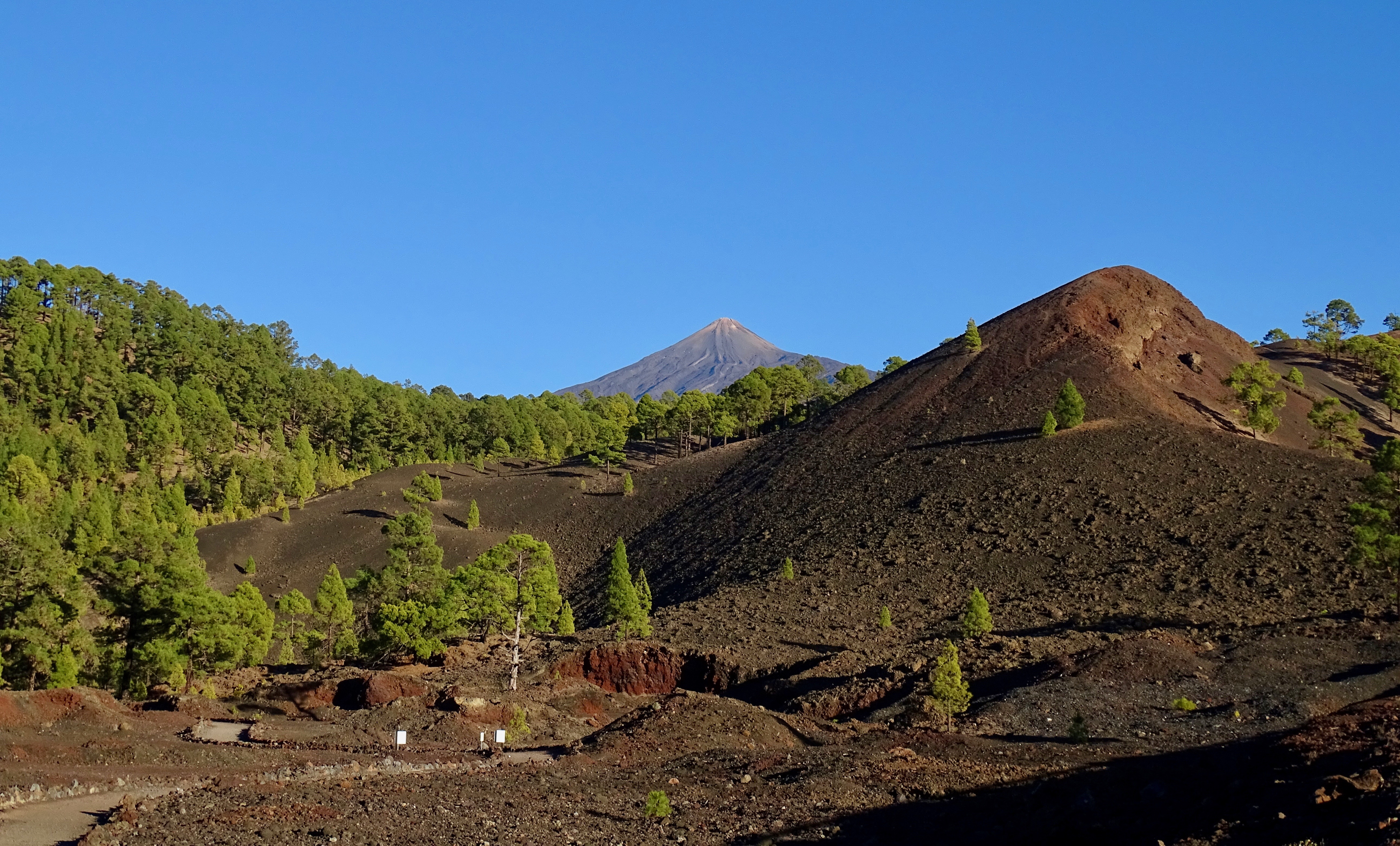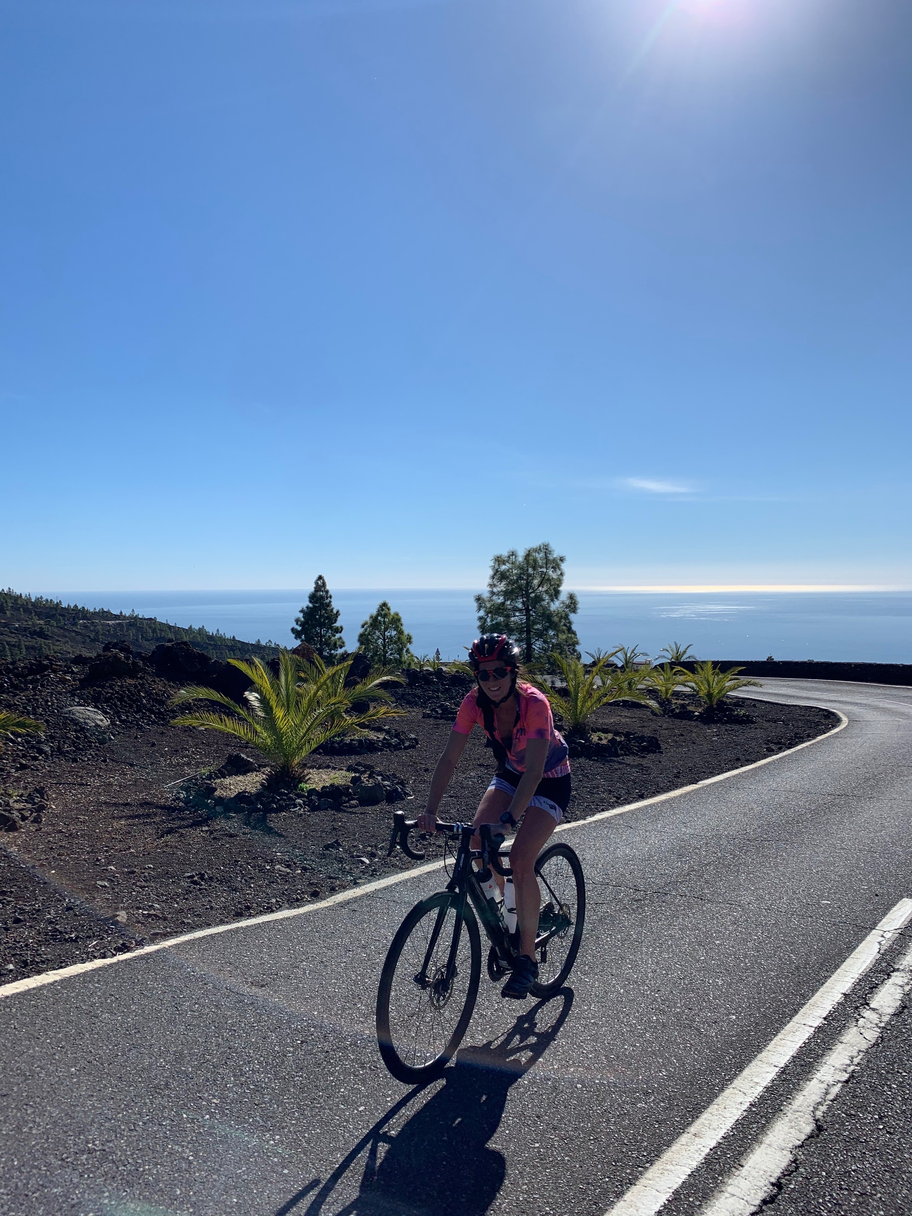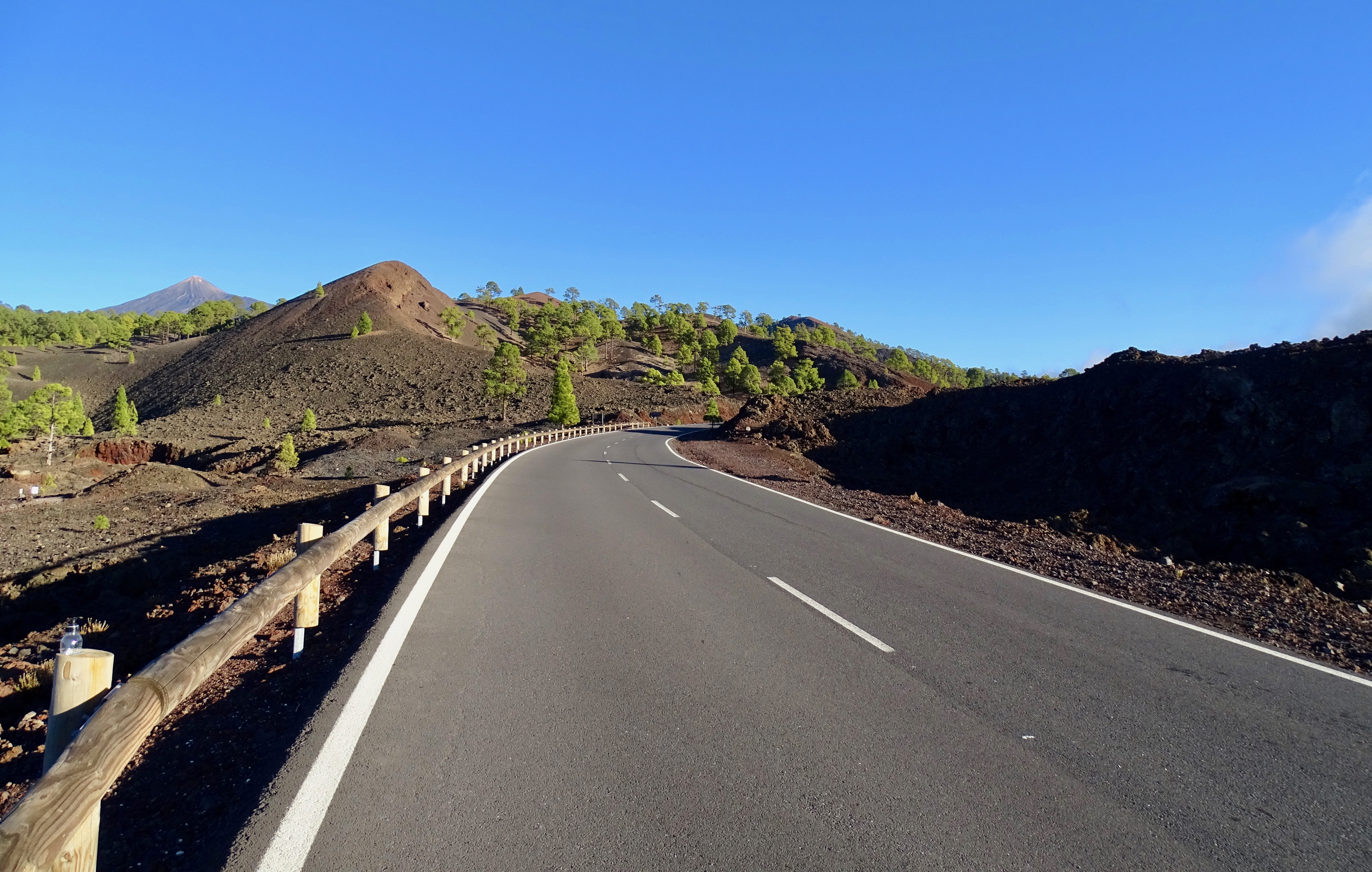 Après le passage à Santiago del Teide, belle montée forestière avec la vue sur le Teide tellement beau.