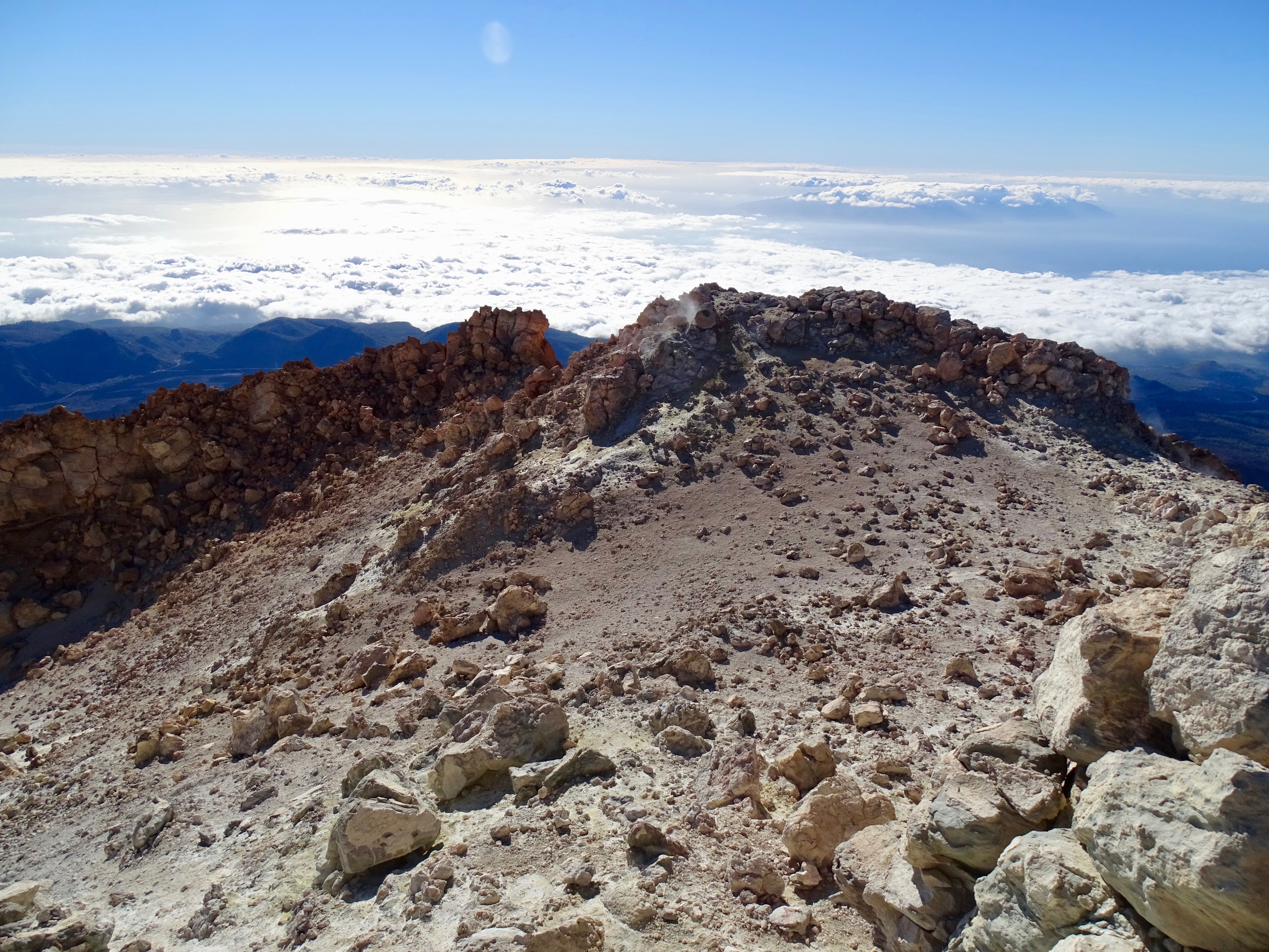 Il faisait bien froid au sommet : 3718m. Pourtant il y avait des jets de chaleur (je pense que le terme est inexact), genre du gaz.