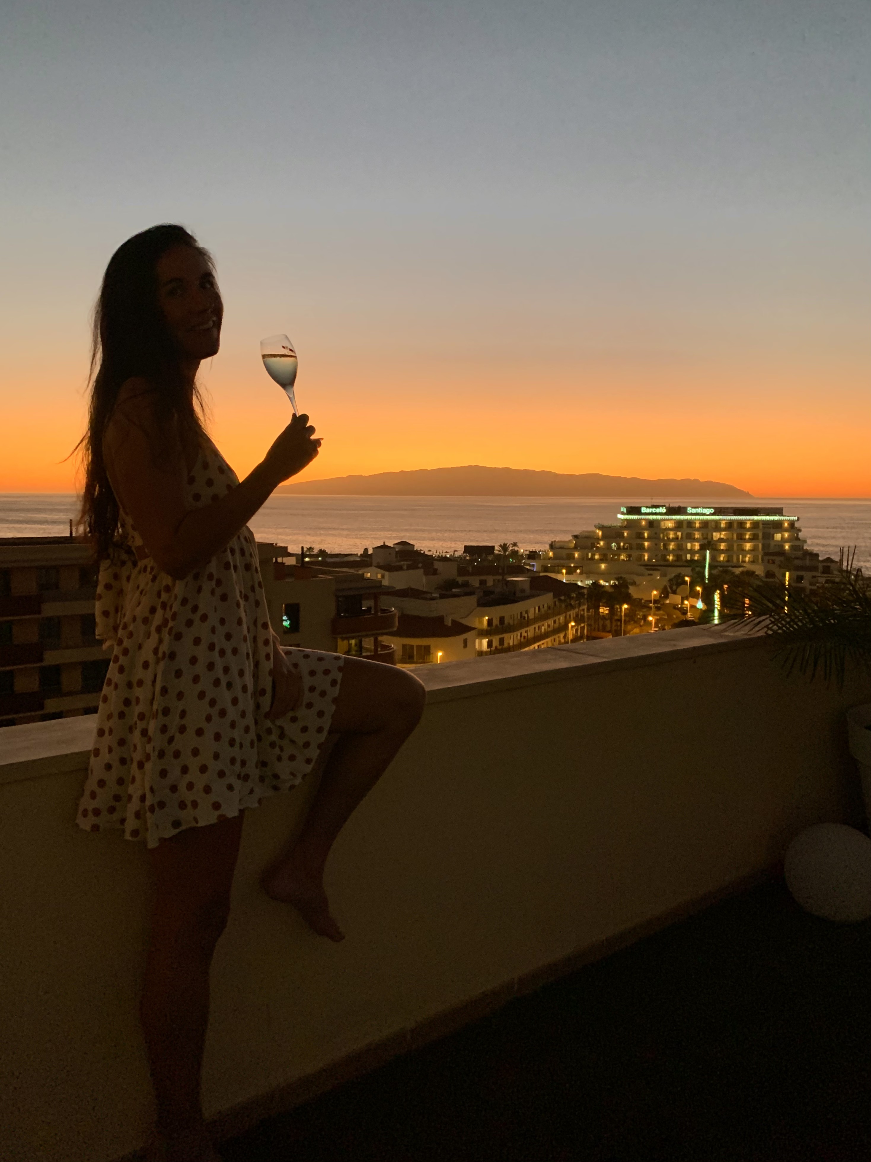 Réveil en douceur en ouvrant les rideaux, vue face à la mer et l’ile de la Gomera.