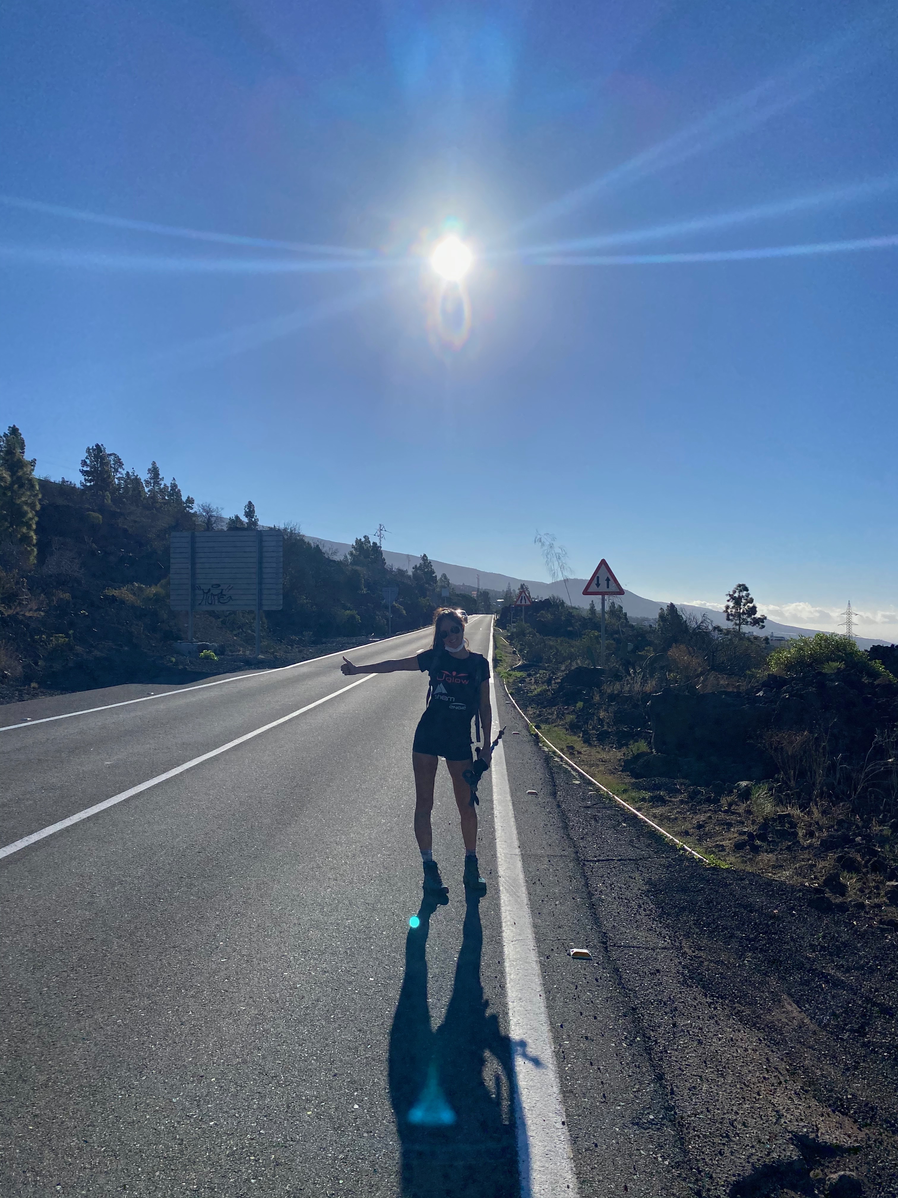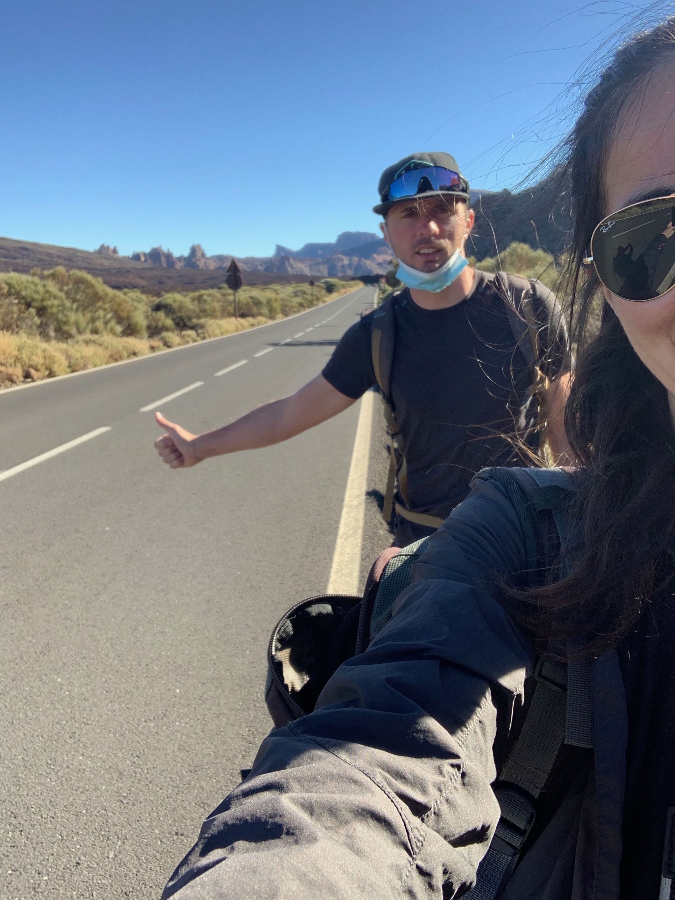 Deuxième stop : 2 allemandes, et j’en parle car vraiment ça mérite le détour. Nous étions tranquillement sur la route du Parc national du Teide, qui soit dit en passant était magnifique. Un passage de forêt de pins, puis des pins dans la lave, tout en voyant la mer au loin et surtout le volcan que nous allions gravir (qui paraissait loin !!!). Donc un moment sans crier gare j’ai sorti : « Oh it’s nice to travel Mother/daughter » (mère/fille). Elles se sont regardées en rigolant et l’amoureux m’a dit « mais pourquoi as-tu dit cela ?? ». Oups boulette ! Elles étaient juste copines. Elles ont failli nous laisser sur le bord de la route, ah c’est ce qu’elles ont fait ! hahah