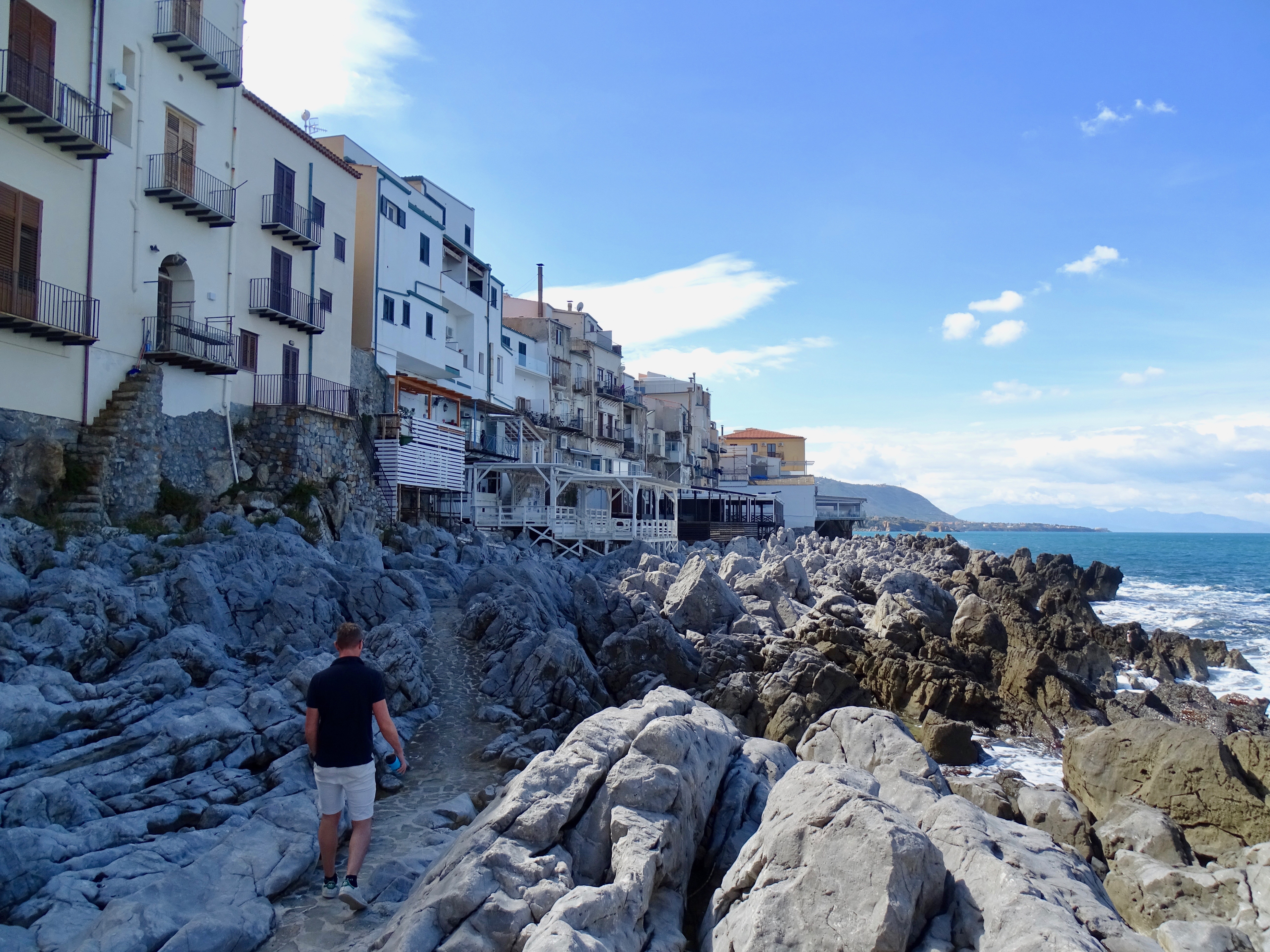Première impression : village plus riche que les précédents, plus touristique, avec de beaux hôtels et les prix français au restaurant alors qu’à Palerme/Cefalu nous avions mangé pour vraiment pas cher (environ 10 euros le plat).