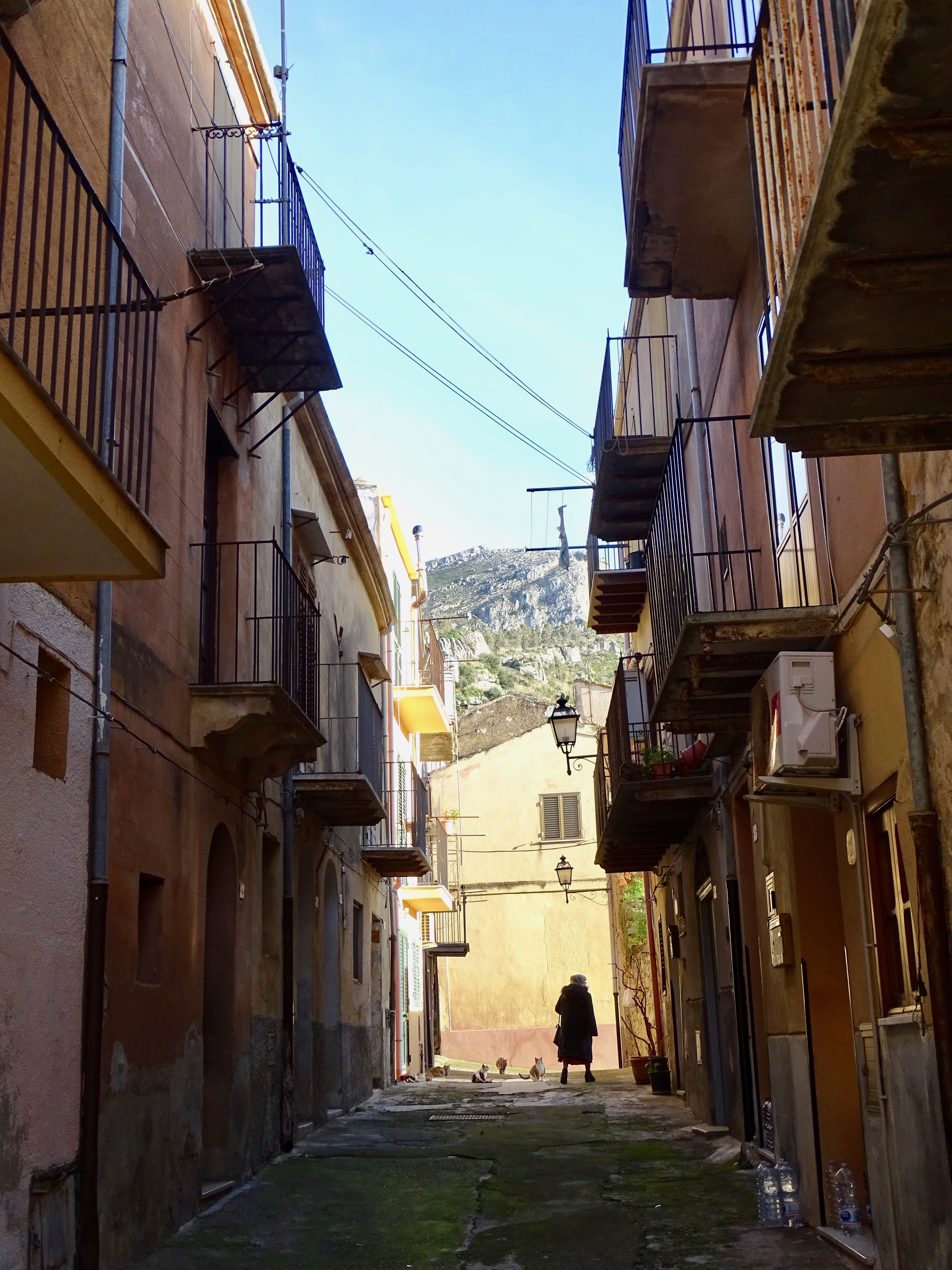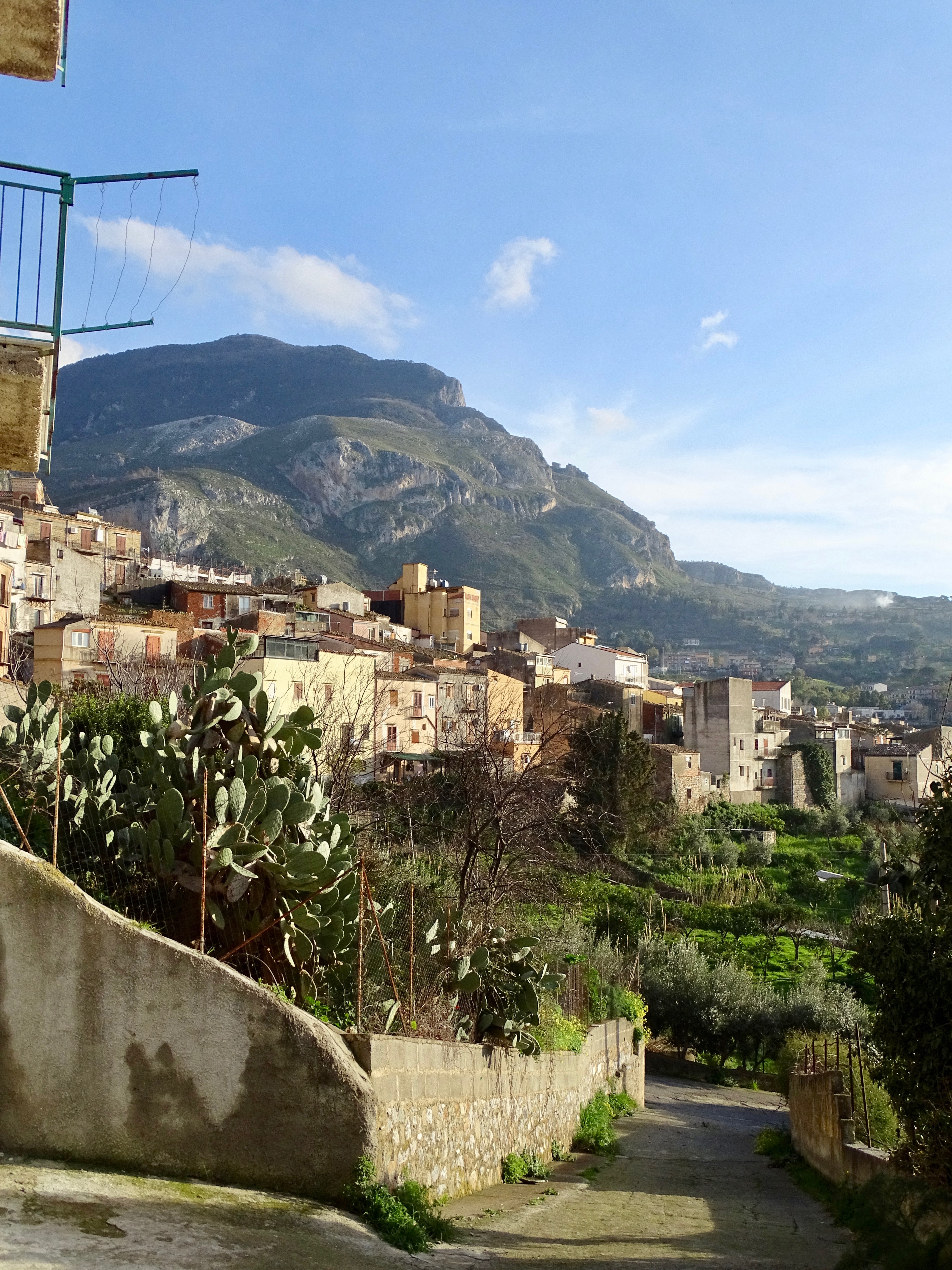 Petit stop dans le charmant village de Collesano, sur les hauteurs, avec vue sur la mer au loin et les vestiges de la ville médiévale.