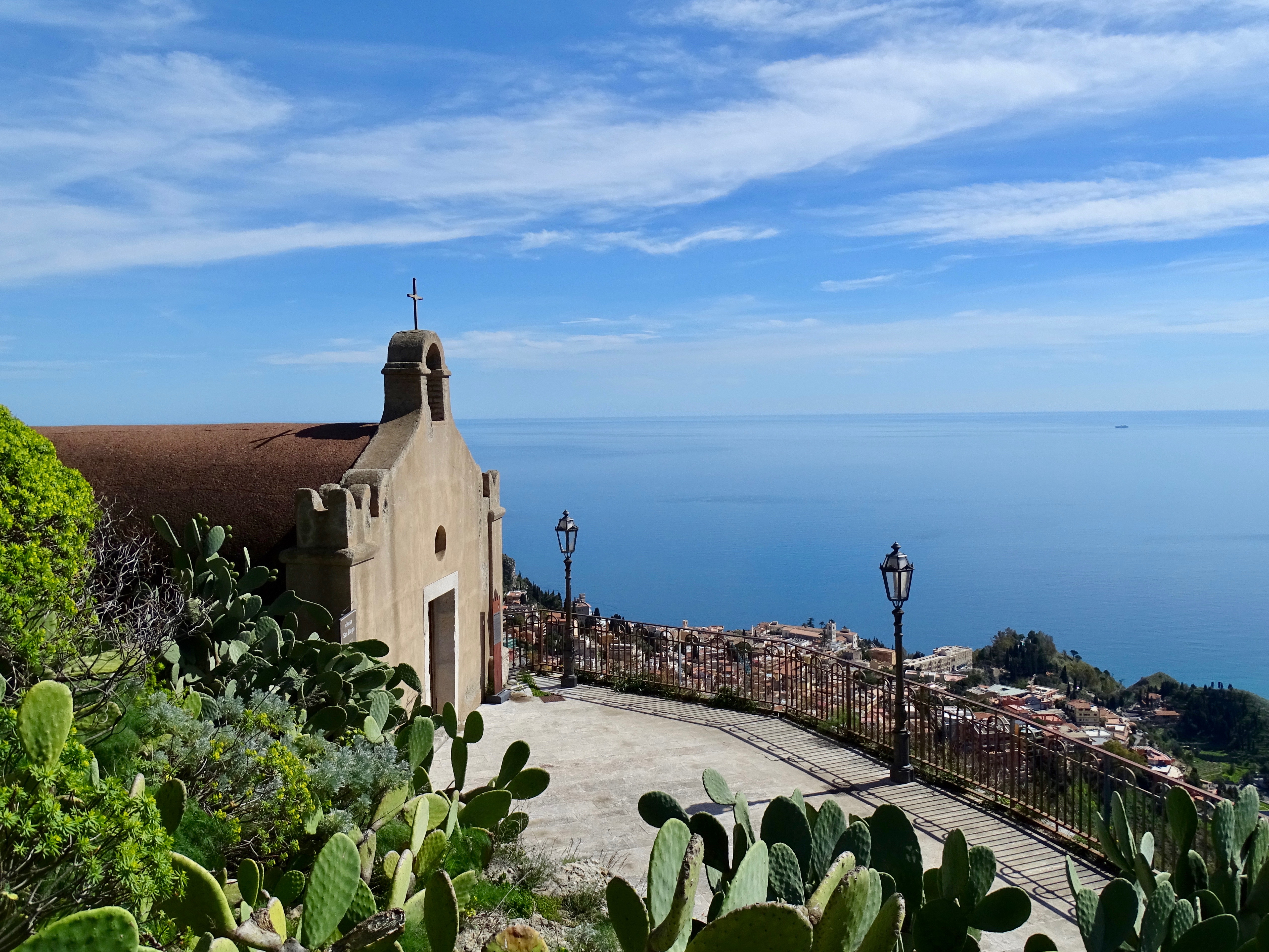 Le Castello Saraceno n’était pas accessible car risque d’effondrement de pierres mais la Chiesa Madonna della Rocca au sommet, surplombant Taormina, la mer et face à l’Etna était super mignonne et bien méritée après toutes ces marches… et quelle vue !