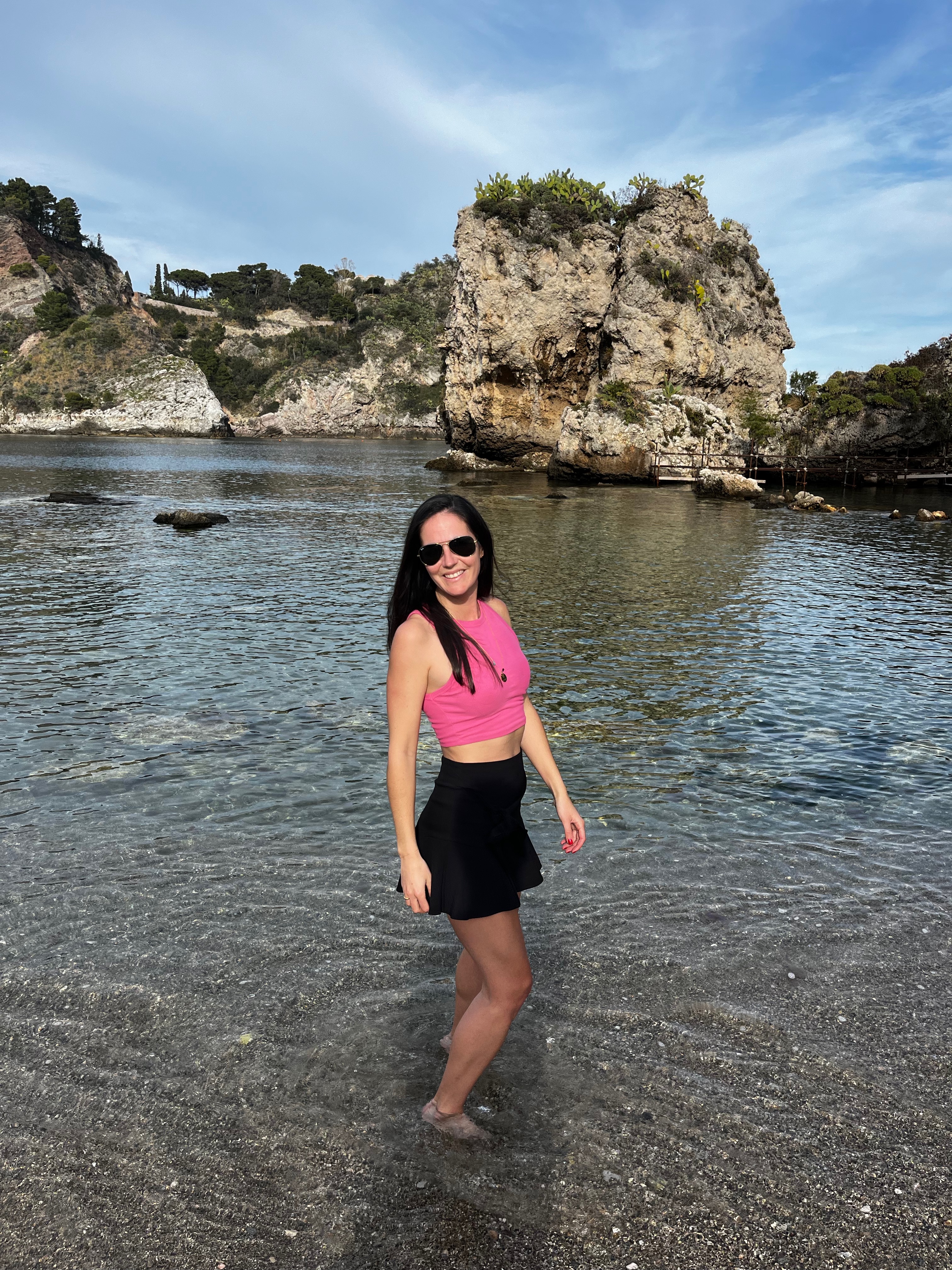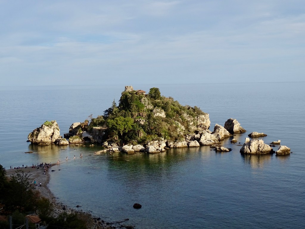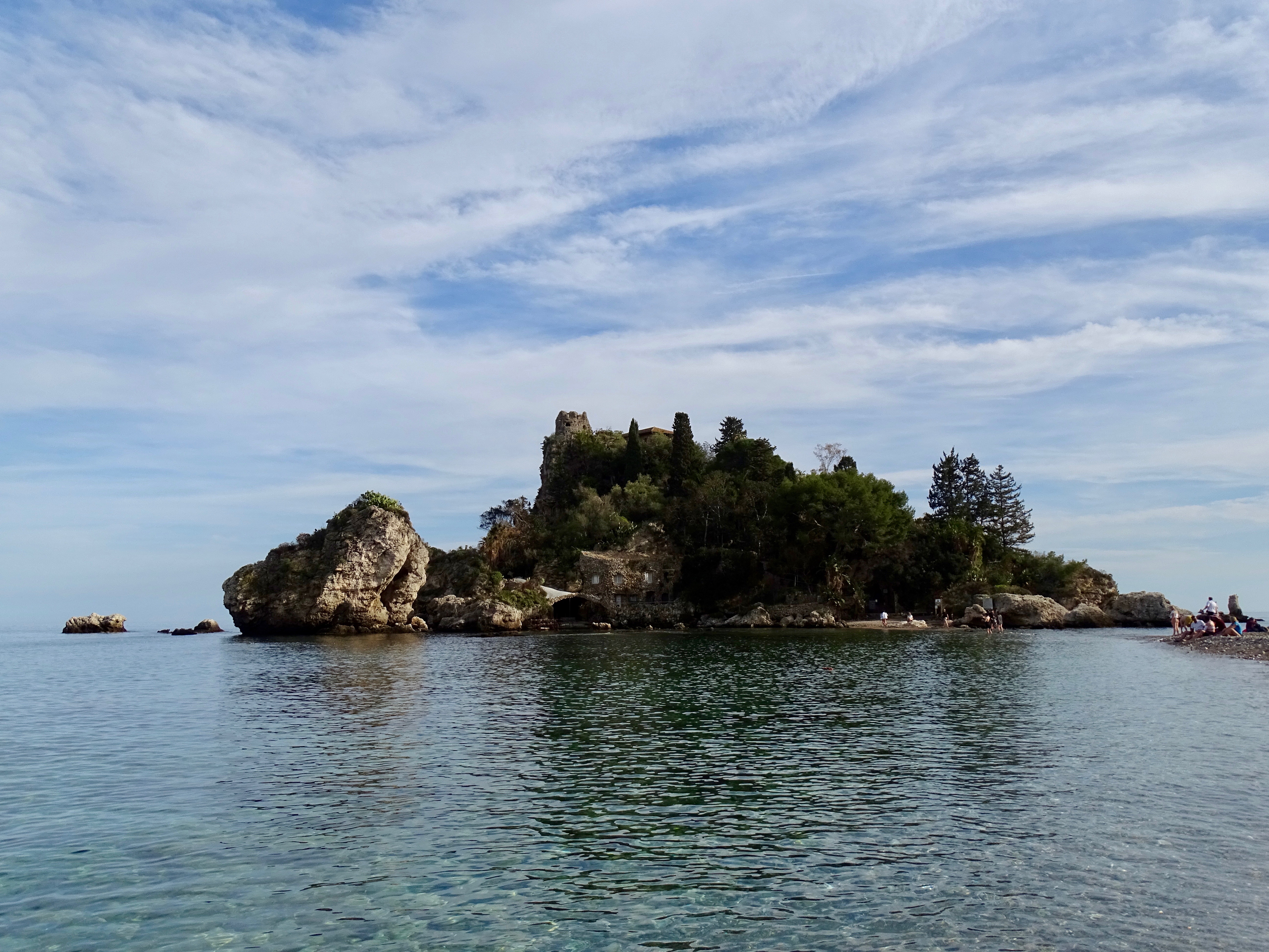 Reprise de la voiture : direction Isola Bella, petite île en bas de Taormina, accessible à pied (l’eau aux genoux) et sublime. Encore une fois, nous étions seuls. Il est possible de visiter l’île mais là c’était fermé.