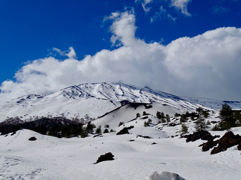 D’abord le versant nord : la montée était incroyable avec, progressivement, de la neige, des arbres et de la lave pour finir par la vue sur l’Etna.