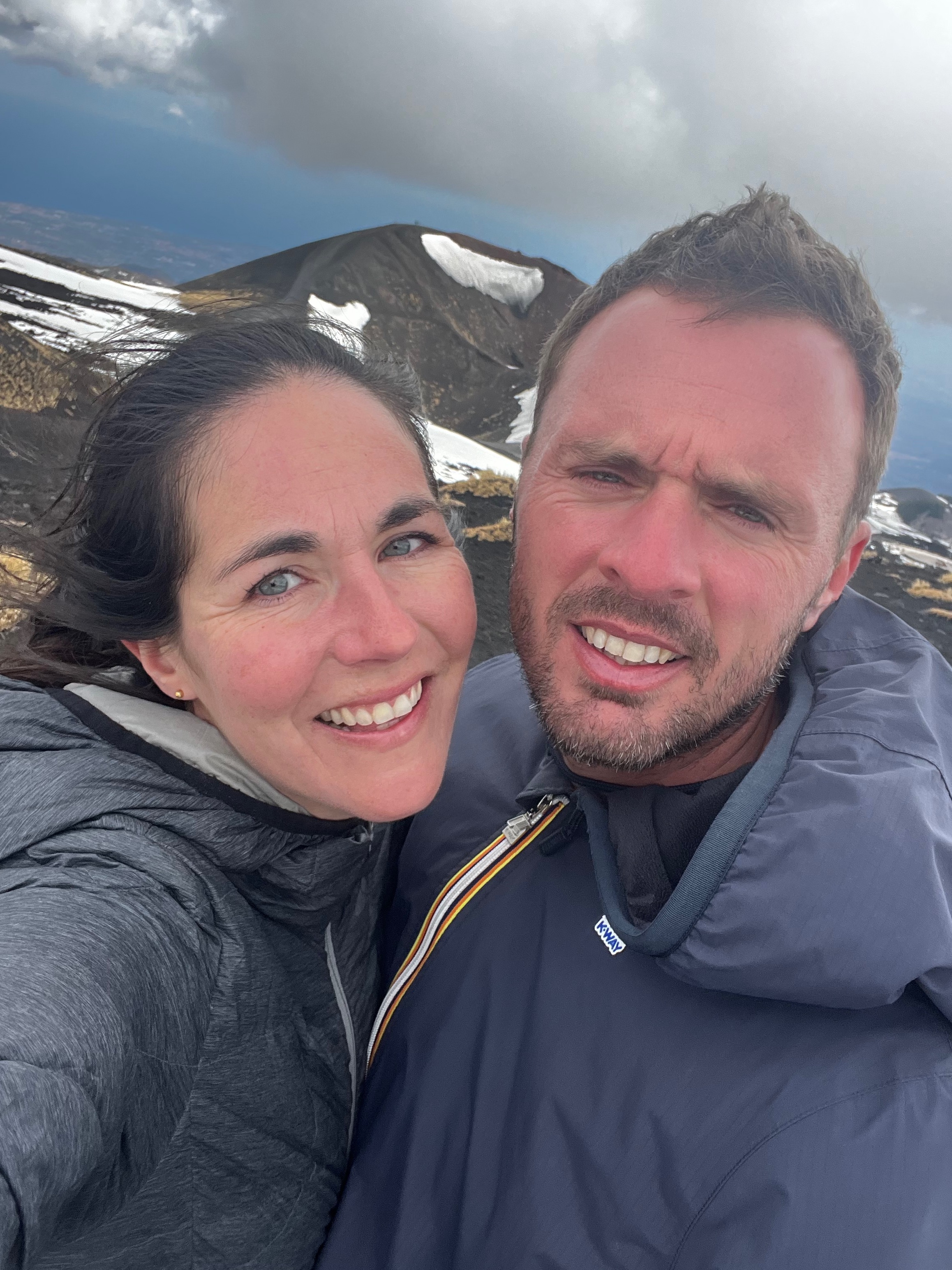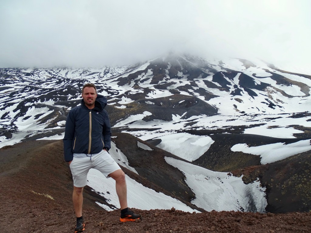 C’était extraordinaire de se retrouver sur un volcan avec de la neige ! Du jamais vu pour nous… on se serait cru dans un autre monde avec au loin, la mer.