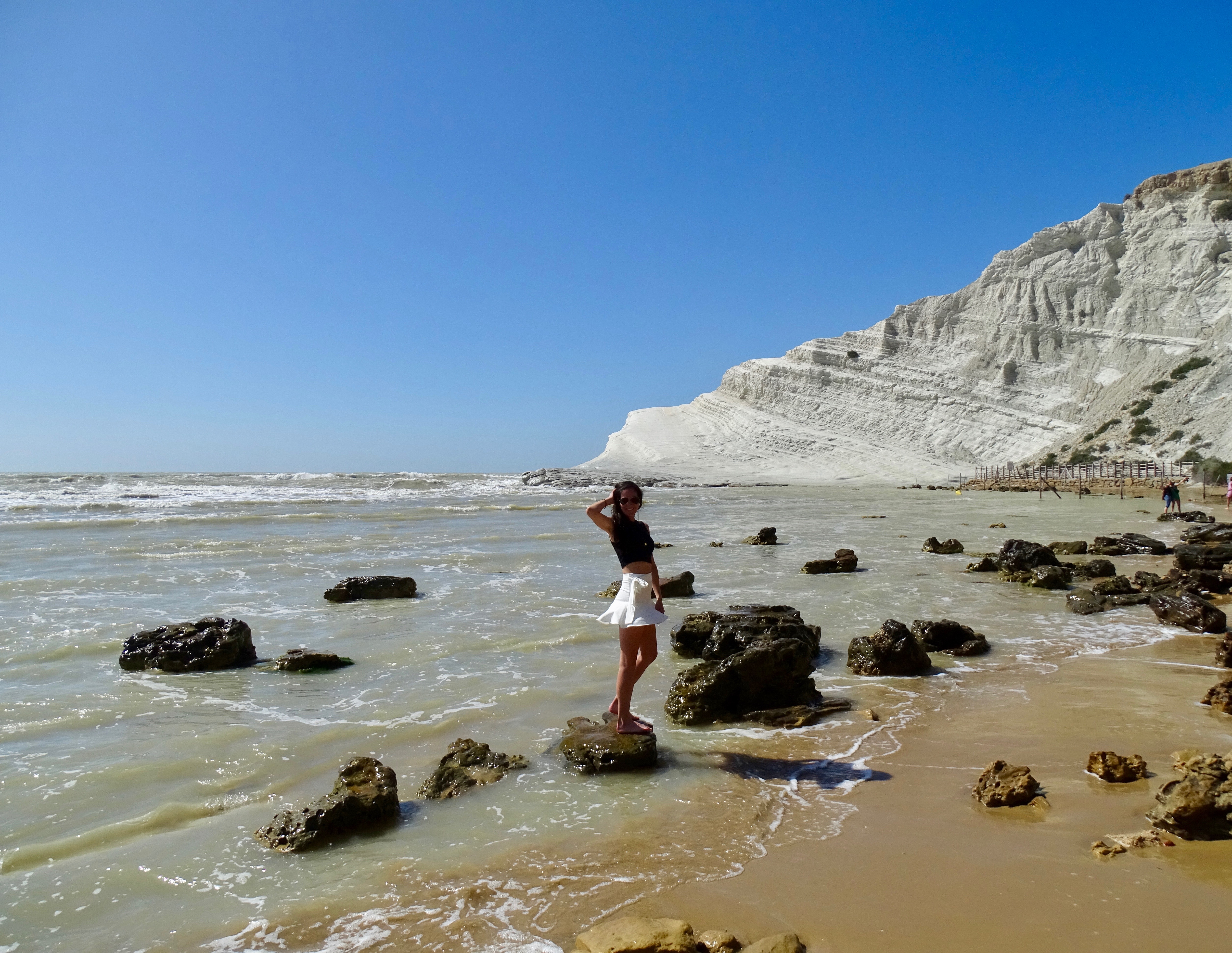 Puis direction Scala dei Turchi par une route qui longeait la mer : c’est une plage où se trouve une roche blanche, en escalier.
