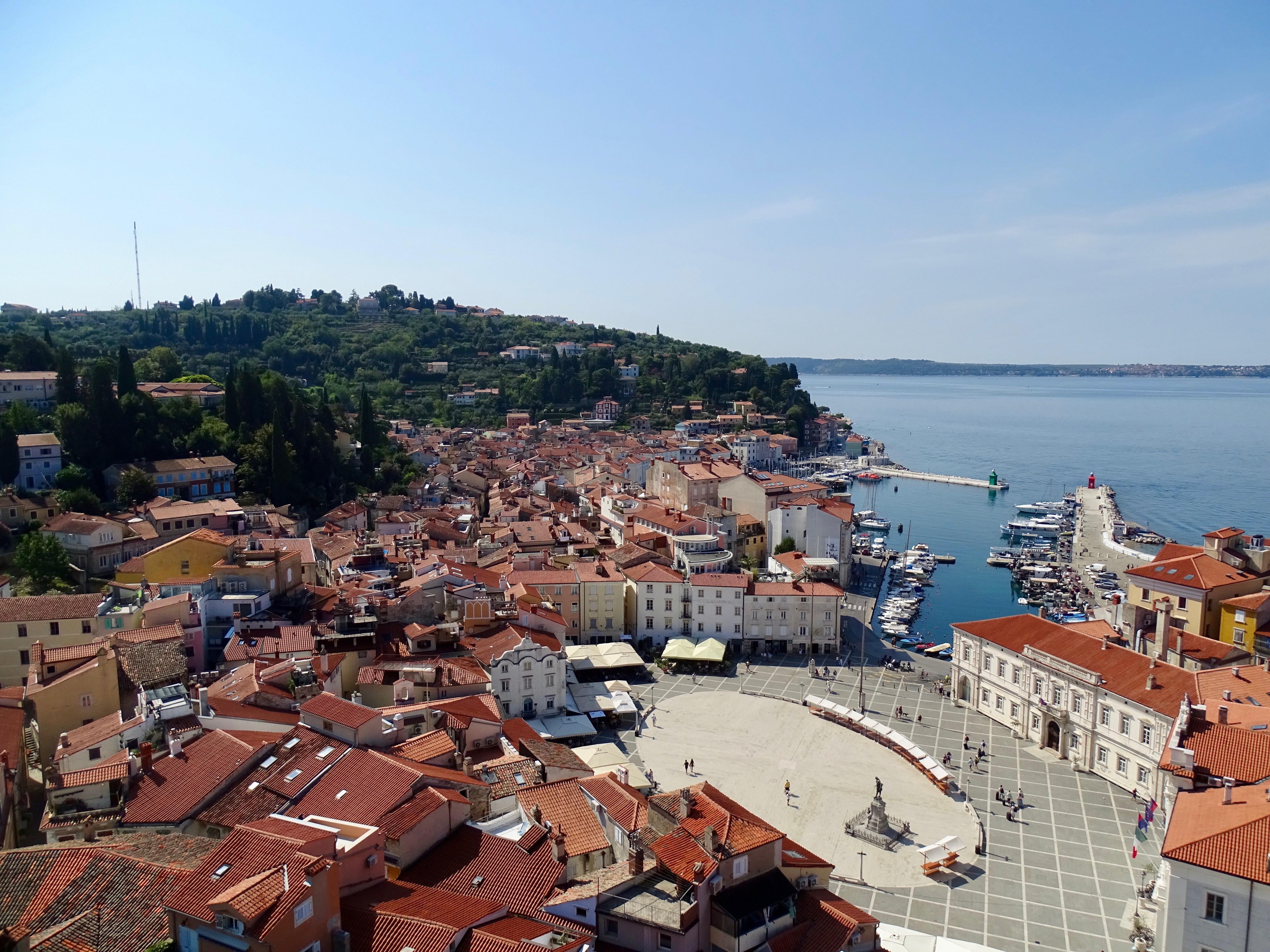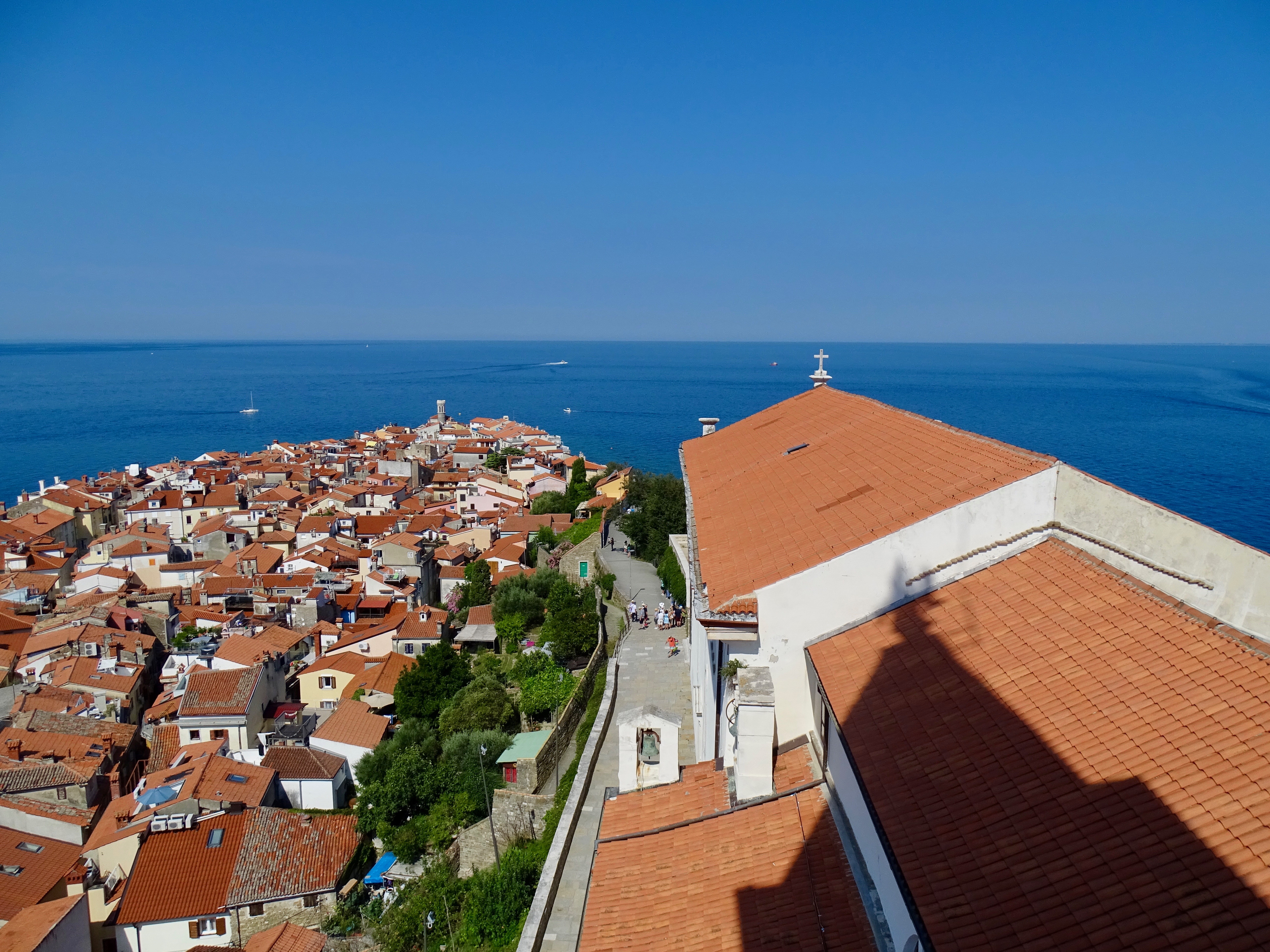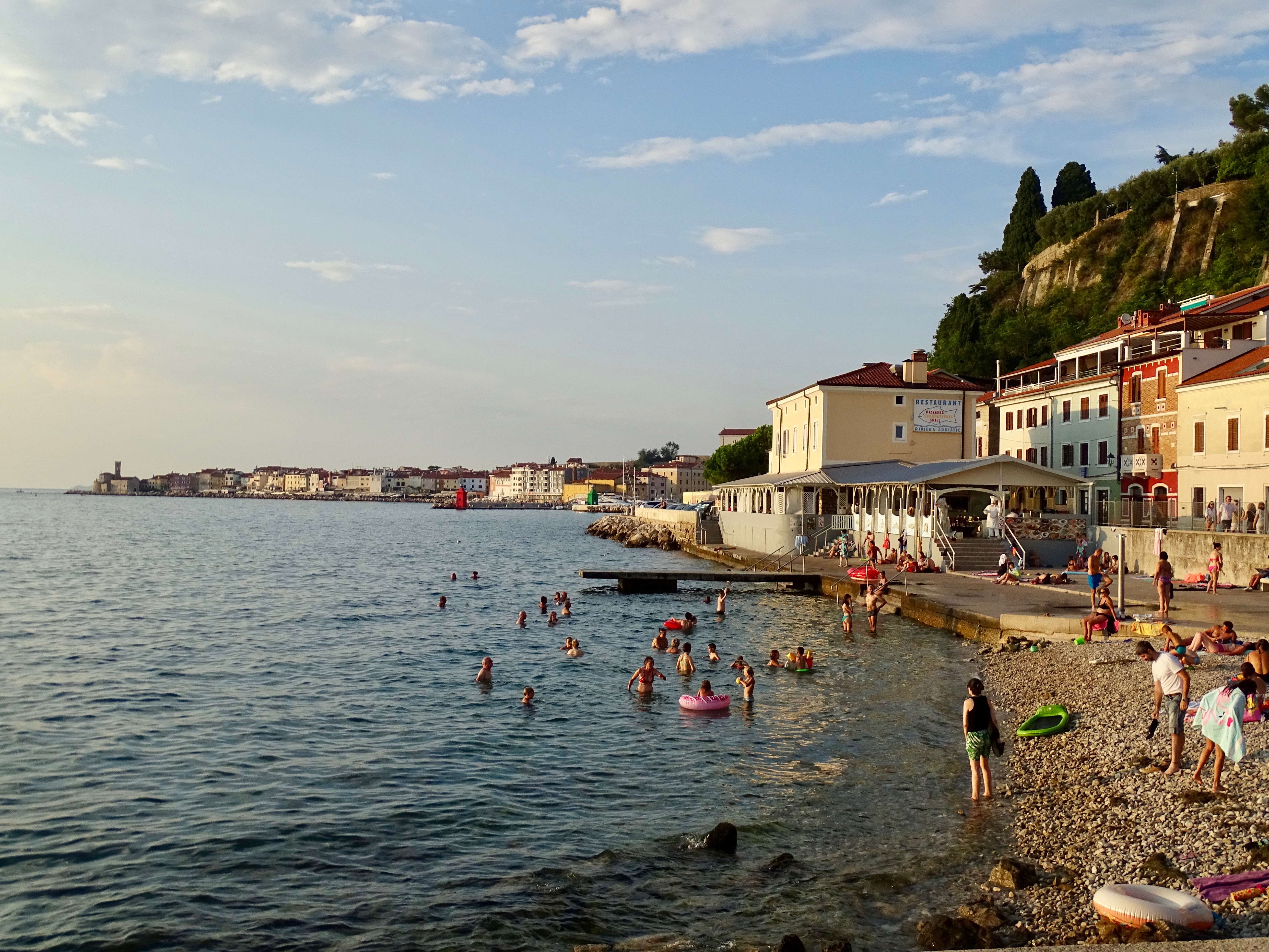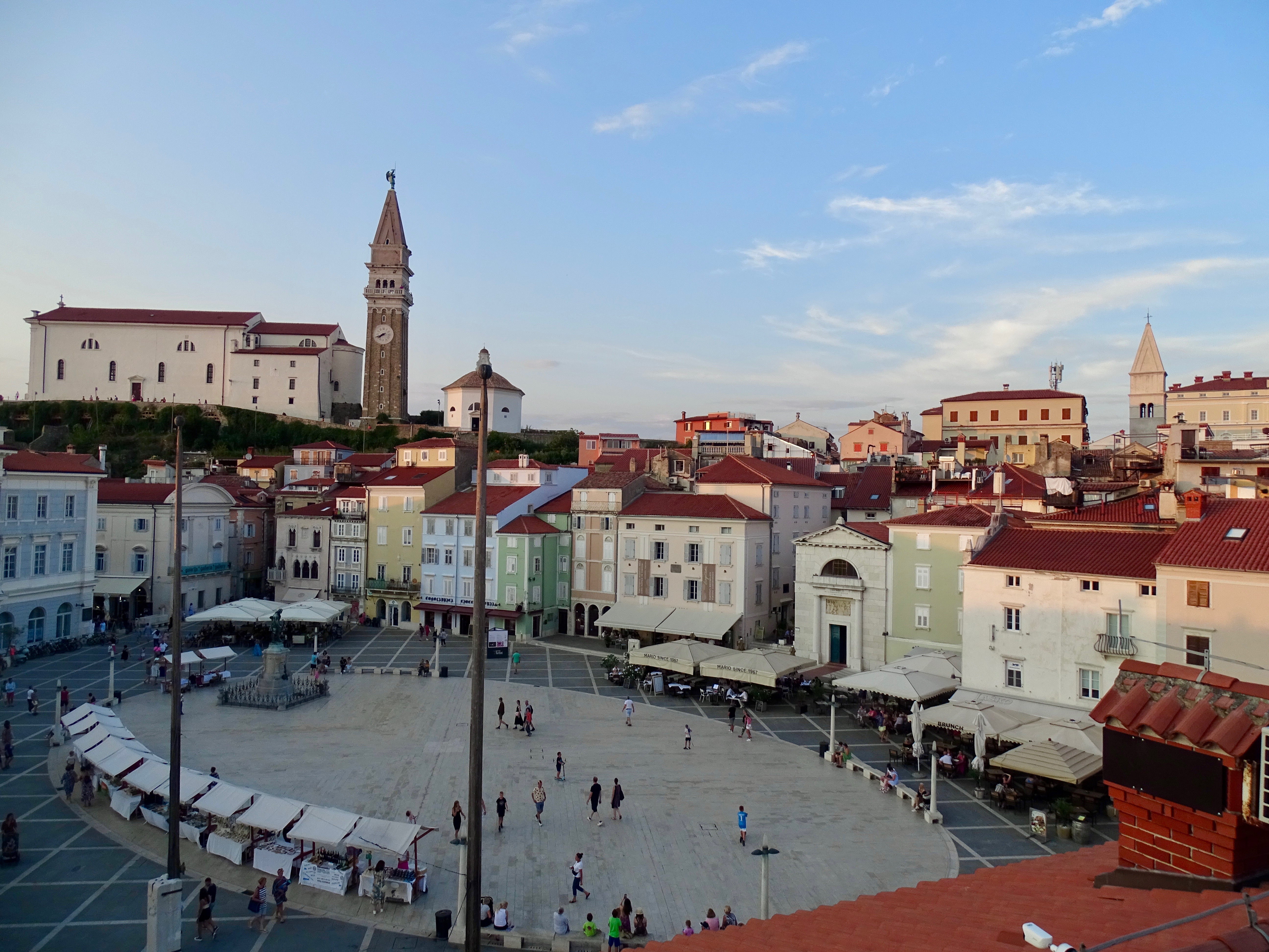 Après une longue journée de route (venant d’Embrun), nous arrivons en Slovénie, à Piran, sous la chaleur…