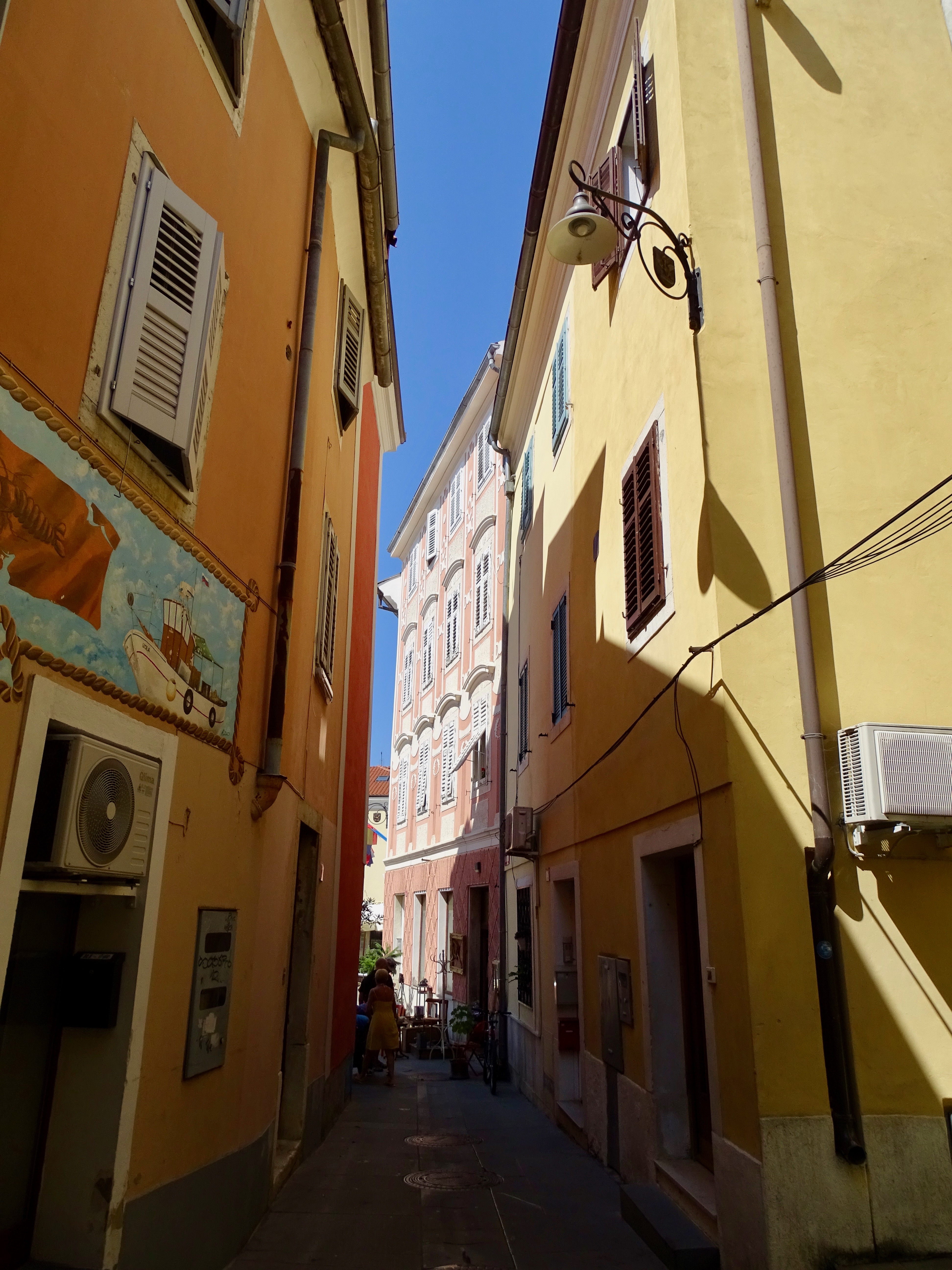 Descente sur Izola, bien moins touristique que Piran et très charmante, avec son église, ses ruelles, son port… moins charmante pour sa chaleur !