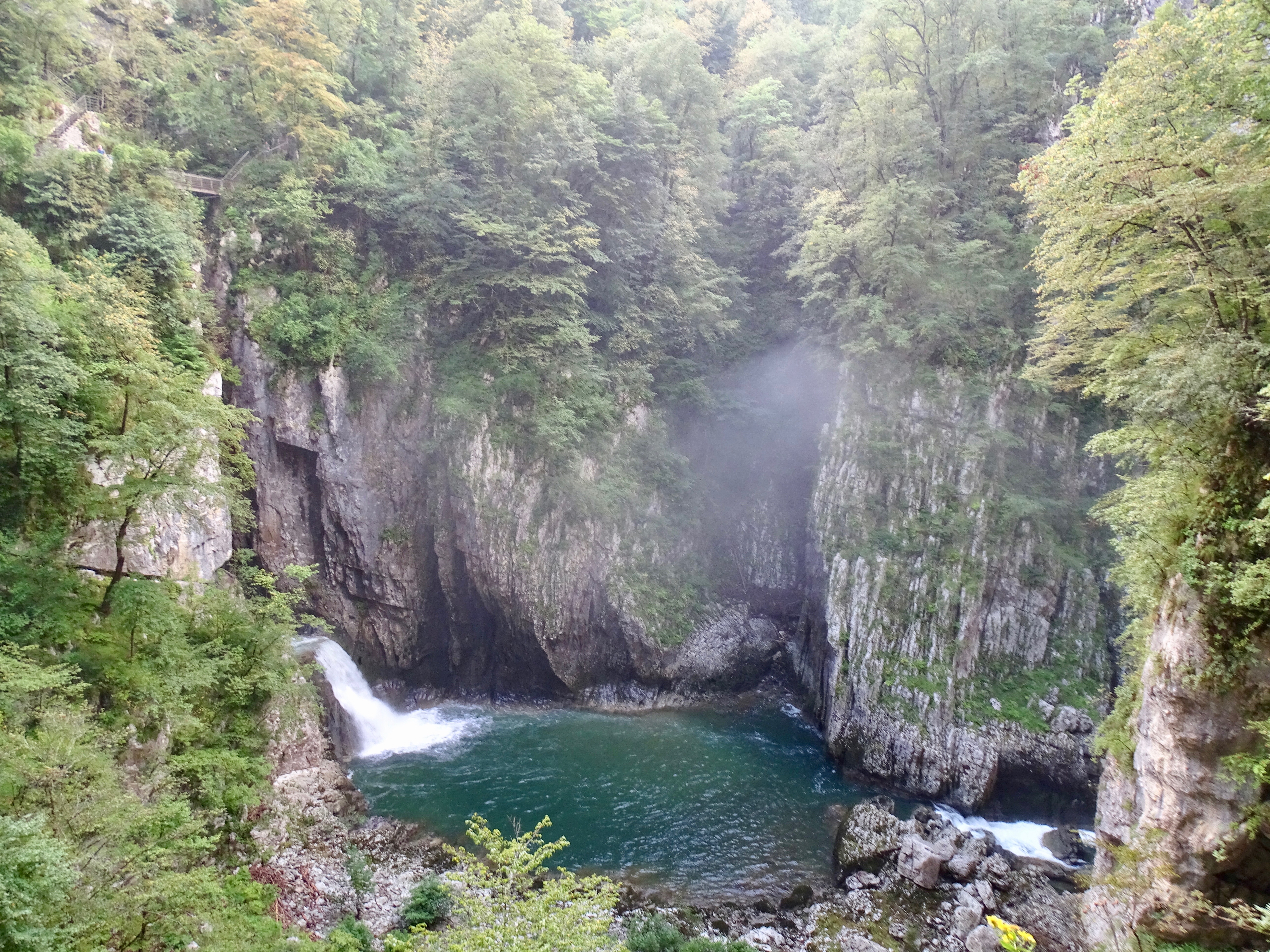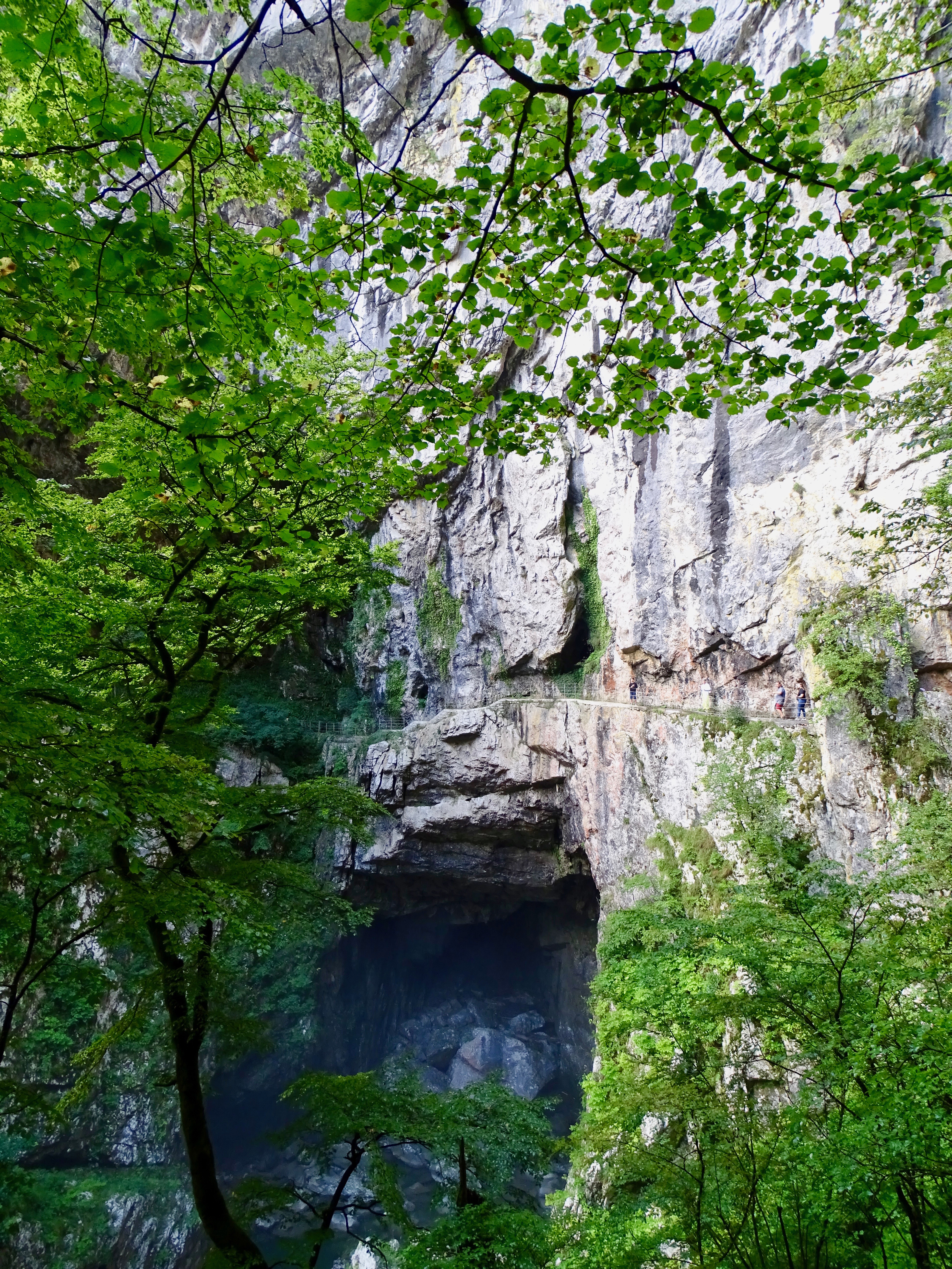 En début d’après-midi, direction la Grotte de Skocjan et, en arrivant, un énorme orage. Avant notre visite, petite balade jusqu’à un belvédère. C’était sublime, avec la cascade au loin et une église.