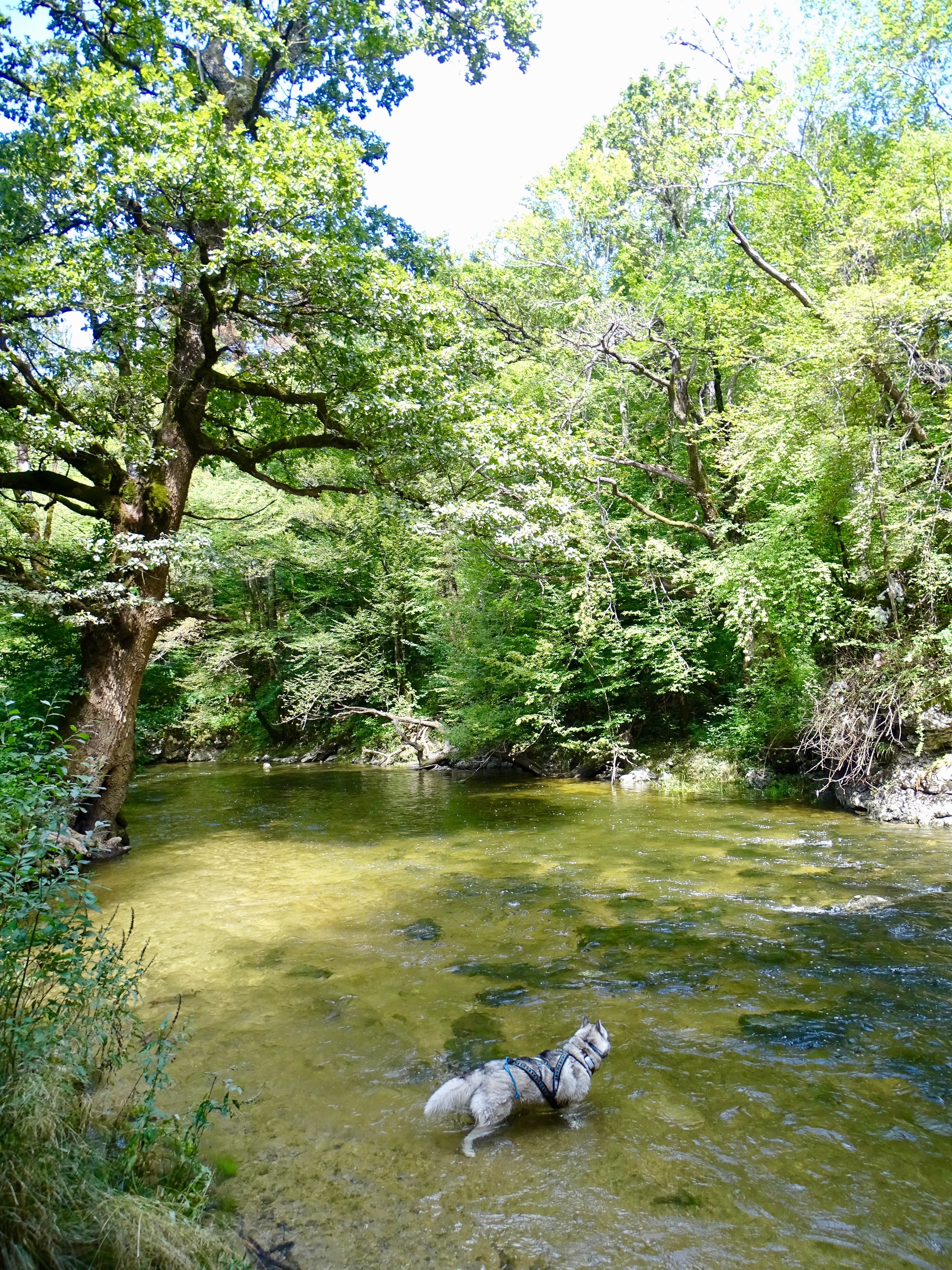 On s’est garé pour une rando le long de la rivière, tellement beau et on a pu détacher Roxie, trop heureuse.