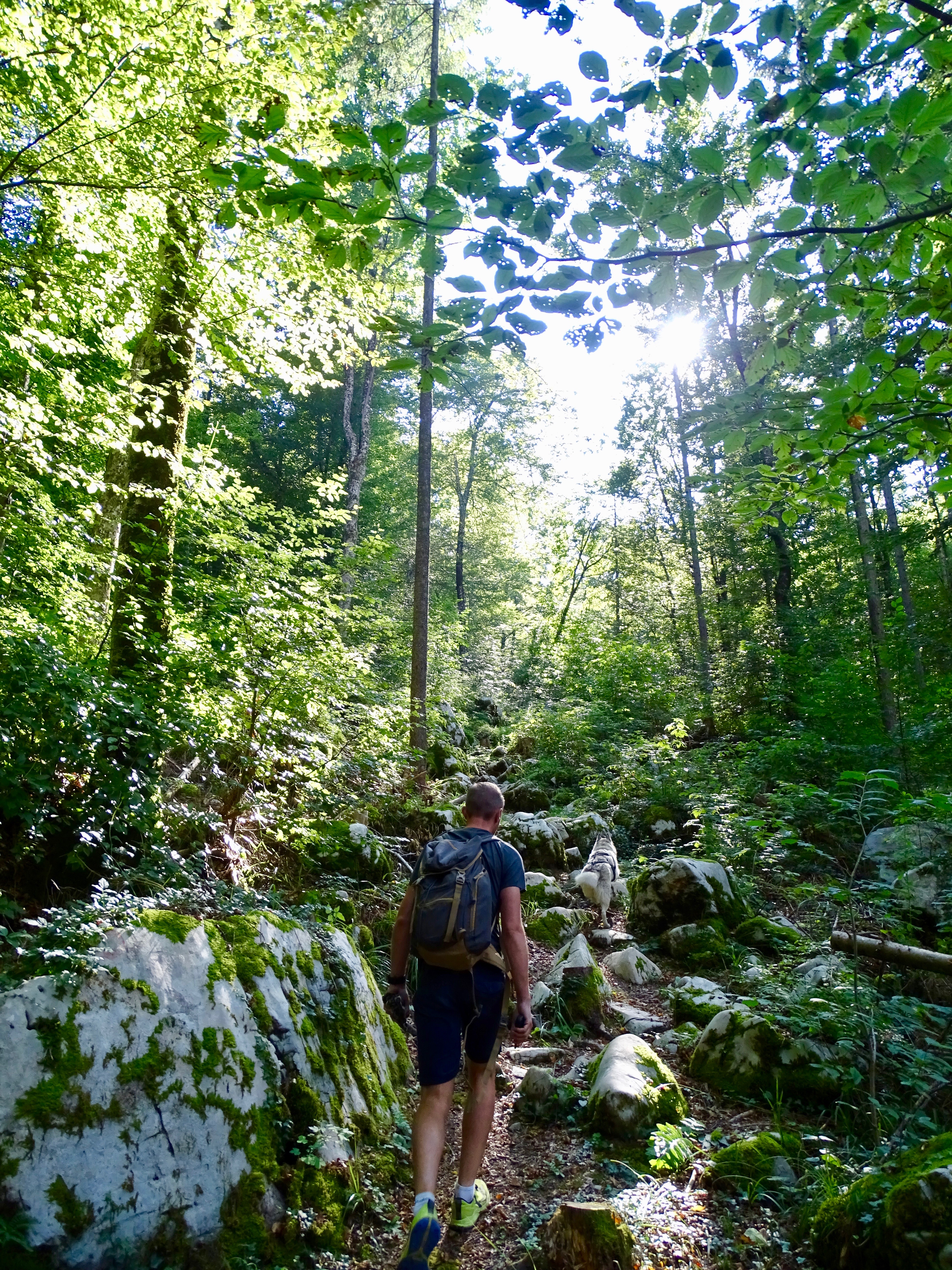 Direction la grotte de Krizna : nous nous enfoncions dans la forêt. Cette région est très peu fréquentée, ce que nous apprécions. C’était très nature et verdoyant, on a adoré. C’est aussi la région de Loz (vallée de la Loz) où se trouve la fameuse grotte.