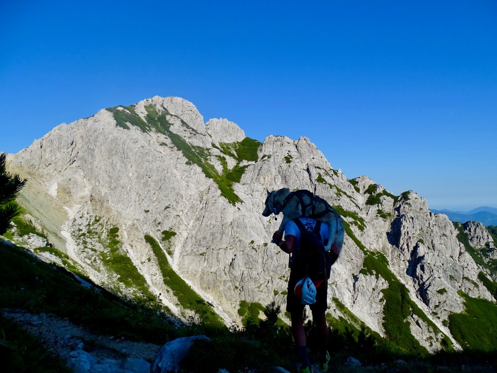 J’ai fait du stop seule pour aller récupérer la voiture à Trenta, seule car le stop à deux + un chien c’est galère… J’ai été prise direct en 30 secondes, Guilhem ne m’a même pas vue partir. Une famille autrichienne m’a donc déposée à la voiture et ils m’ont demandé quelques conseils sur les environs (Guide du Routard bonjour haha).