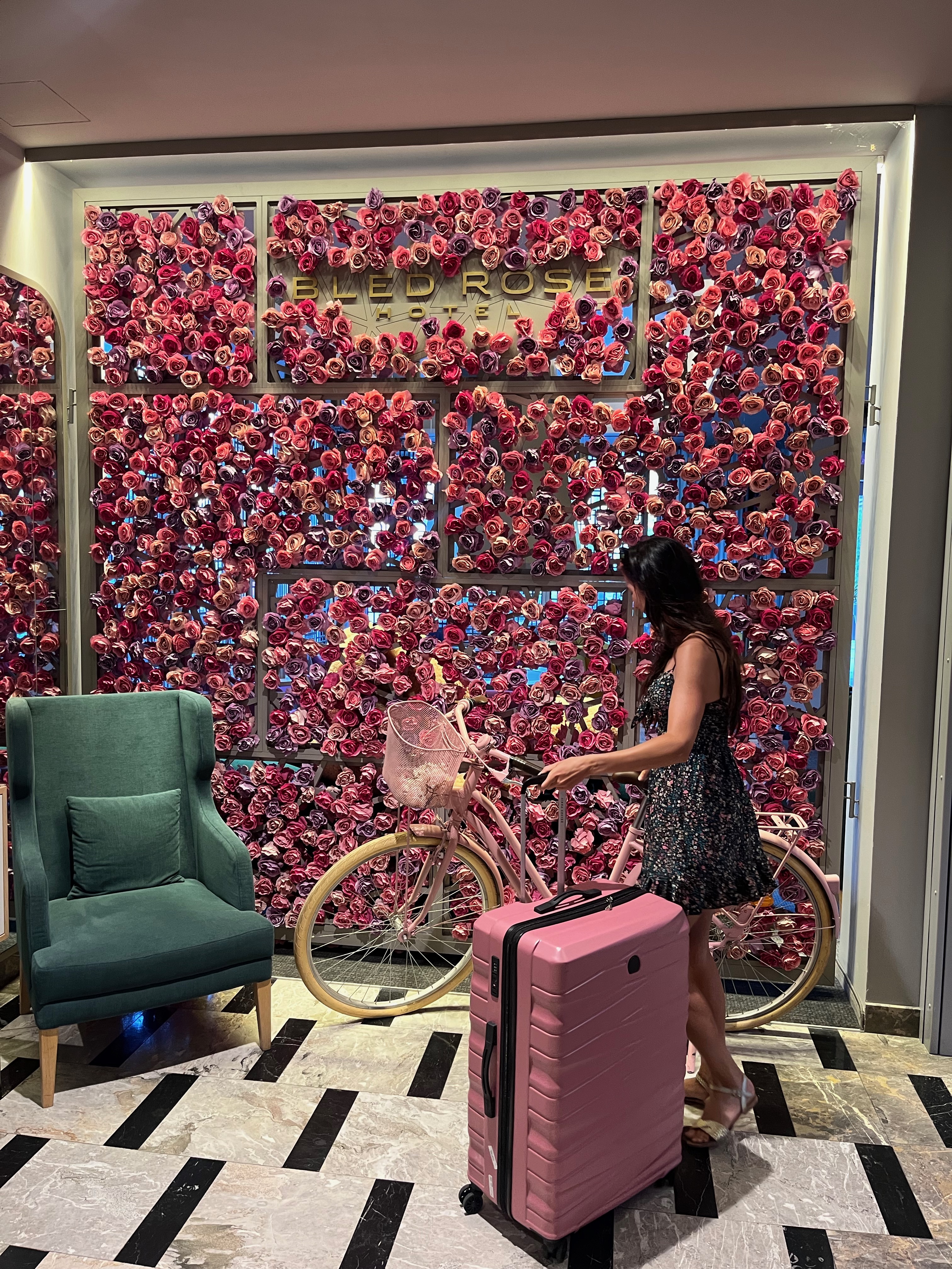 Arrivés à Bled au Rose Bled Hôtel et, comme son nom l’indique, la déco est rose, j’étais trop contente !