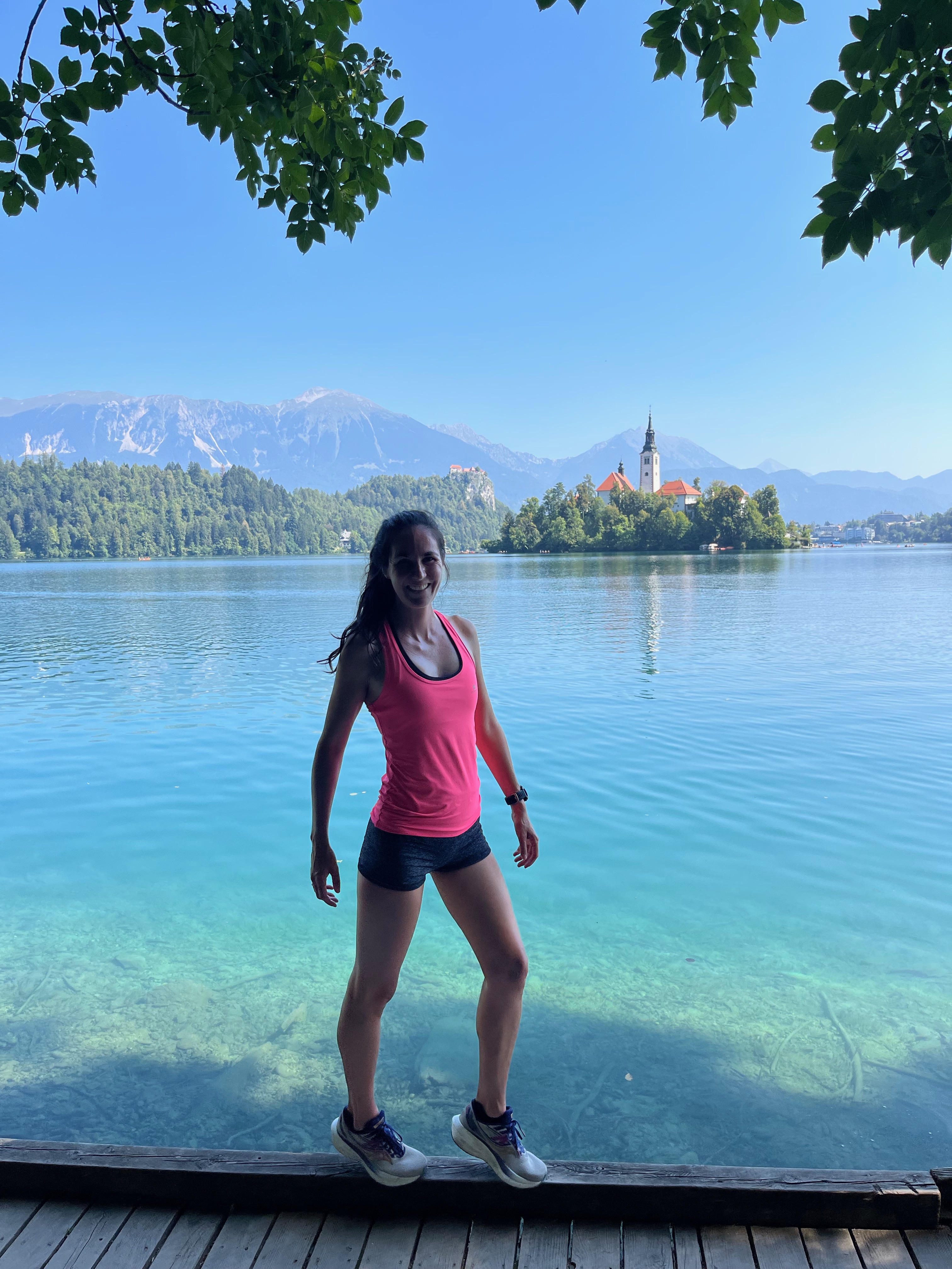 Nous avons fait notre 1er run (et unique) en Slovénie autour du lac de Bled, c’était super. J’ai trouvé une ressemblance avec les Bouches de Kotor au Monténégro. La boucle fait 6 km et nous avons rallongé un peu en AR.