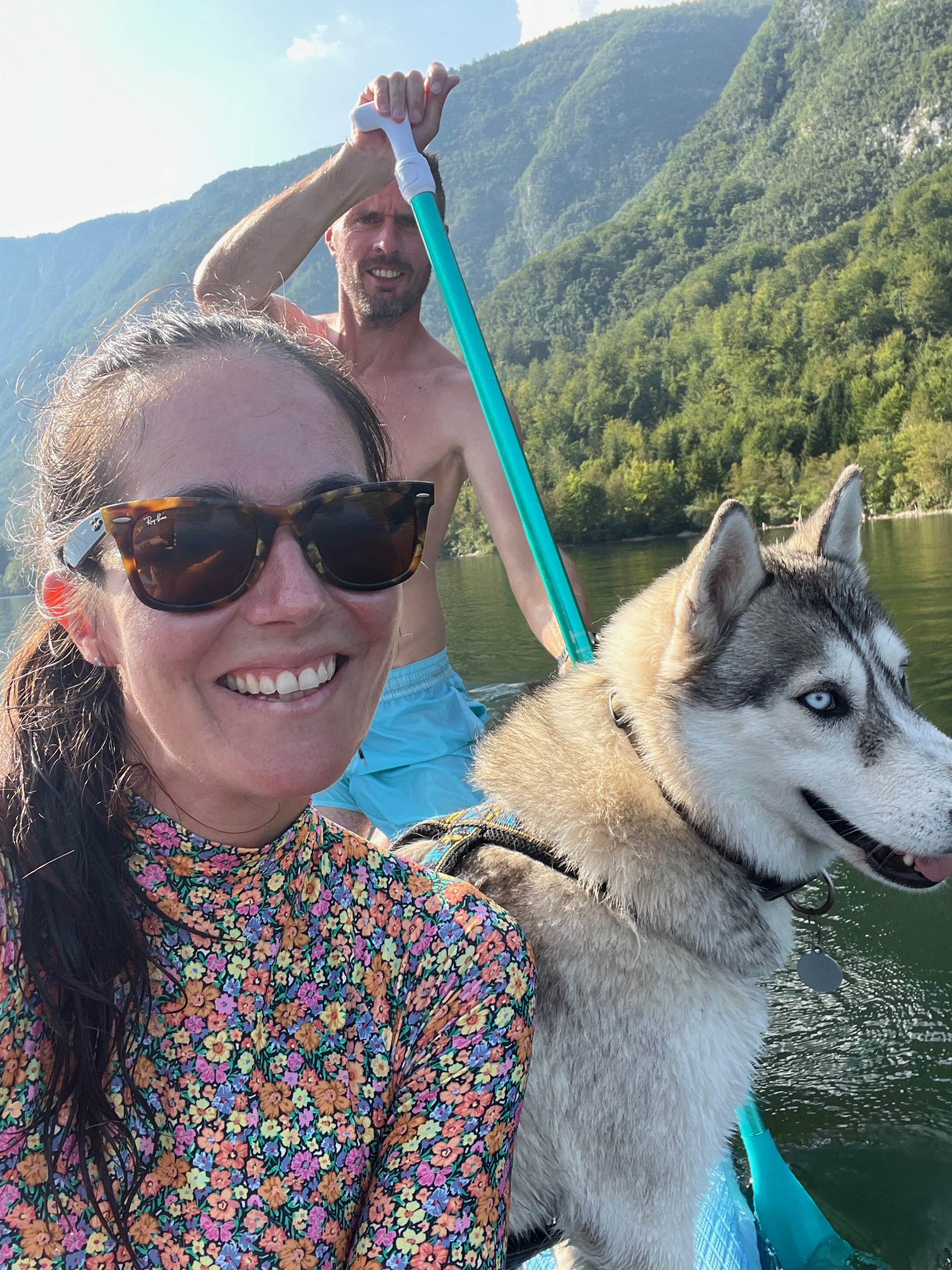 Puis au lieu de faire le tour du lac en balade, nous avons pris notre paddle avec Roxie qui est tombée à l’eau avant de monter, elle voulait attraper un canard… et hop, nous avons traversé pour nous rendre sur l’île au centre du lac.