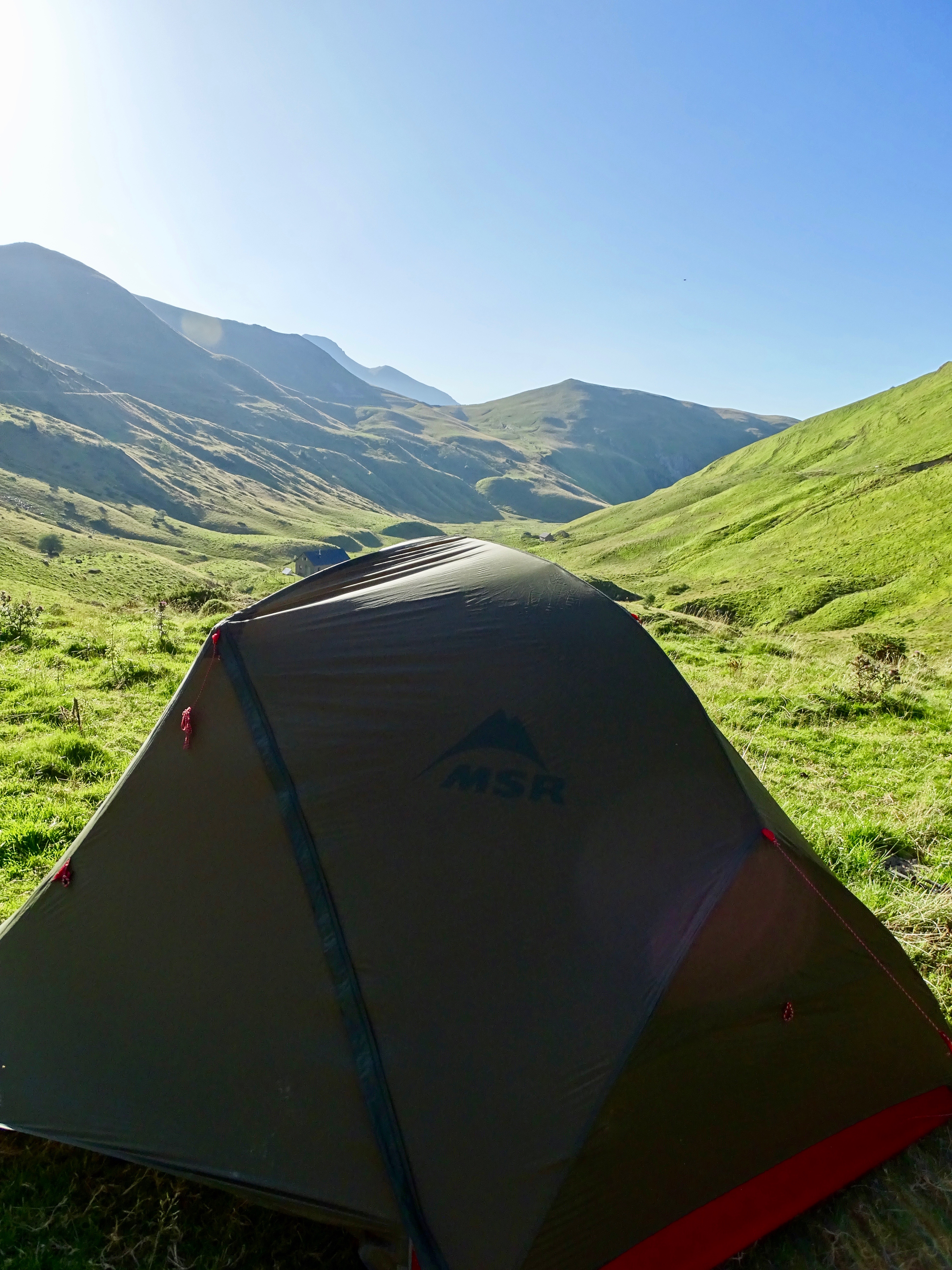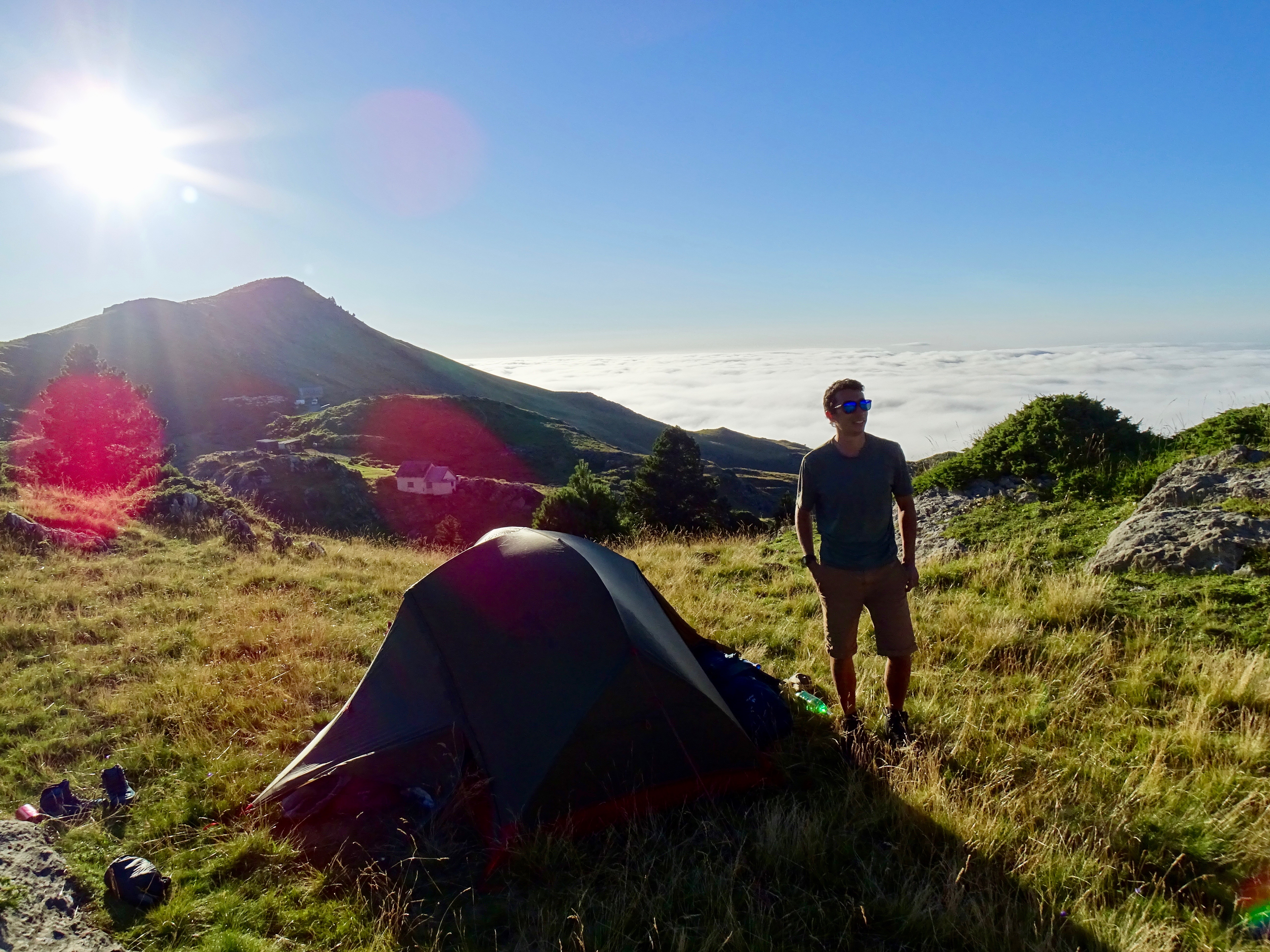 On a un peu galéré à trouver un endroit plat et sans animaux. On est allé bien loin sur le sentier (étant précisé que c’était à l’inverse de la destination du lendemain) et il était déjà plus de 20h.