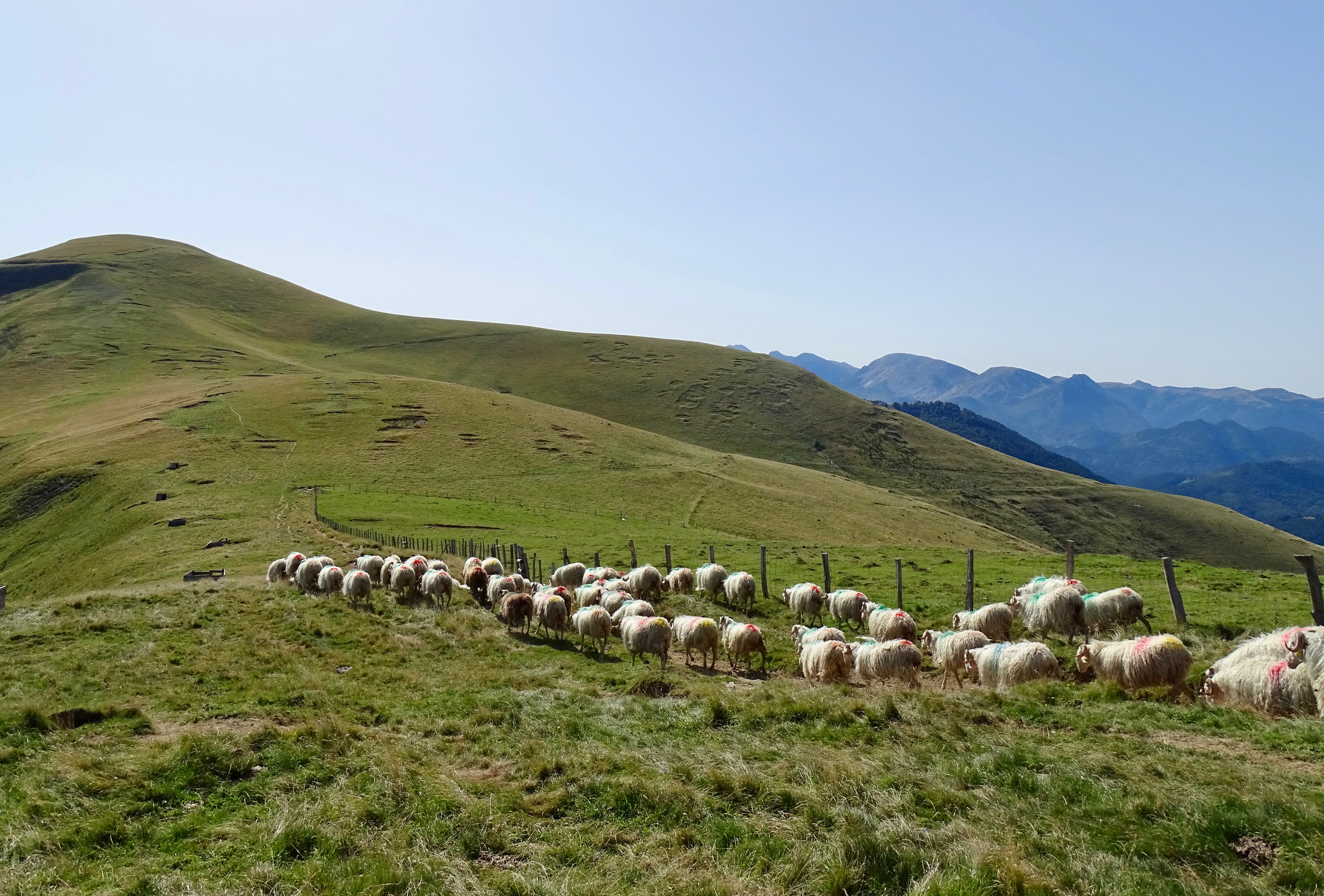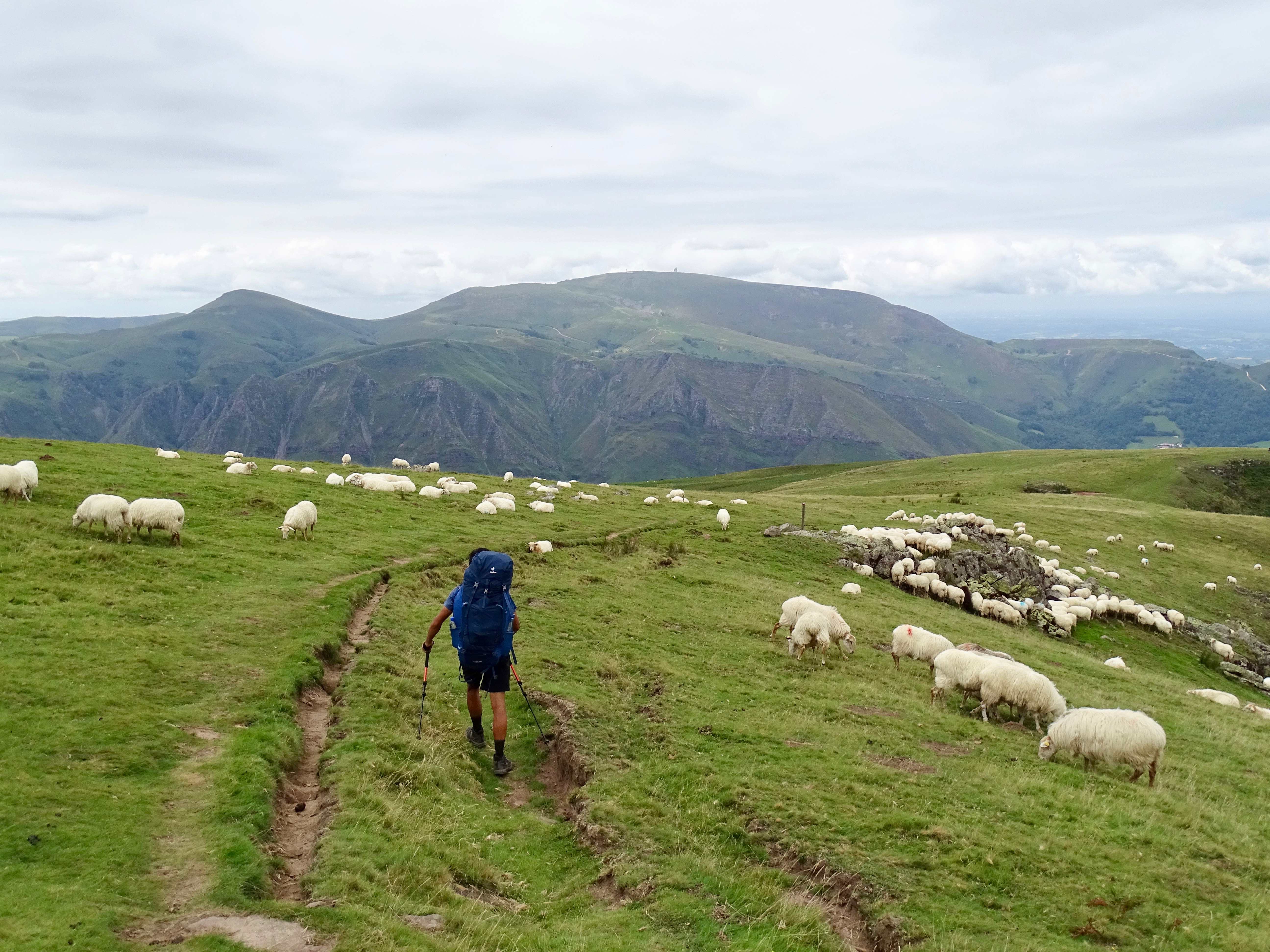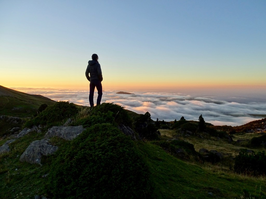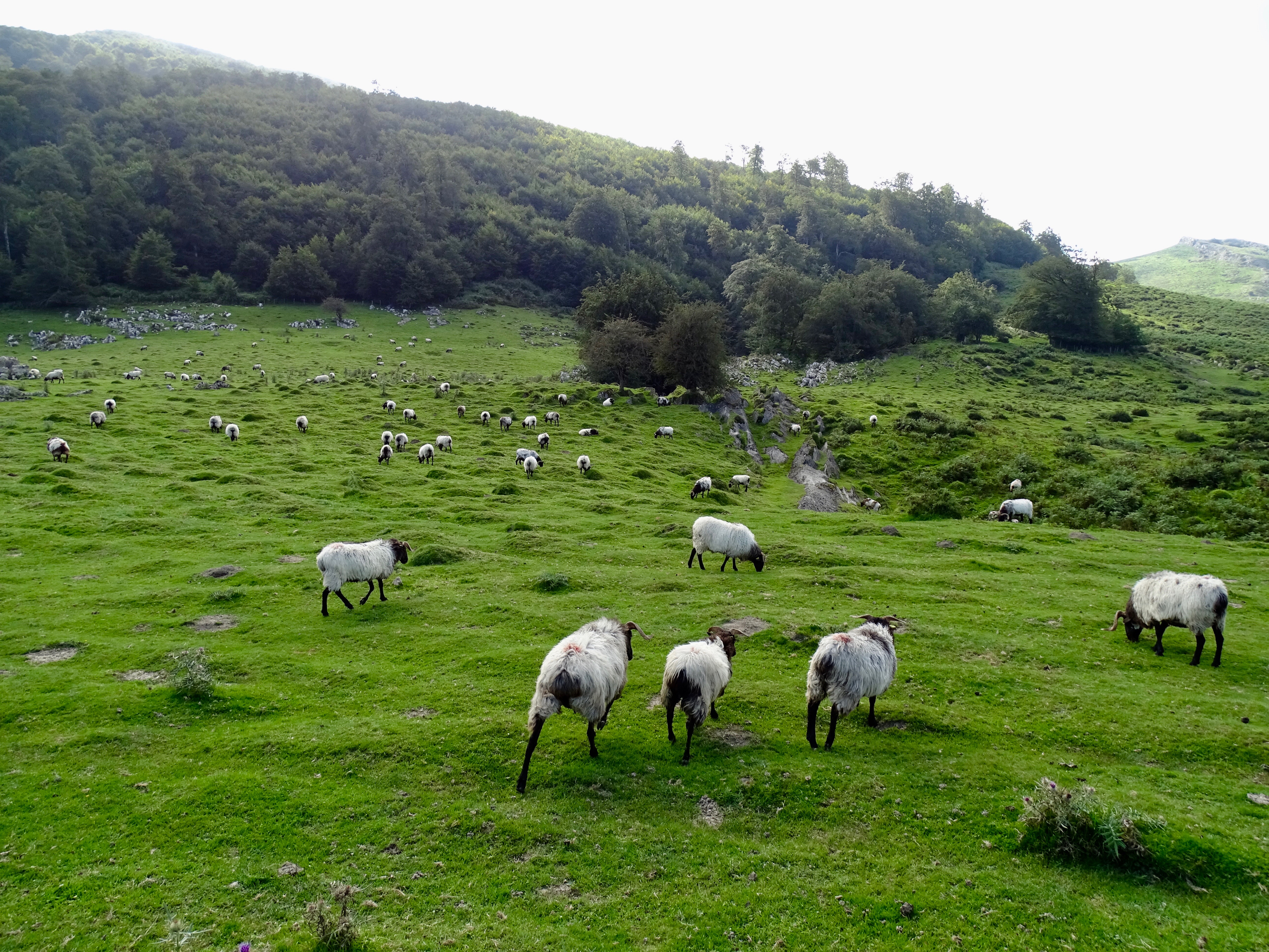 Pas si facile car en arrivant au col, mis à part la vue de folie et la mer de nuage, nous sommes tombés sur un cochon énorme, des troupeaux de vaches et de brebis ! Je dis brebis car nous avons croisé un berger et quand je lui ai dit « mouton », avec son regard noir, il m’a dit (avec son accent basque) « brebis ». Ne pas contrarier un Basque !