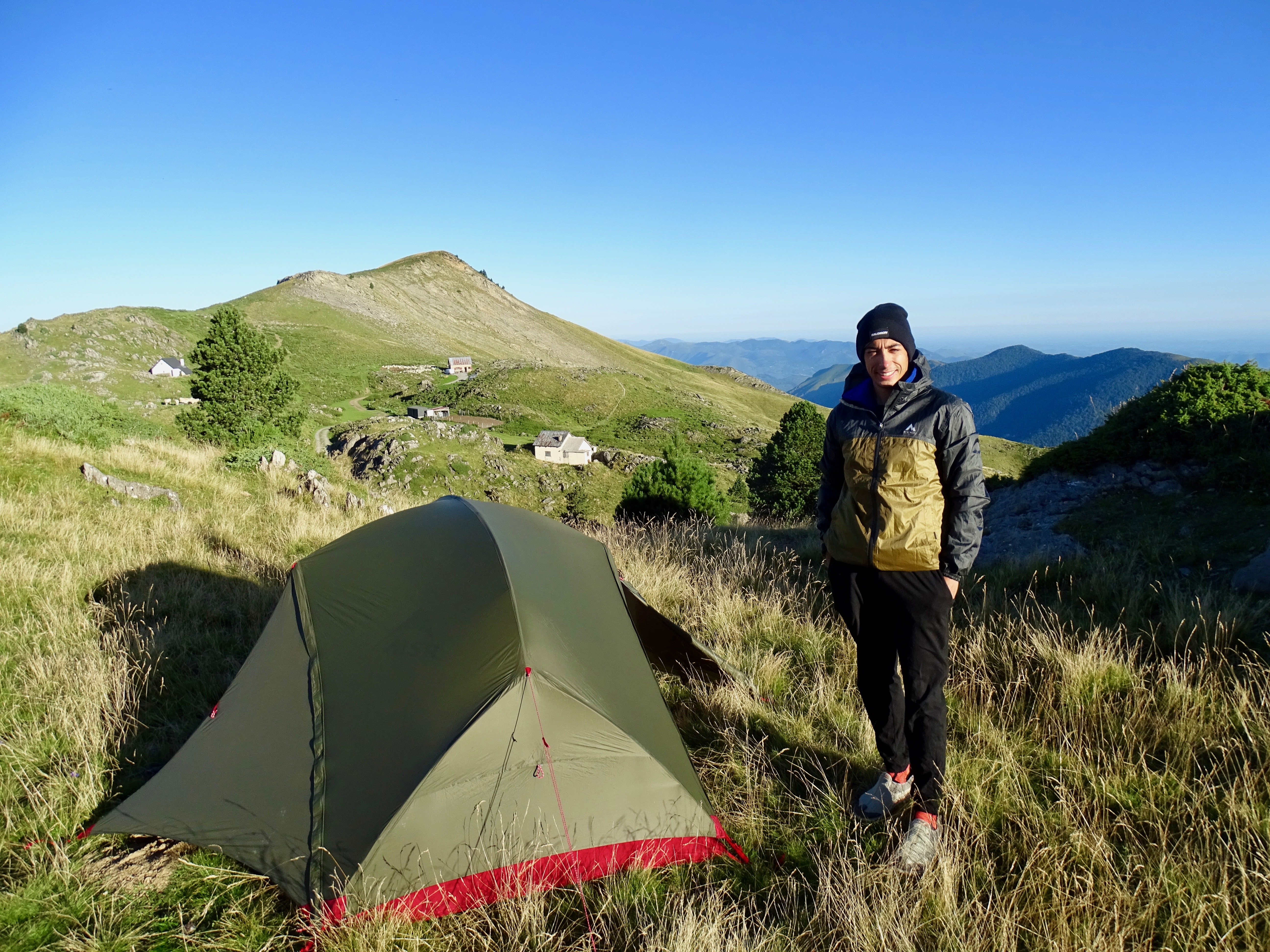 Nous étions devant un centre de colonie de vacances en face d’un ruisseau et entouré de montagnes. On s’est dit que si nous ne trouvions rien d’ici 20min (il était 18h10), on planterait la tente à cet endroit.