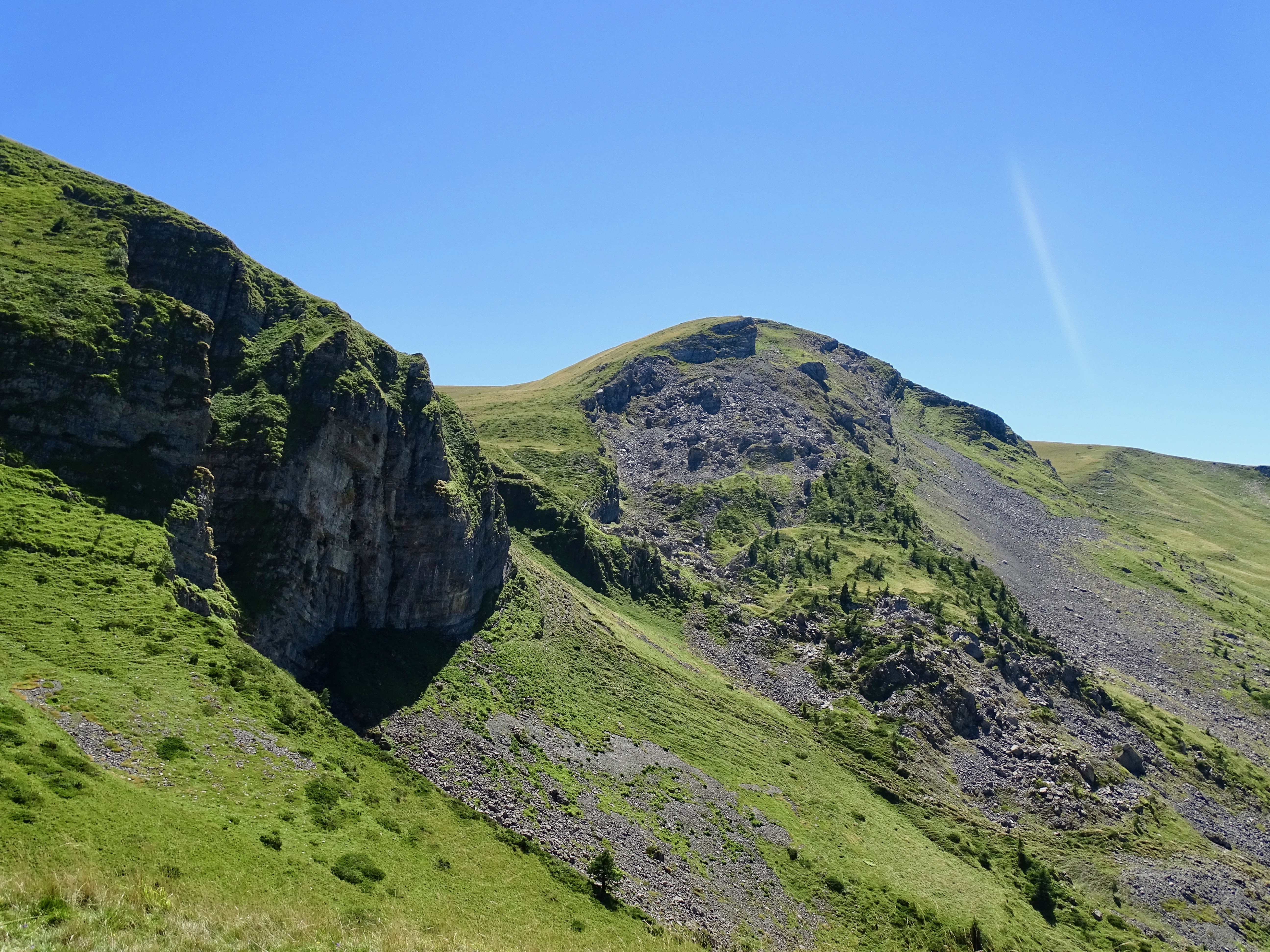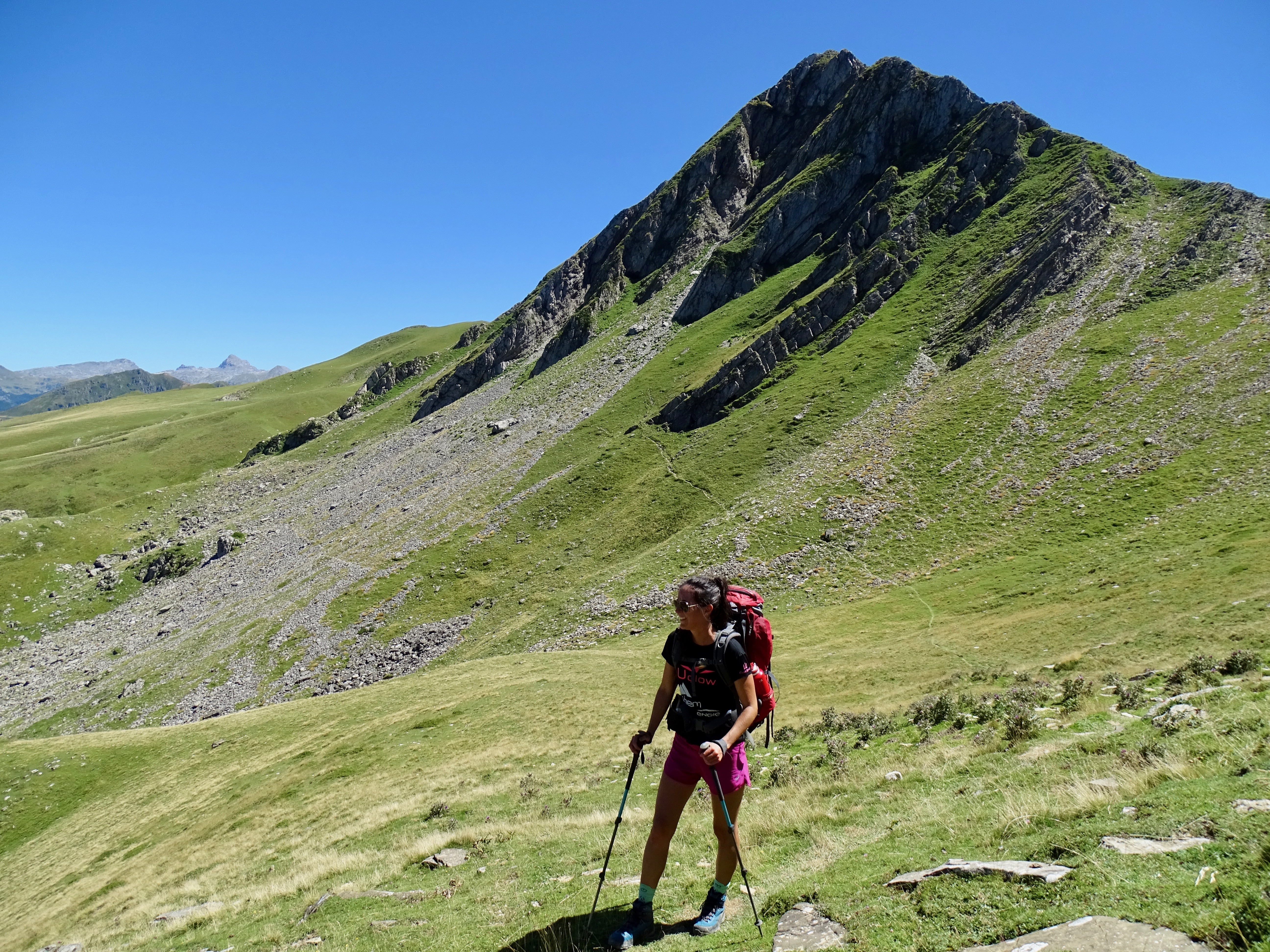 Descente très pentue par la crête d’Alupeyna. Nous avons alors compris le Monsieur (papa bis) qui nous avait dit avoir galéré pour monter le pic et, franchement, je pense que c’était plus difficile par ce versant.