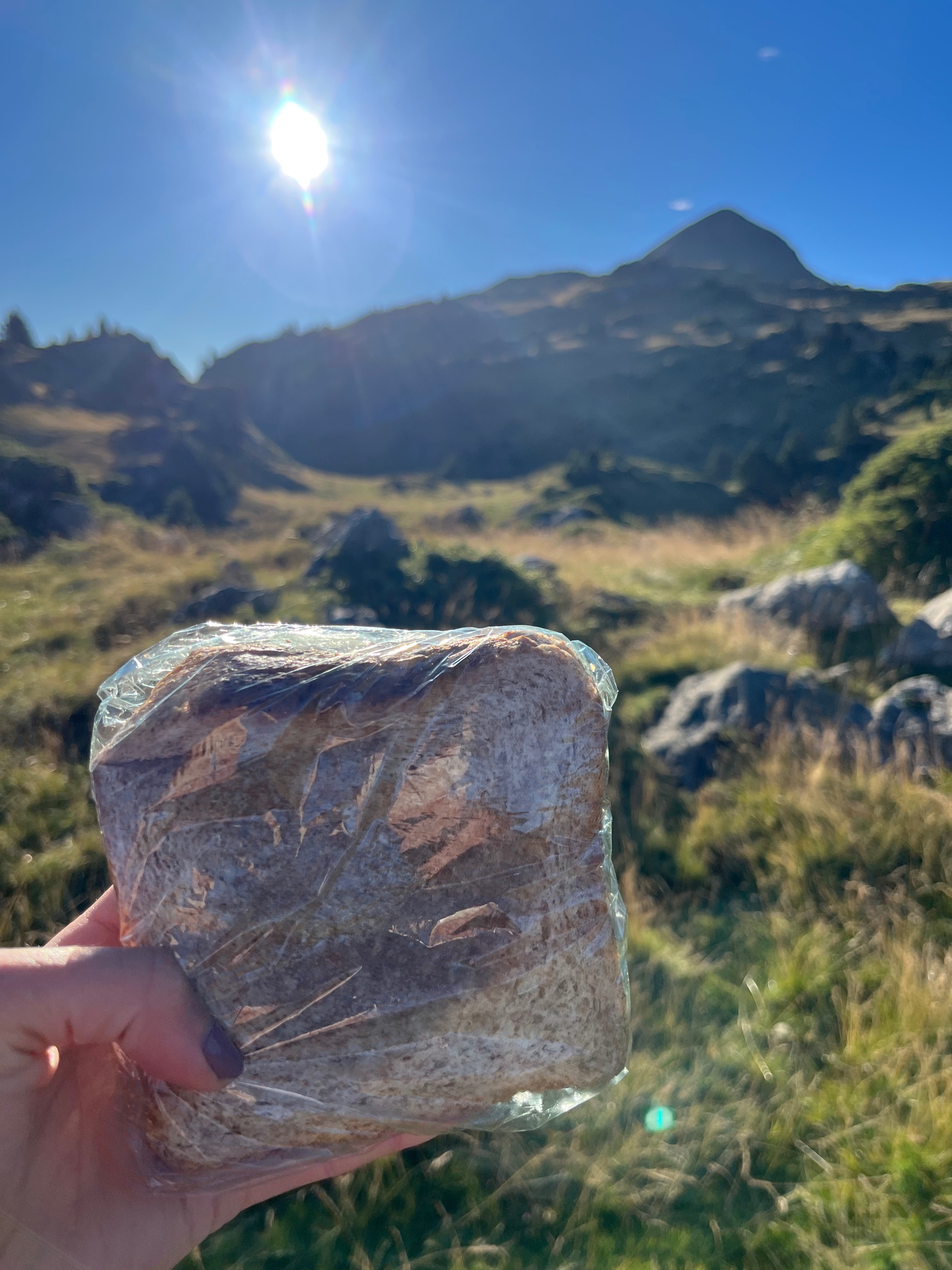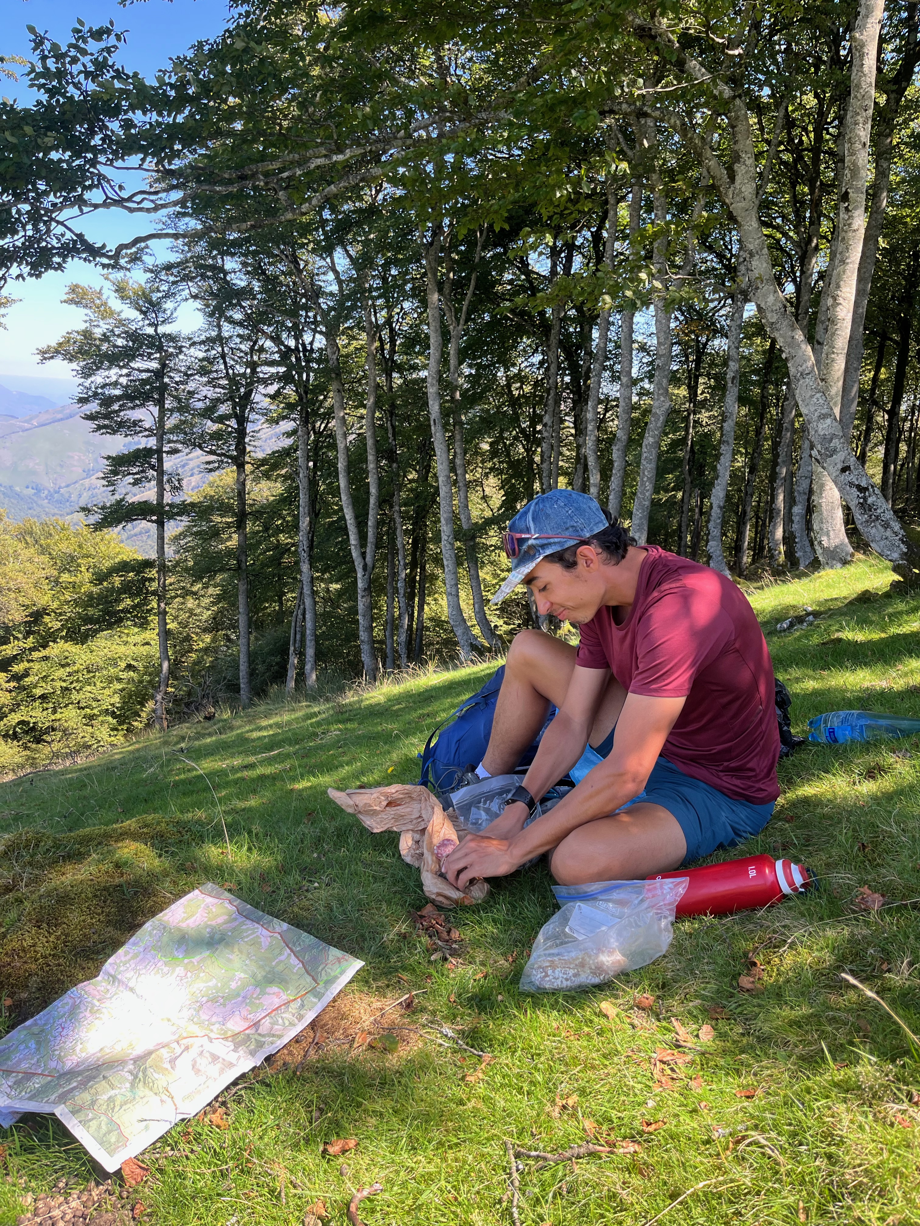 Nous sommes descendus un peu pour pique-niquer, nous avions 2 gros pains en plus de l’épicerie d’Iraty, donc on pouvait festoyer haha.