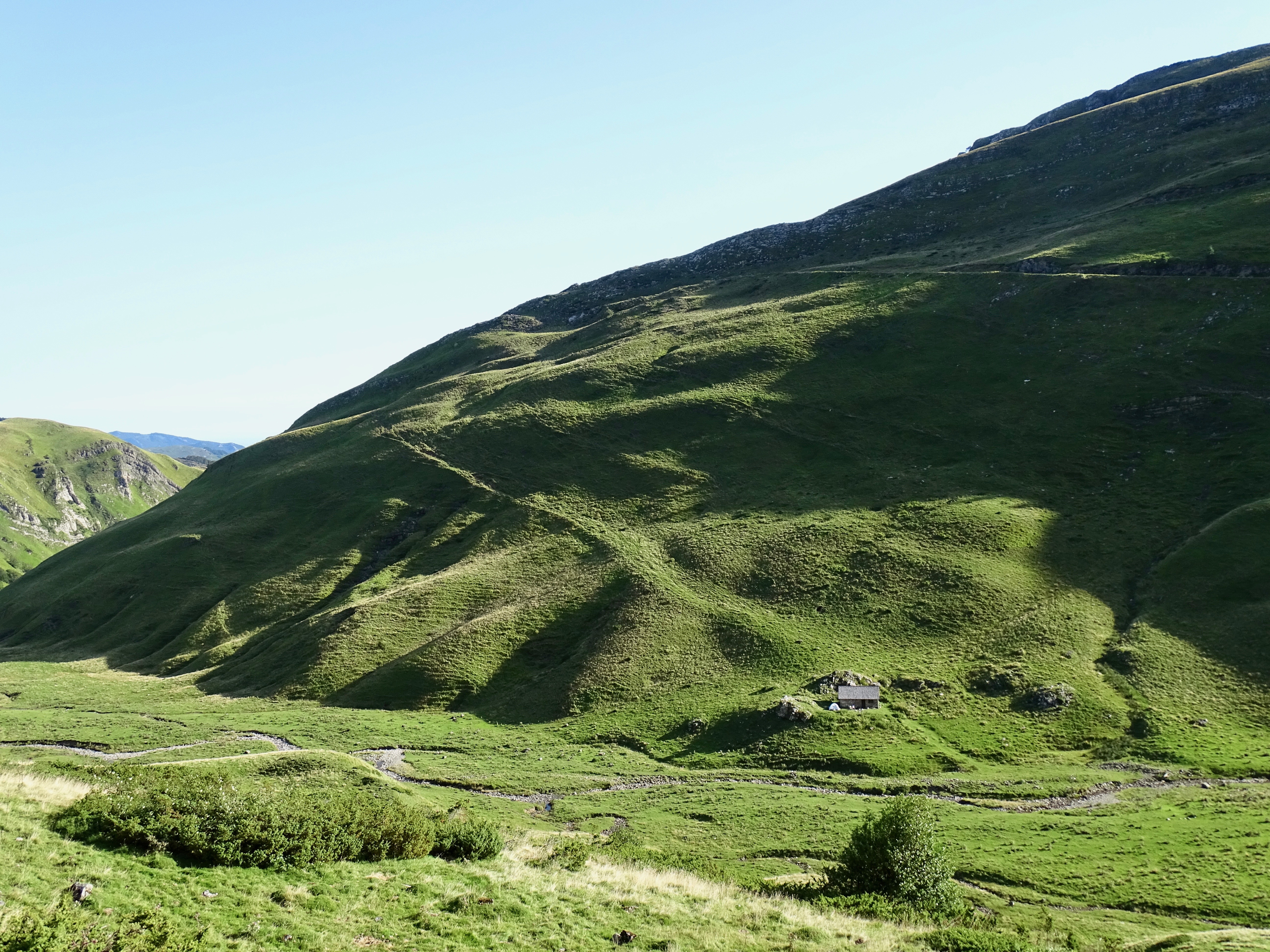 Nous ne nous y sommes pas arrêtés en pensant que nous pourrions recharger nos gourdes au prochain refuge, pas très loin. Sauf que c’était un refuge militaire presque en ruine ! Nous avons donc continué notre chemin en descente toujours en suivant le GR11.