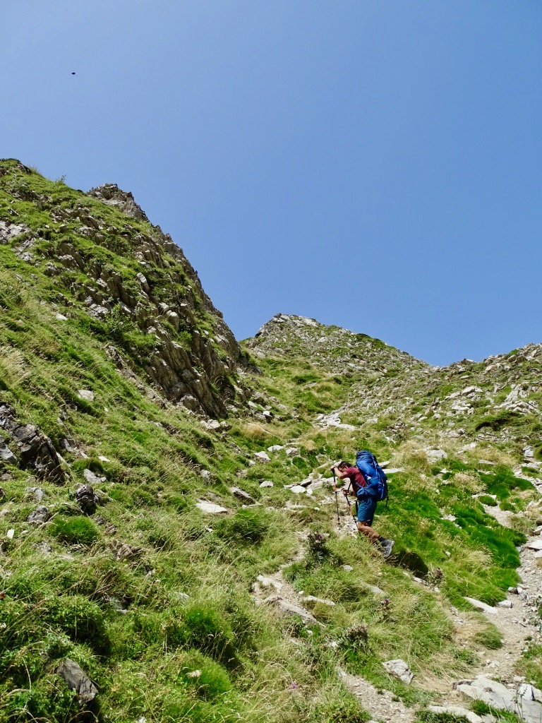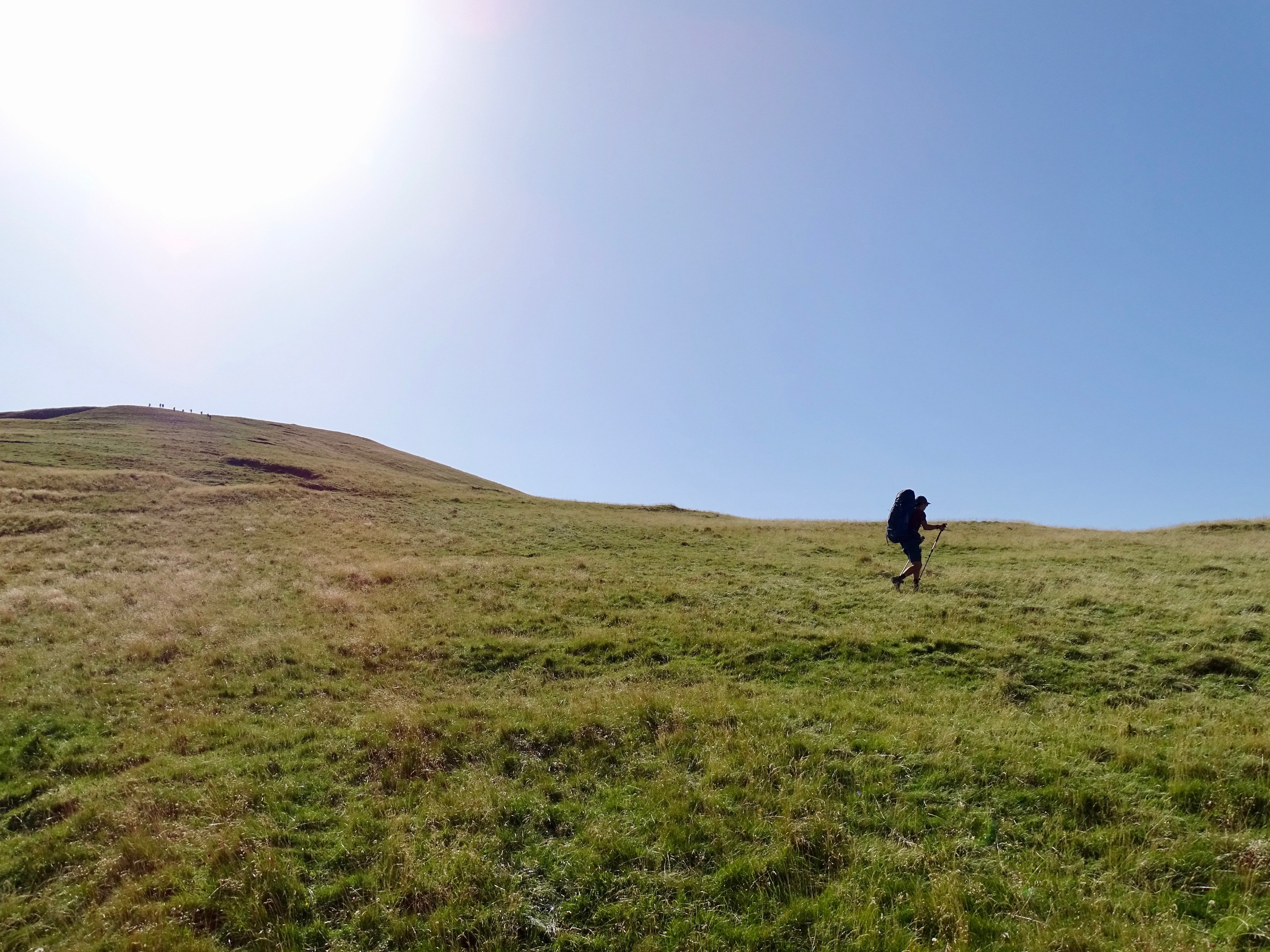 A un moment, nous avons vu un «fou» grimper la pente raide sans chemin et dans les herbes hautes… il avait l’air de galérer et d’être au bout de sa vie. Parfois, il n’y a pas de chemin et on fait du free style mais là, haut level ! Une montée à l’anglaise (puisqu’il parlait anglais)